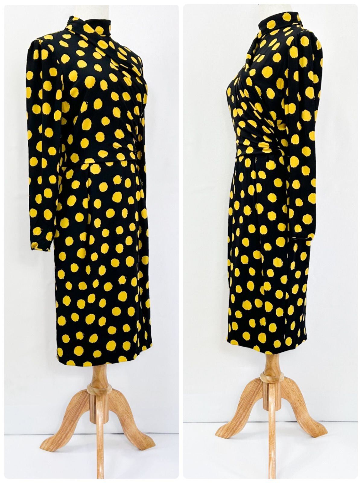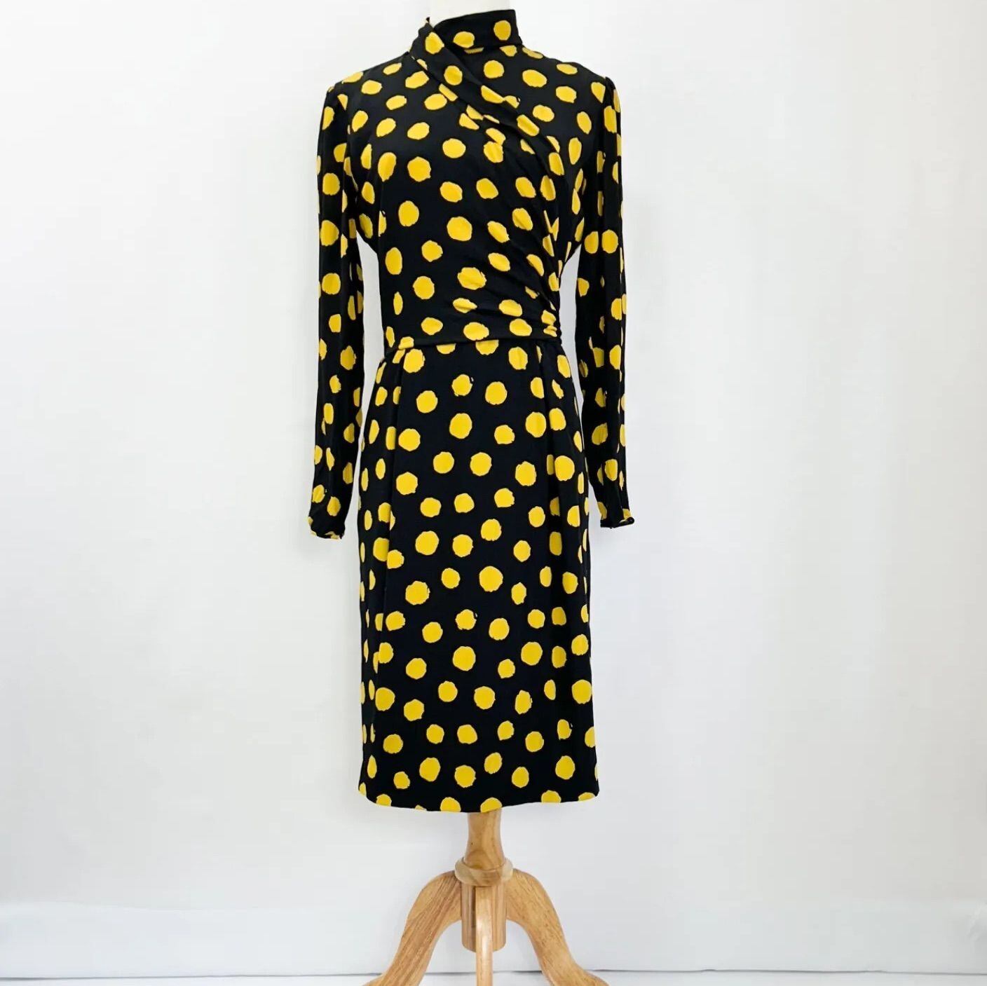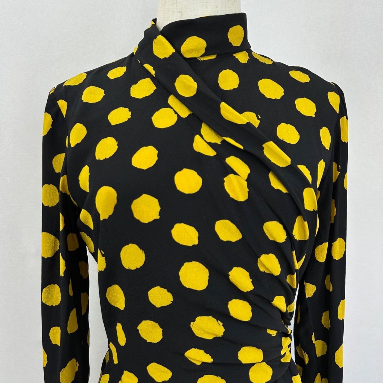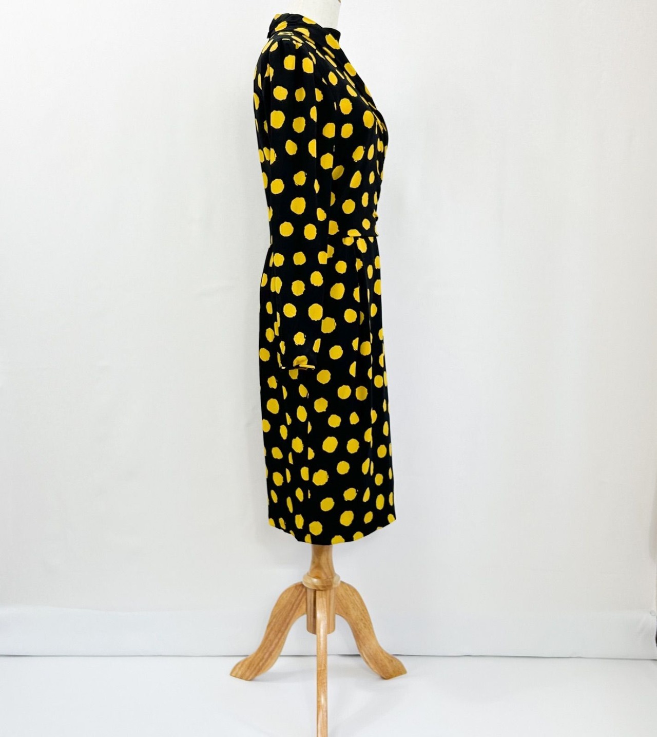 イタリア製 ungaro parallele paris ウンガロパラレルパリ 長袖 膝下丈 ドット柄 シルク カシュクール ワンピース