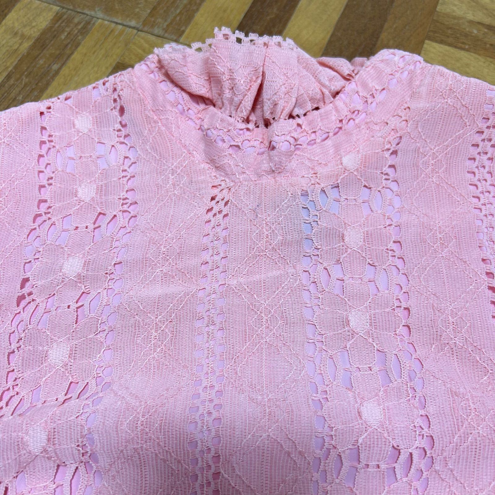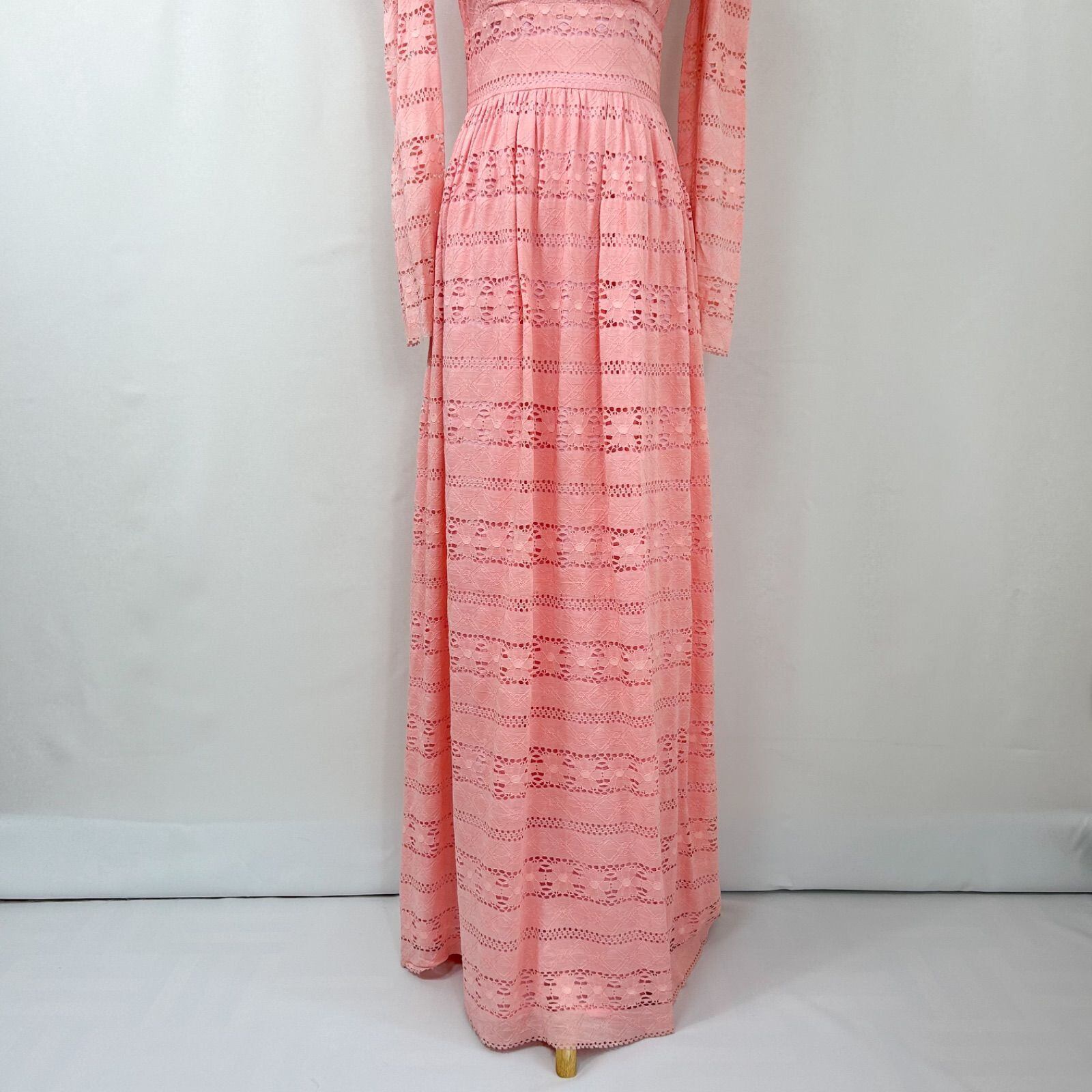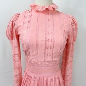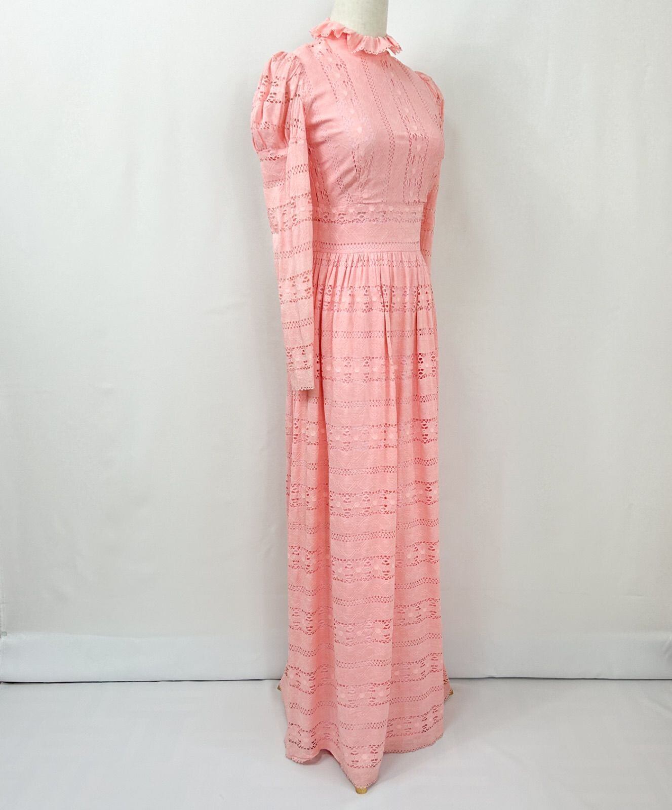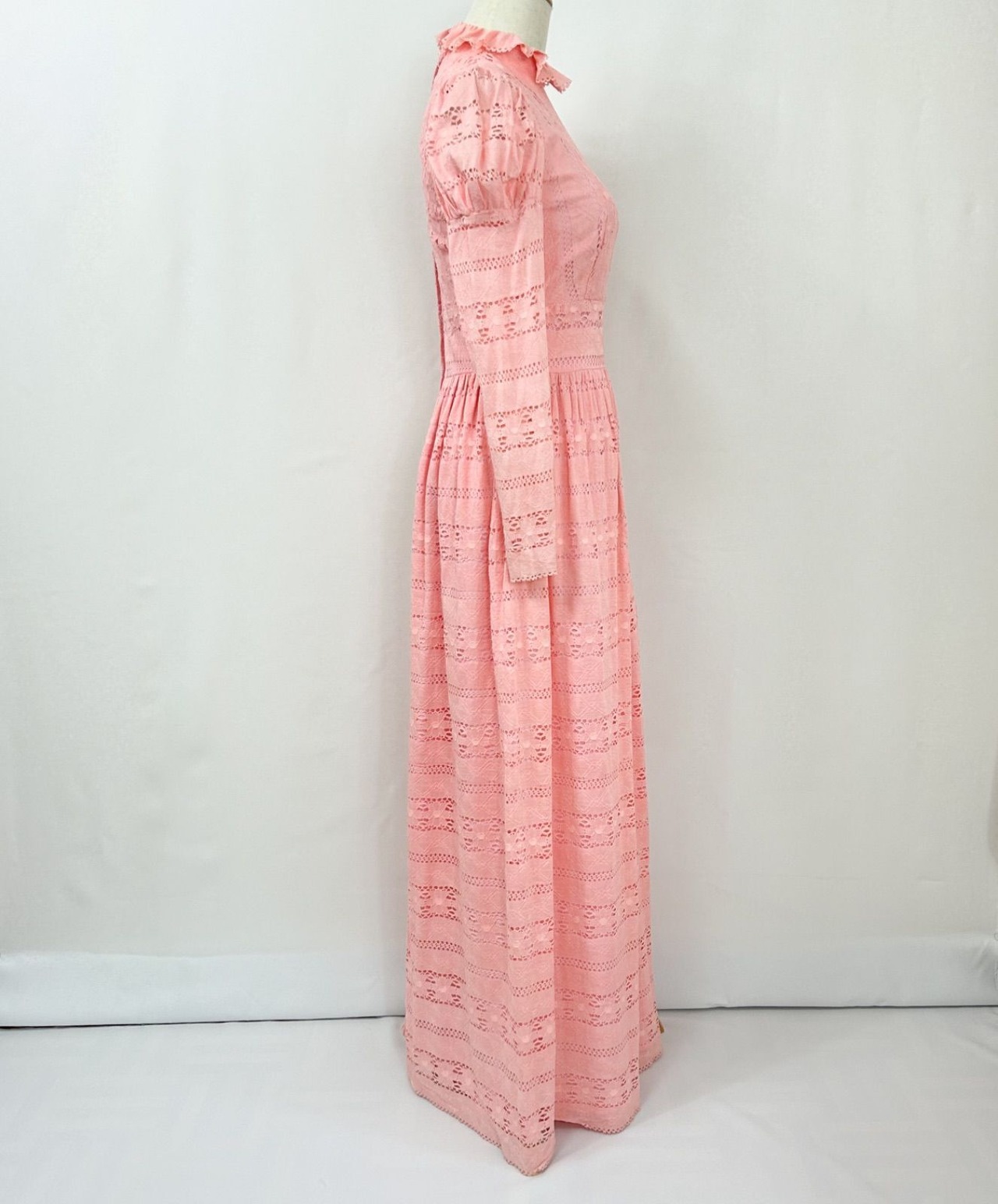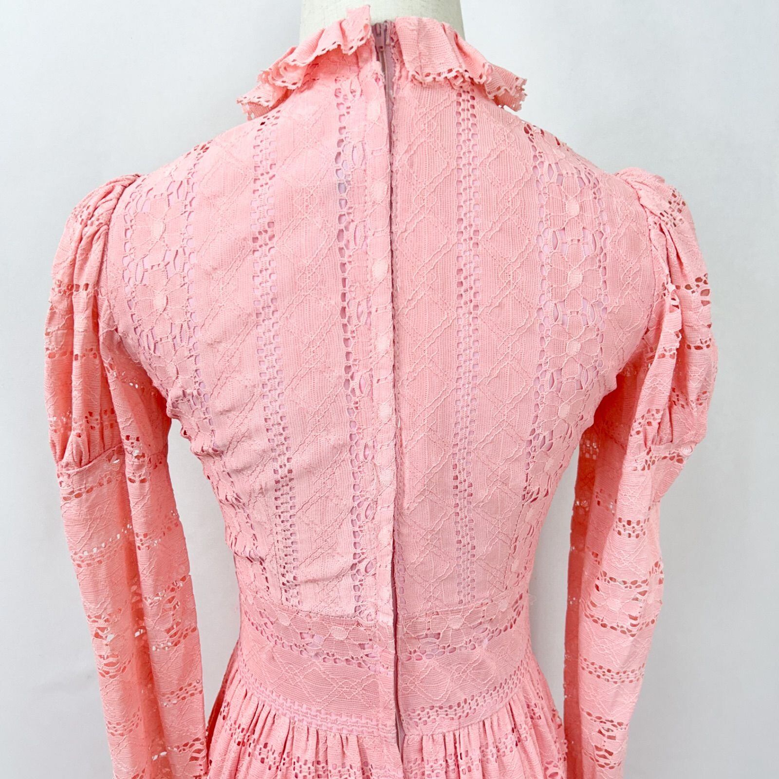 Joy Stevens 70s 総レース フリル襟 ピンク ロングドレス
