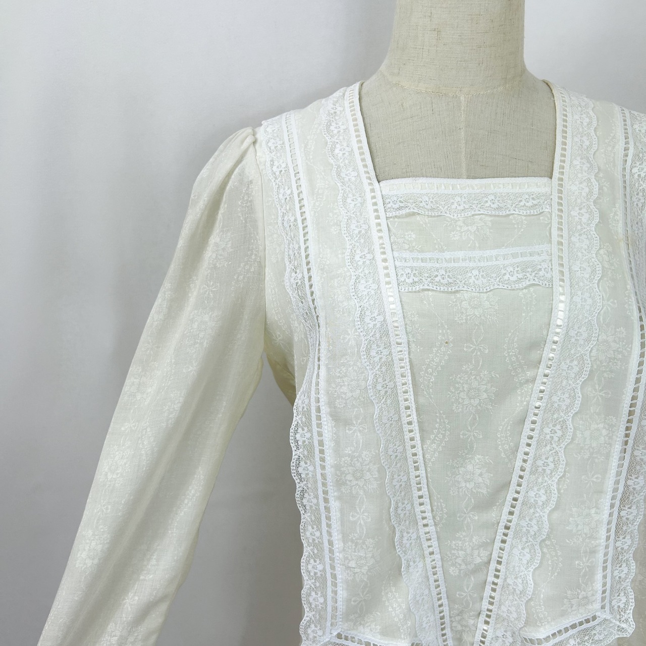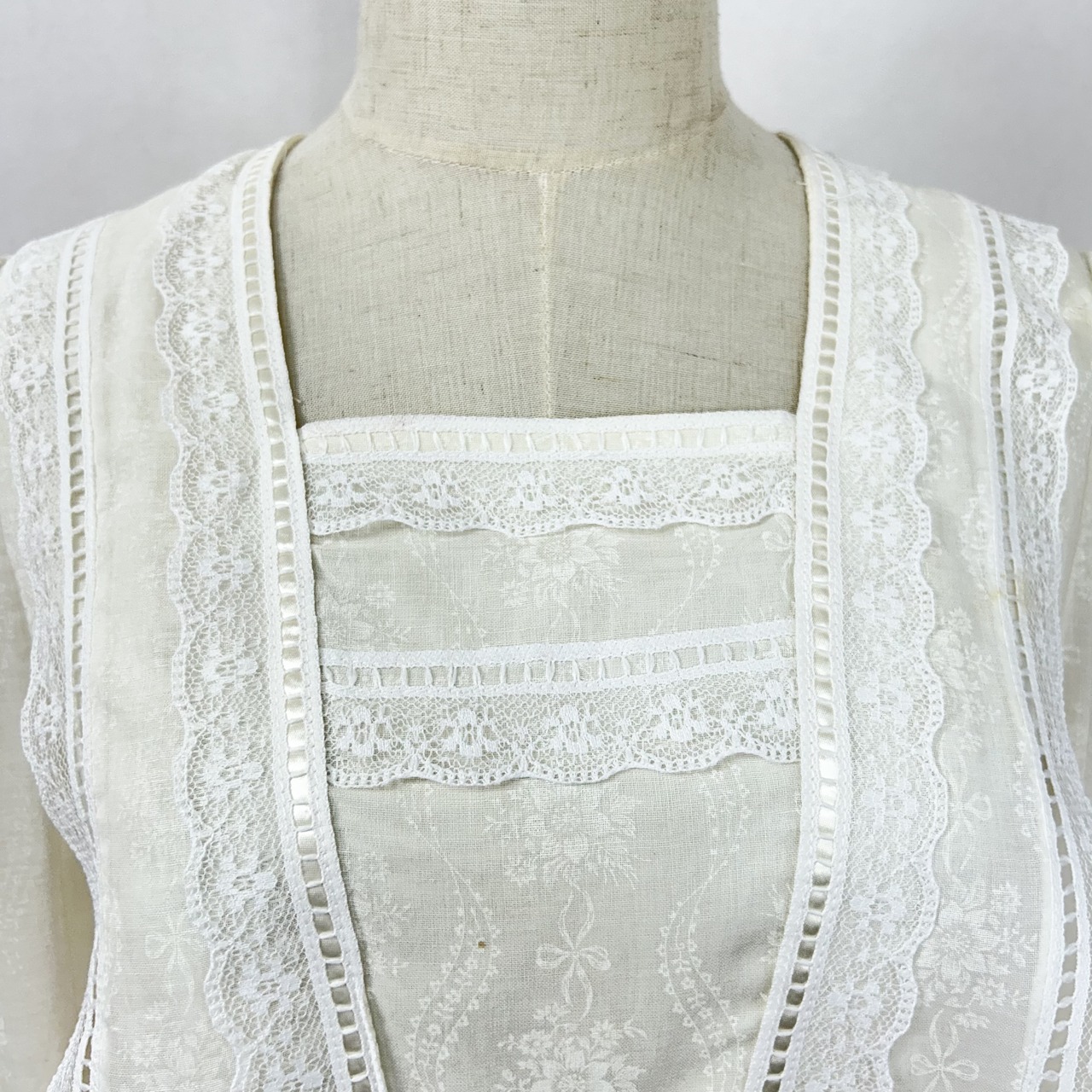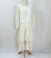 80s ビンテージ ガニーサックス ジェシカマクリントック USA製 ヴィクトリアン調 レース フラワープリント フリル ティアード ワンピース ドレス