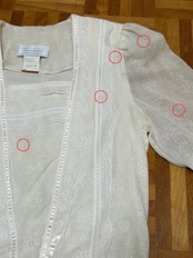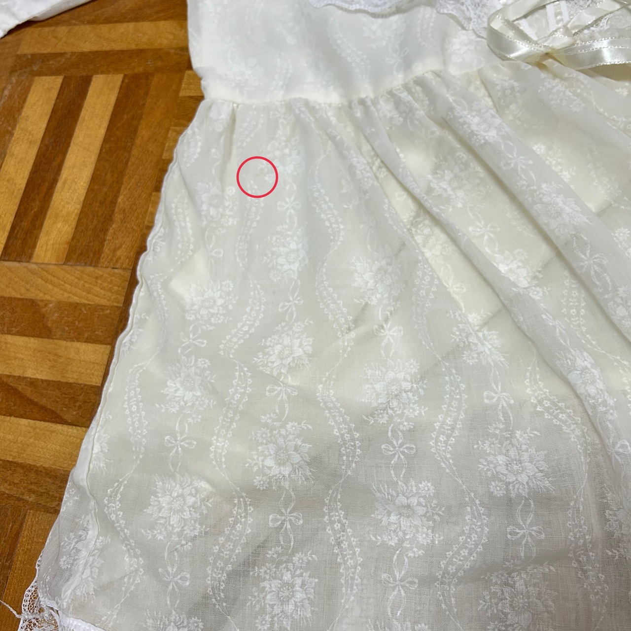 左胸、中央、左袖、左袖付け、スカート右サイド、薄汚れ数カ所あり。