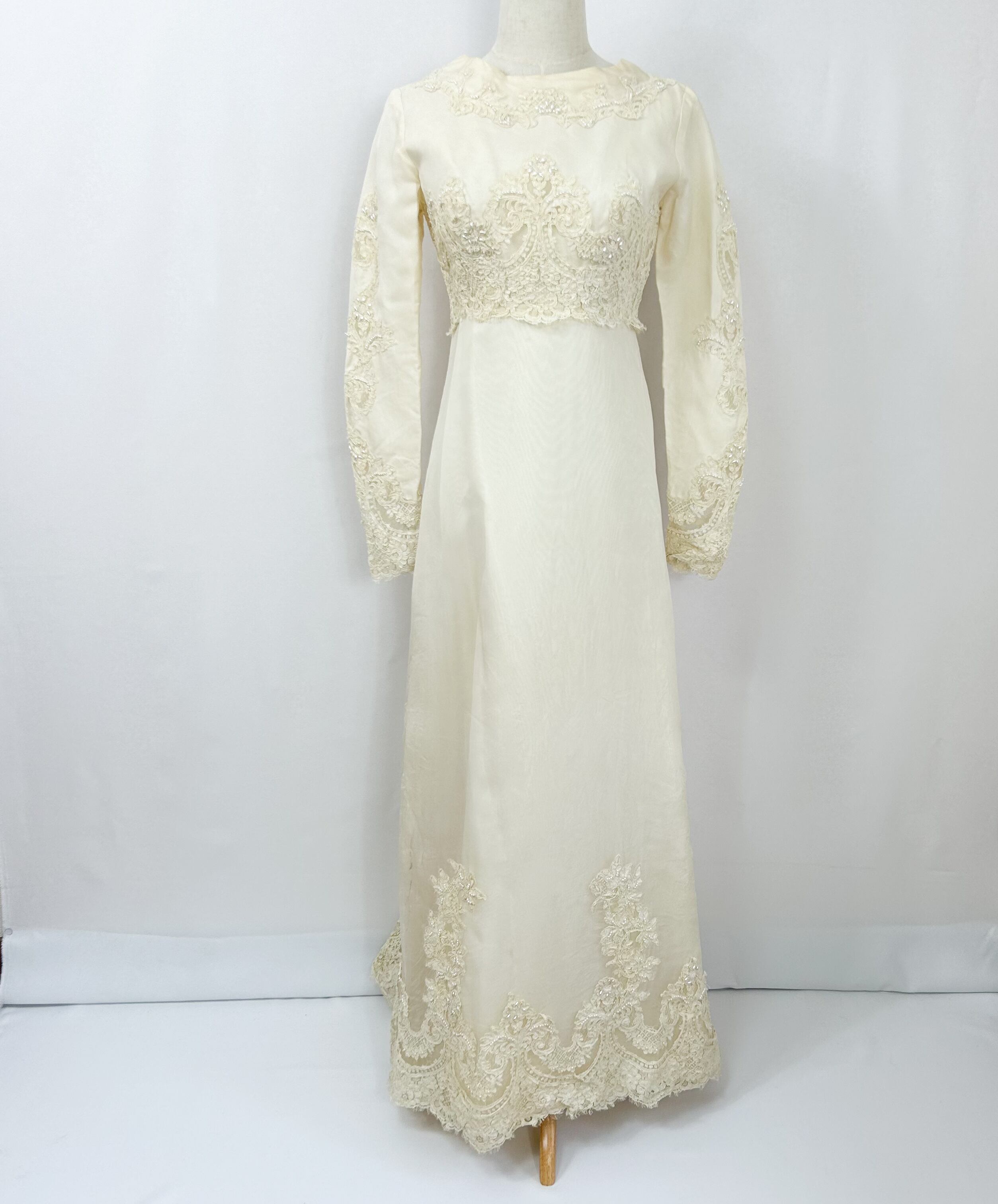 60s 70s ビンテージ USA製 パール レース 長袖 フォーマル ウエディング ドレス ヘッドドレス