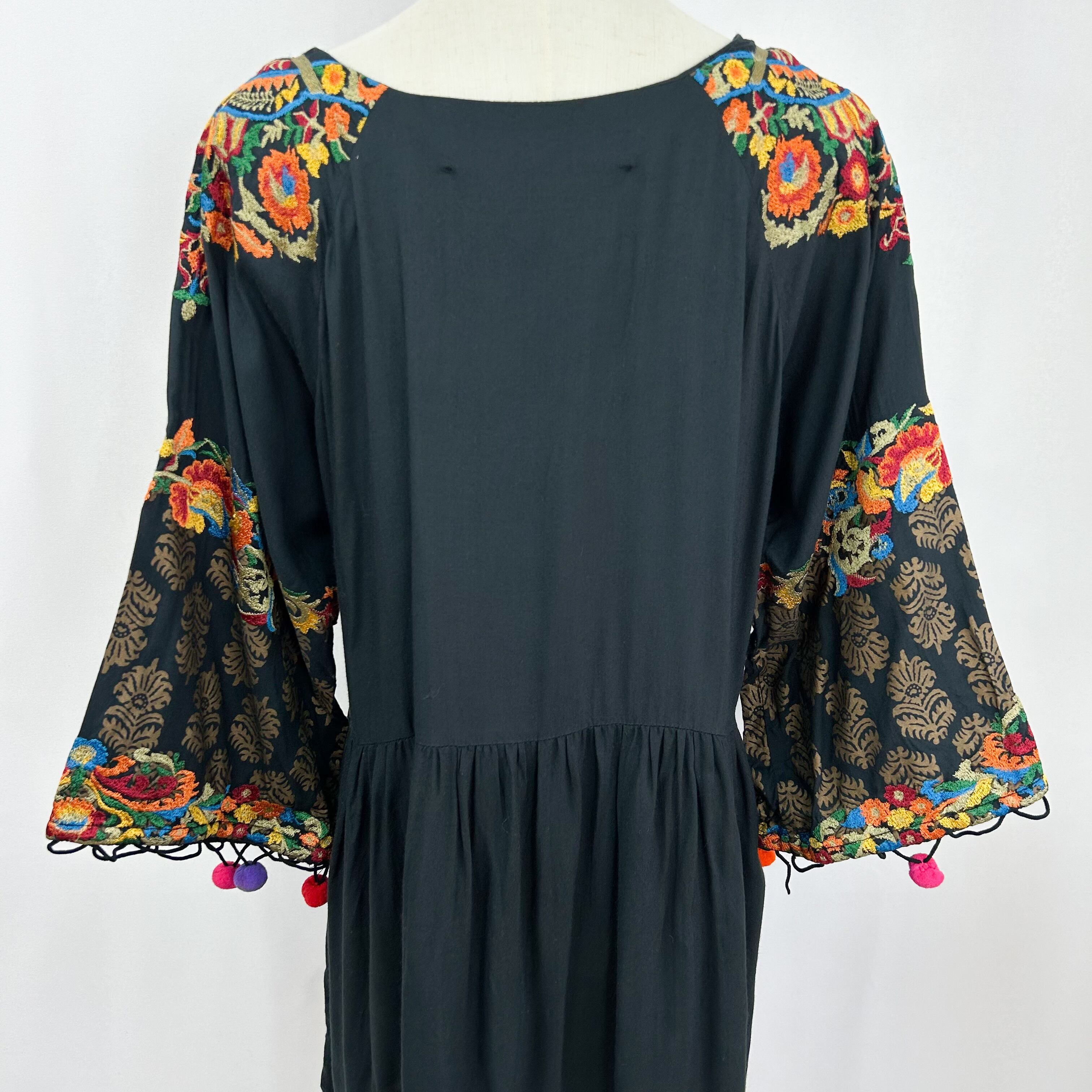 刺繍デザイン ポンポン 民族柄 膝丈 ワンピース ドレス