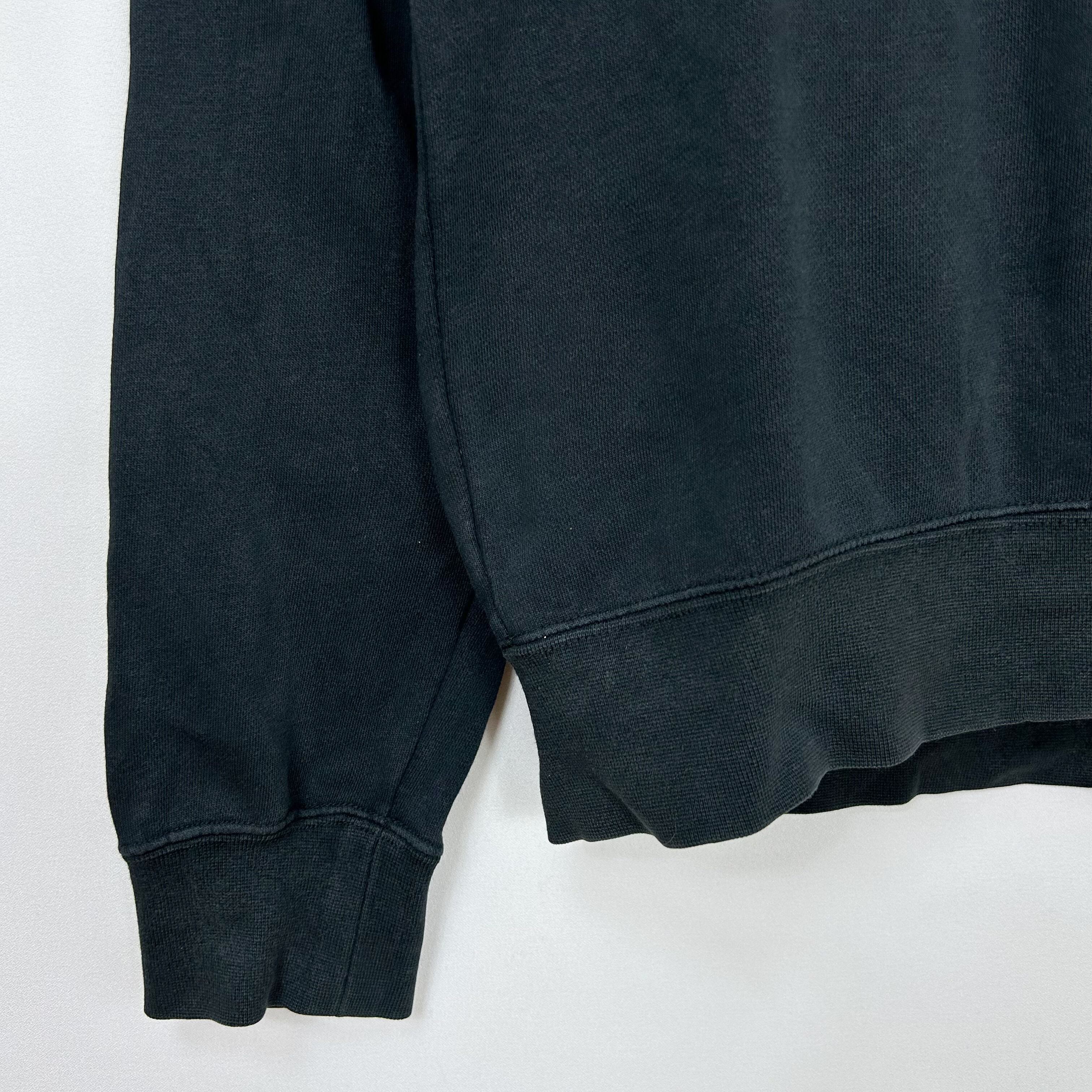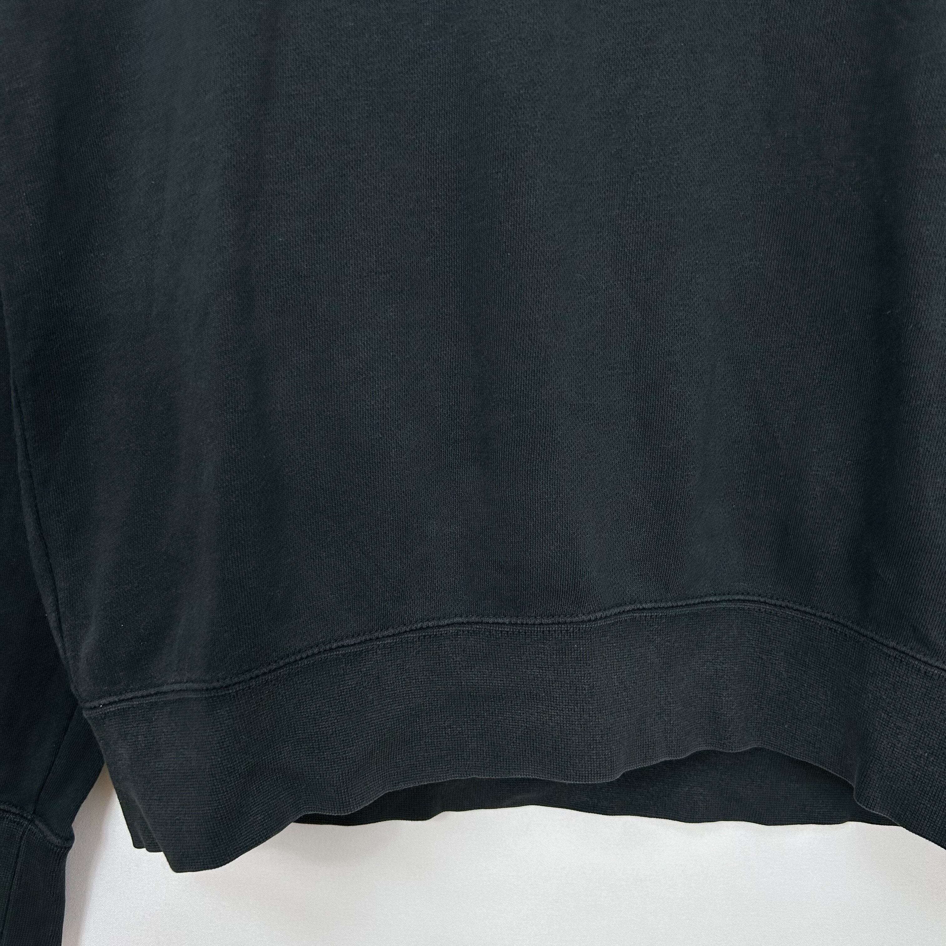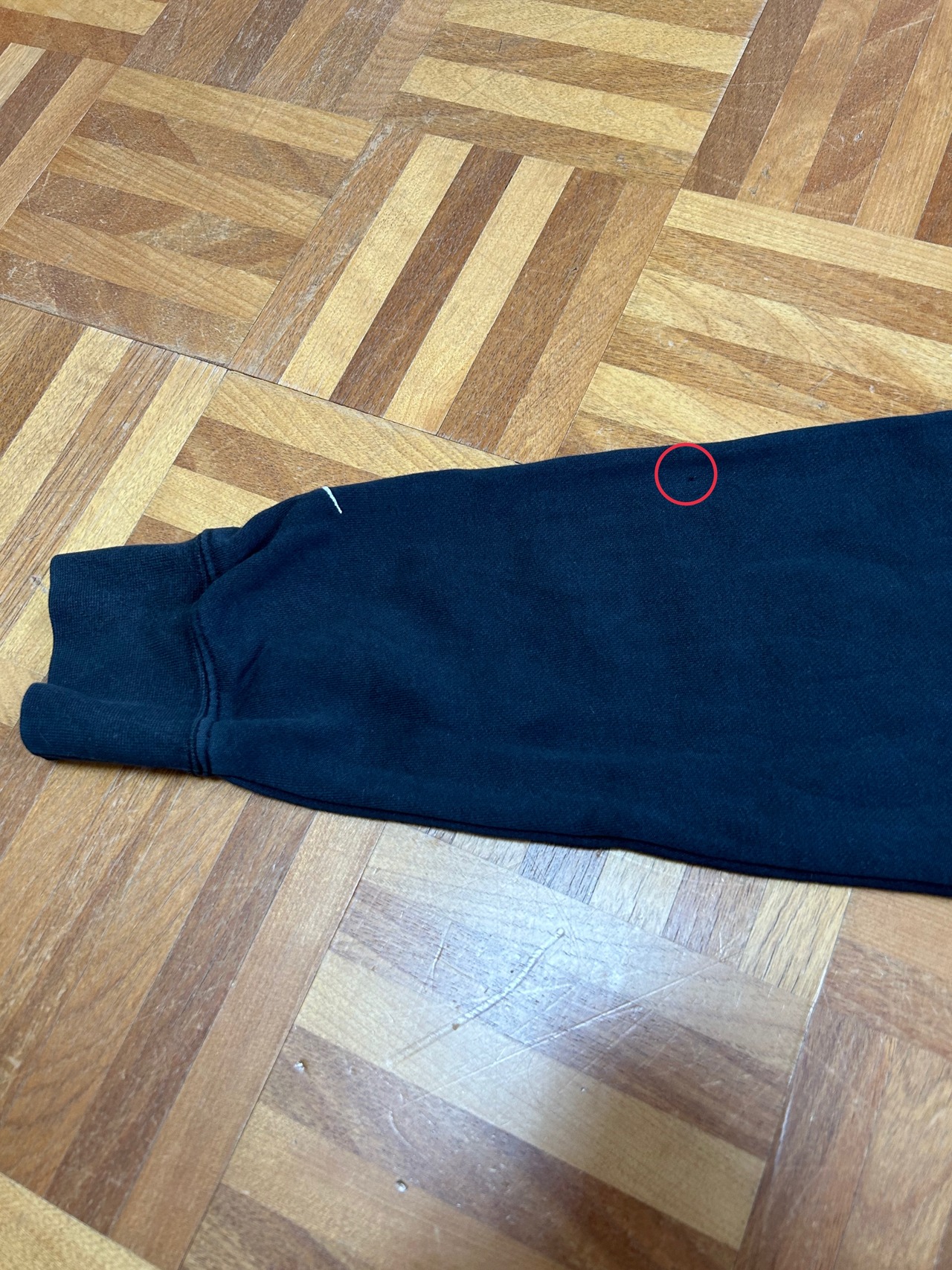 バック左袖生地引けあり。首元、袖先、裾のリブ若干白っぽくなっています。バックプリントよく見ないとわからない程度のひび割れ数カ所あり。