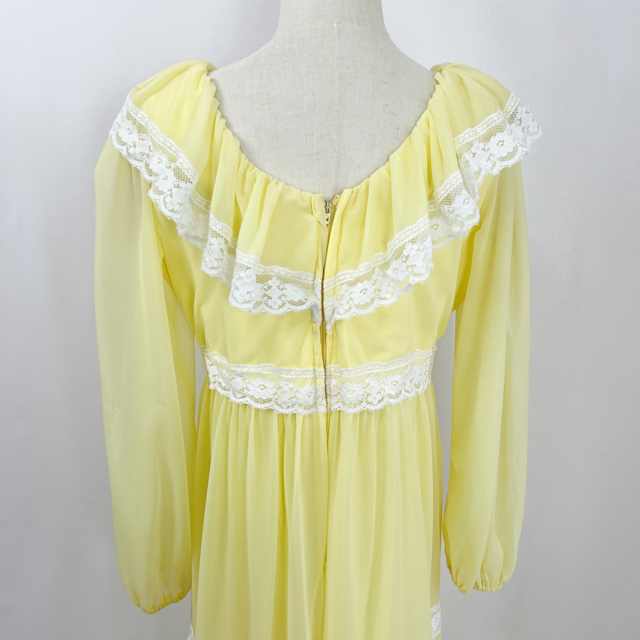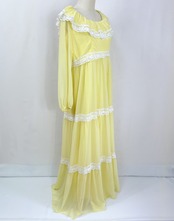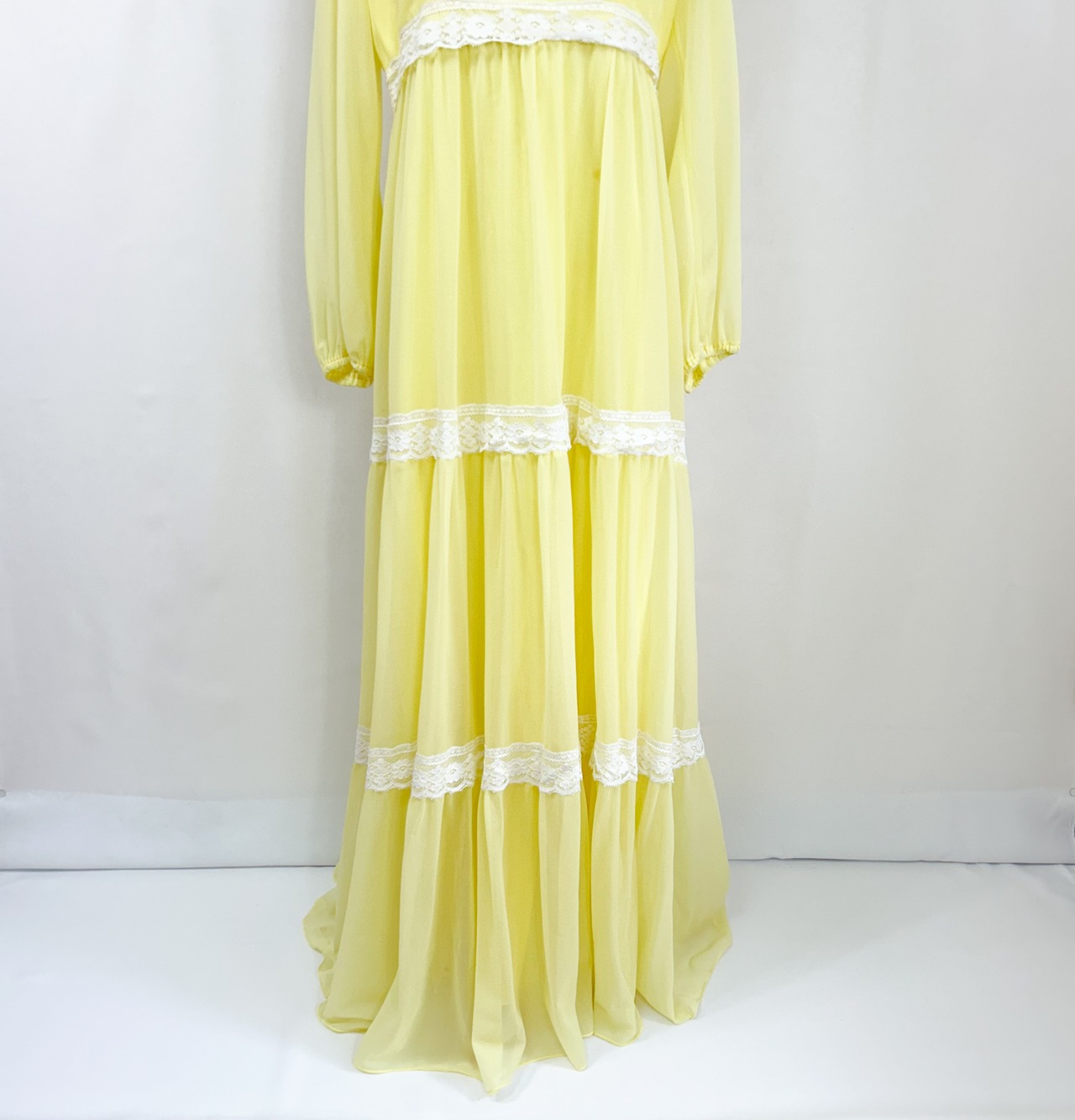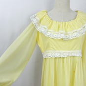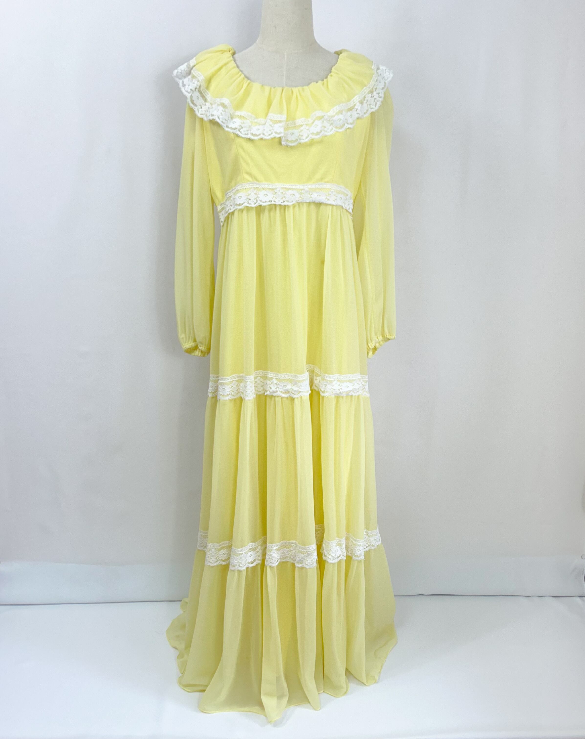 ヴィンテージ 70s USA製 ラバティンカラー ラッフルカラー レース ティアード ロング ワンピース ドレス
