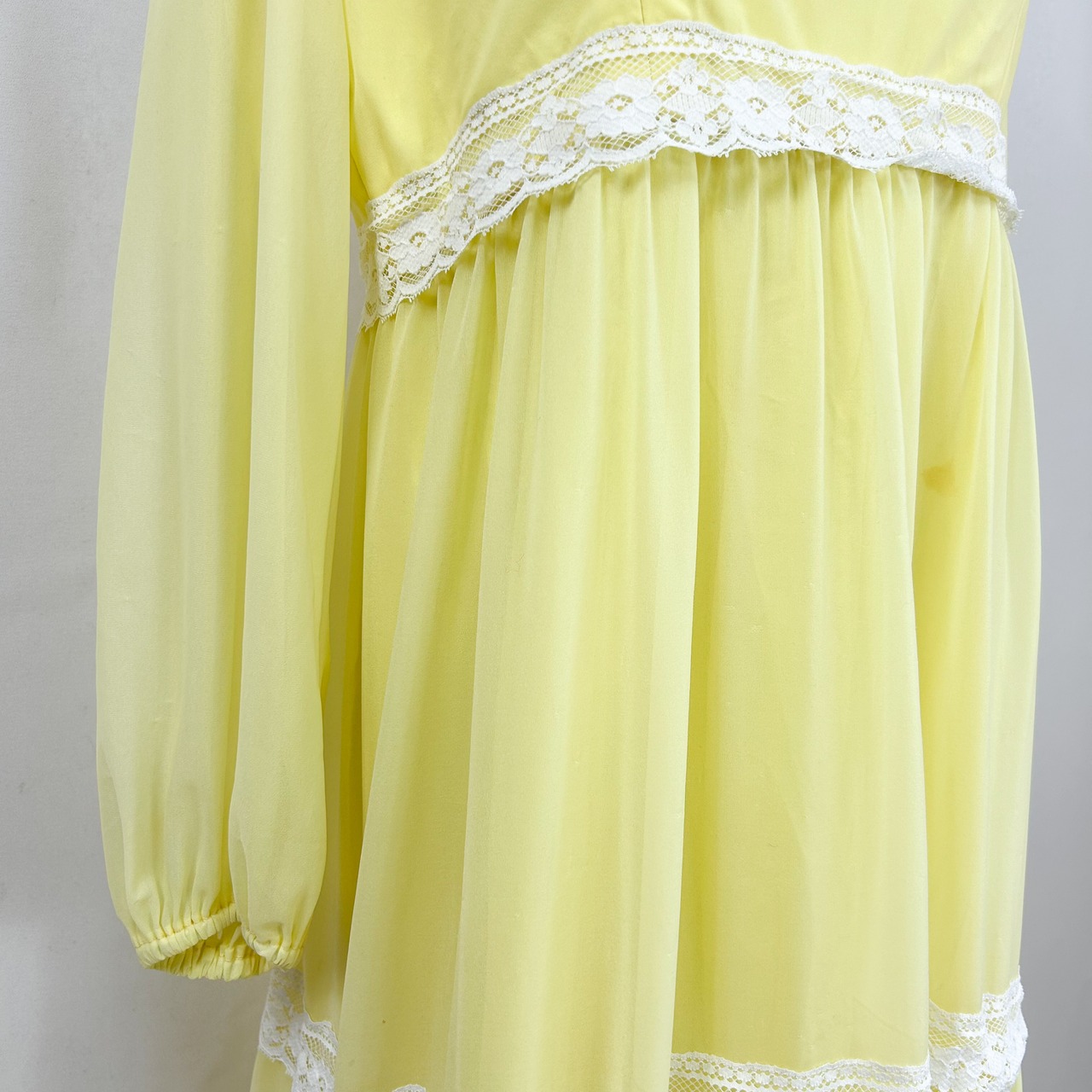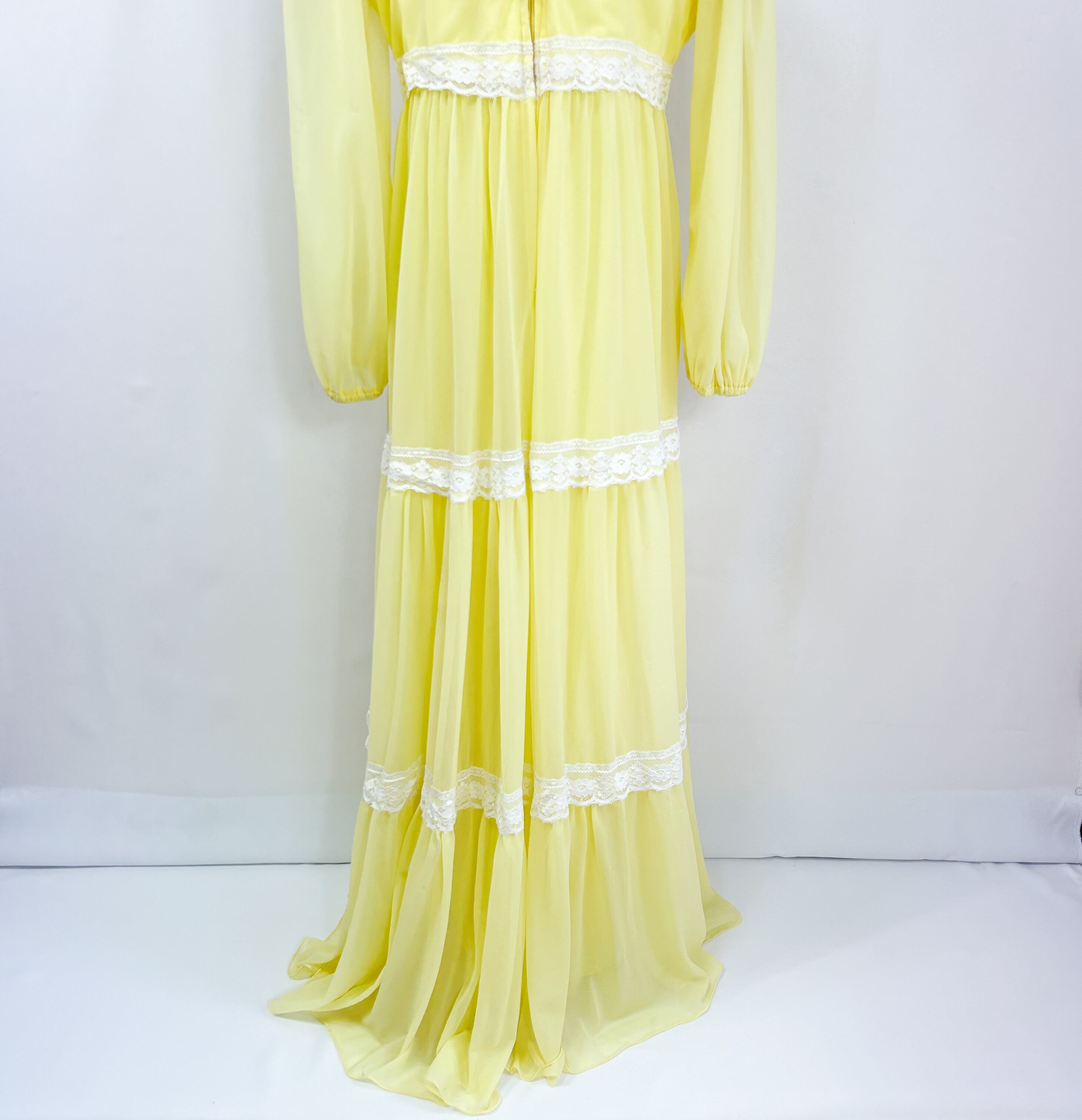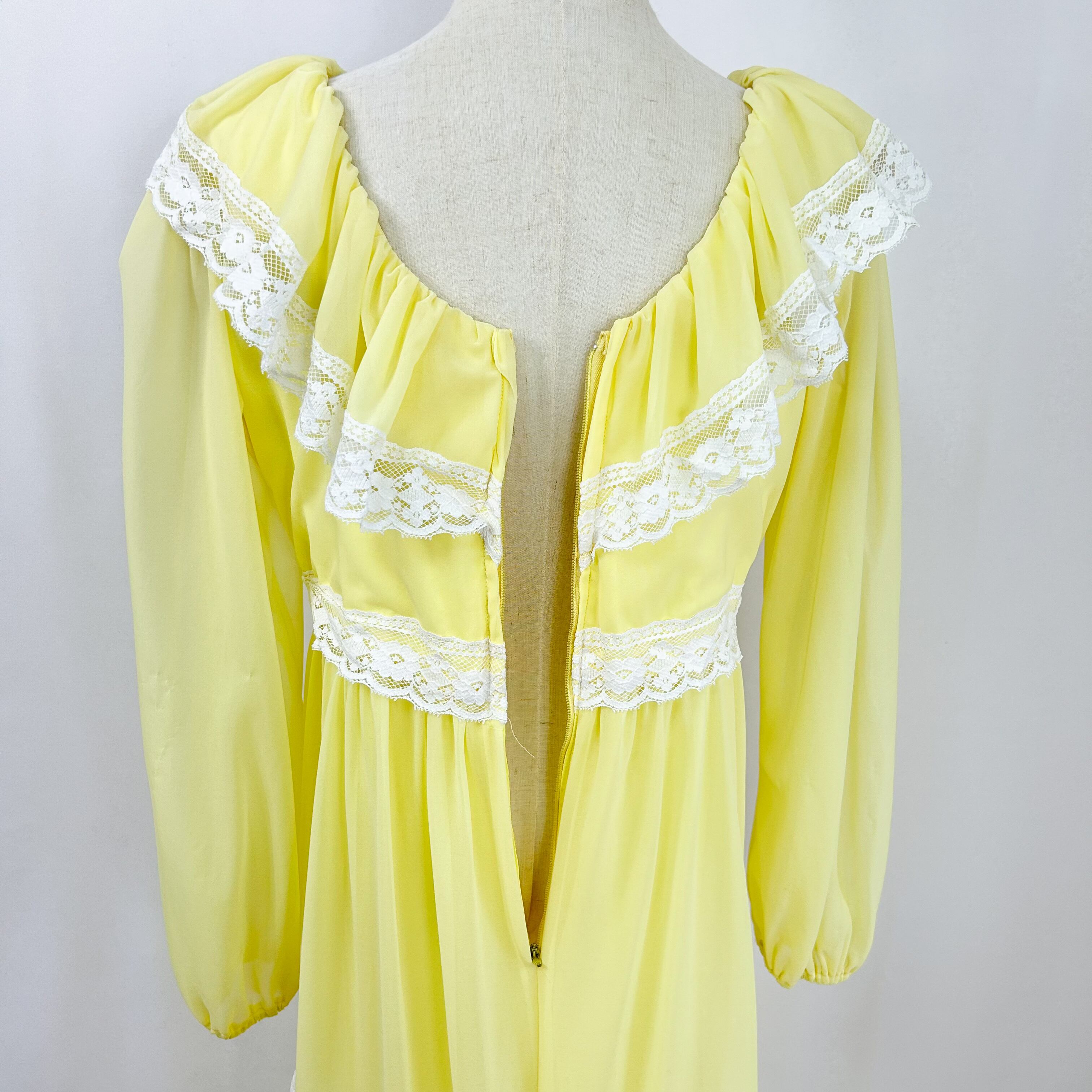 ヴィンテージ 70s USA製 ラバティンカラー ラッフルカラー レース ティアード ロング ワンピース ドレス