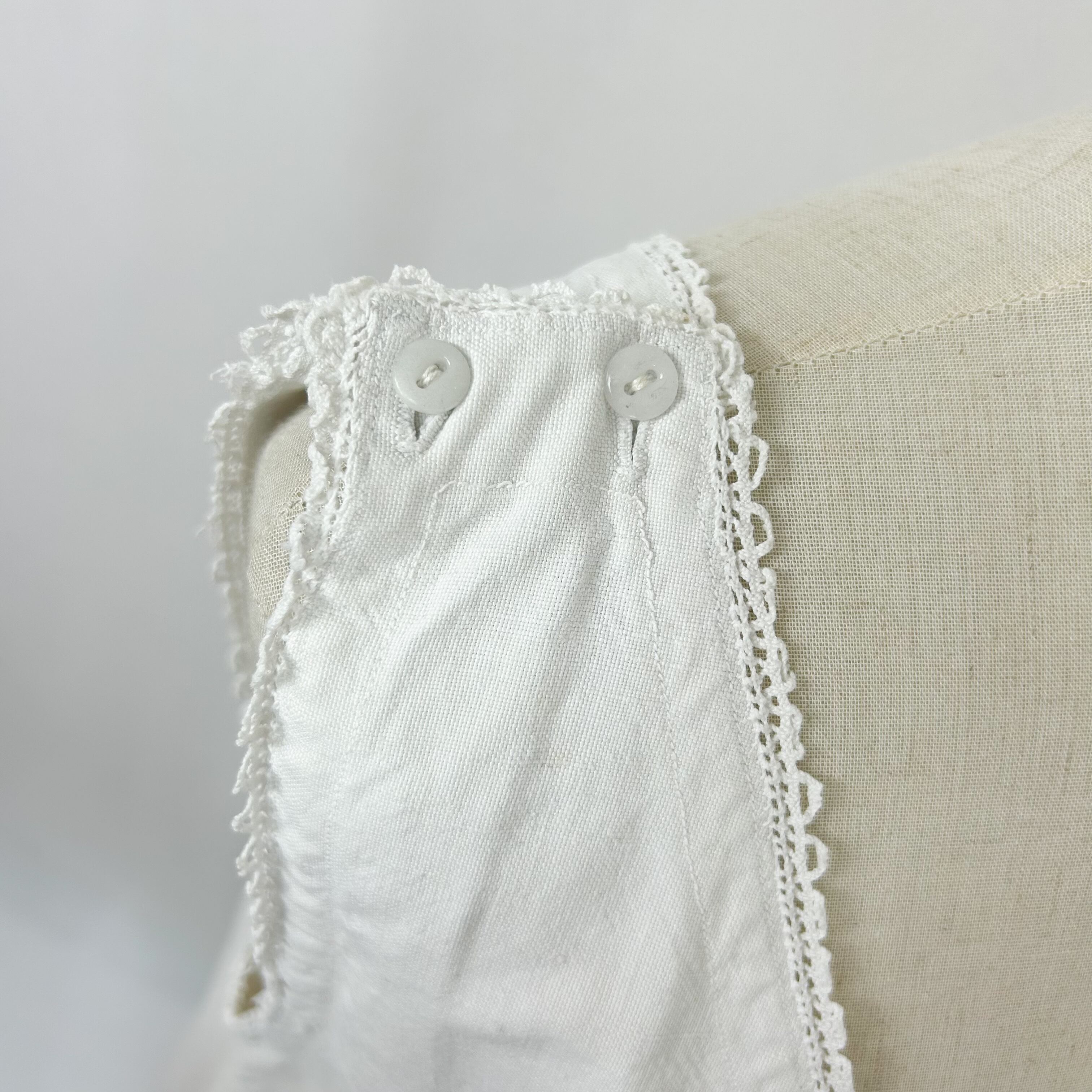 1920s レース リネン スモック 膝丈 Vネック Aライン アンティーク ワンピース