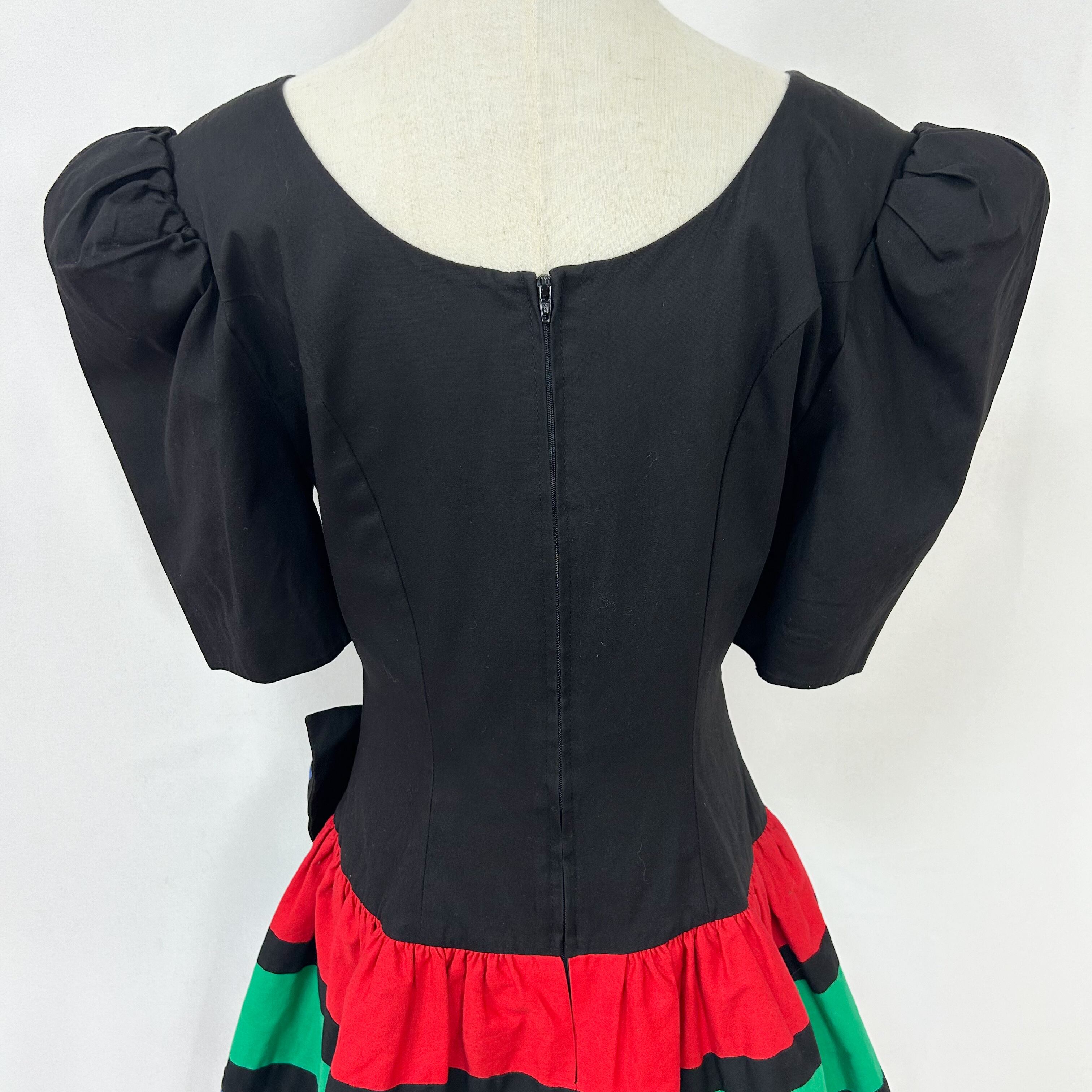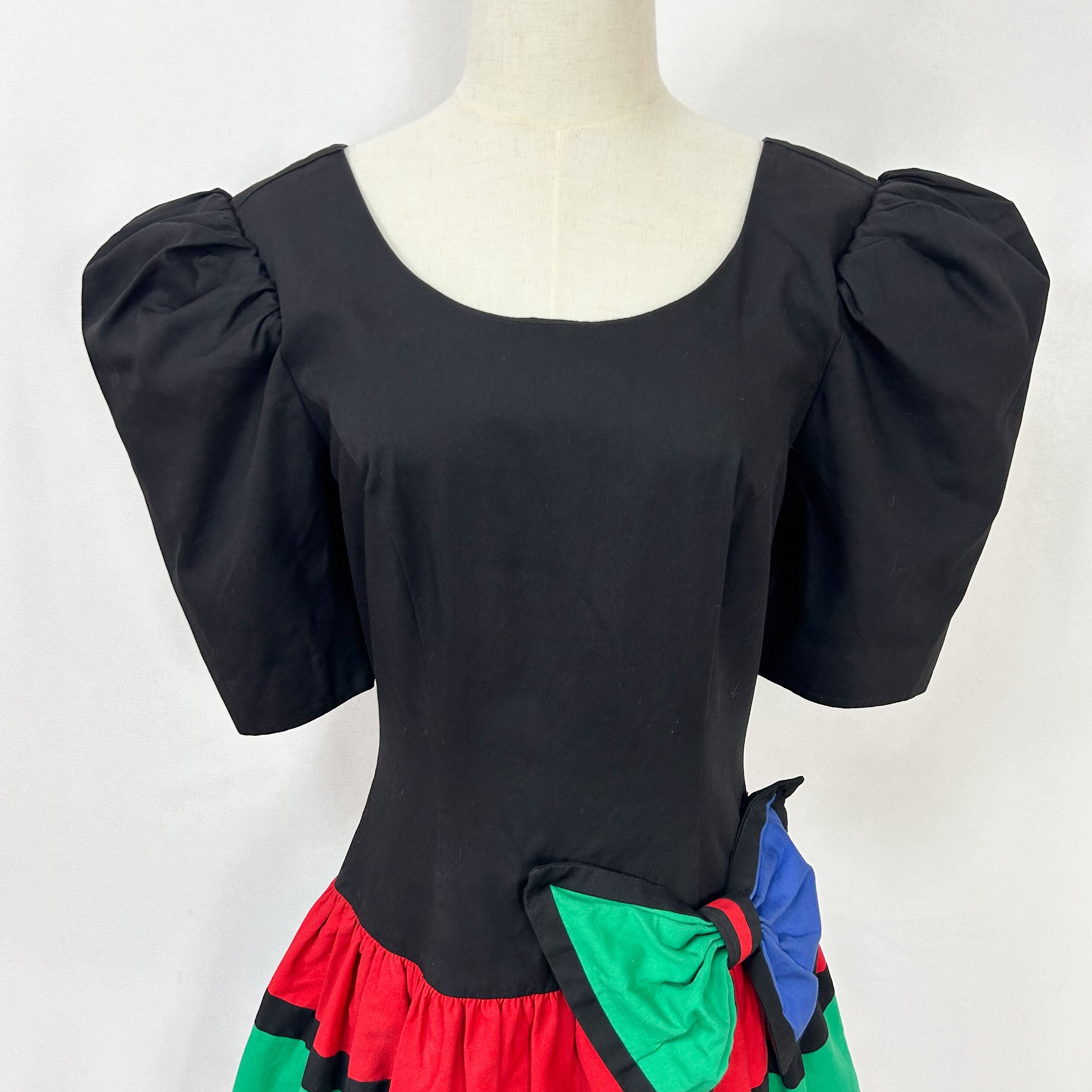 ヴィンテージ 80s 90s USA製 マルチカラー ウエストリボン 半袖 膝丈 ワンピース ドレス
