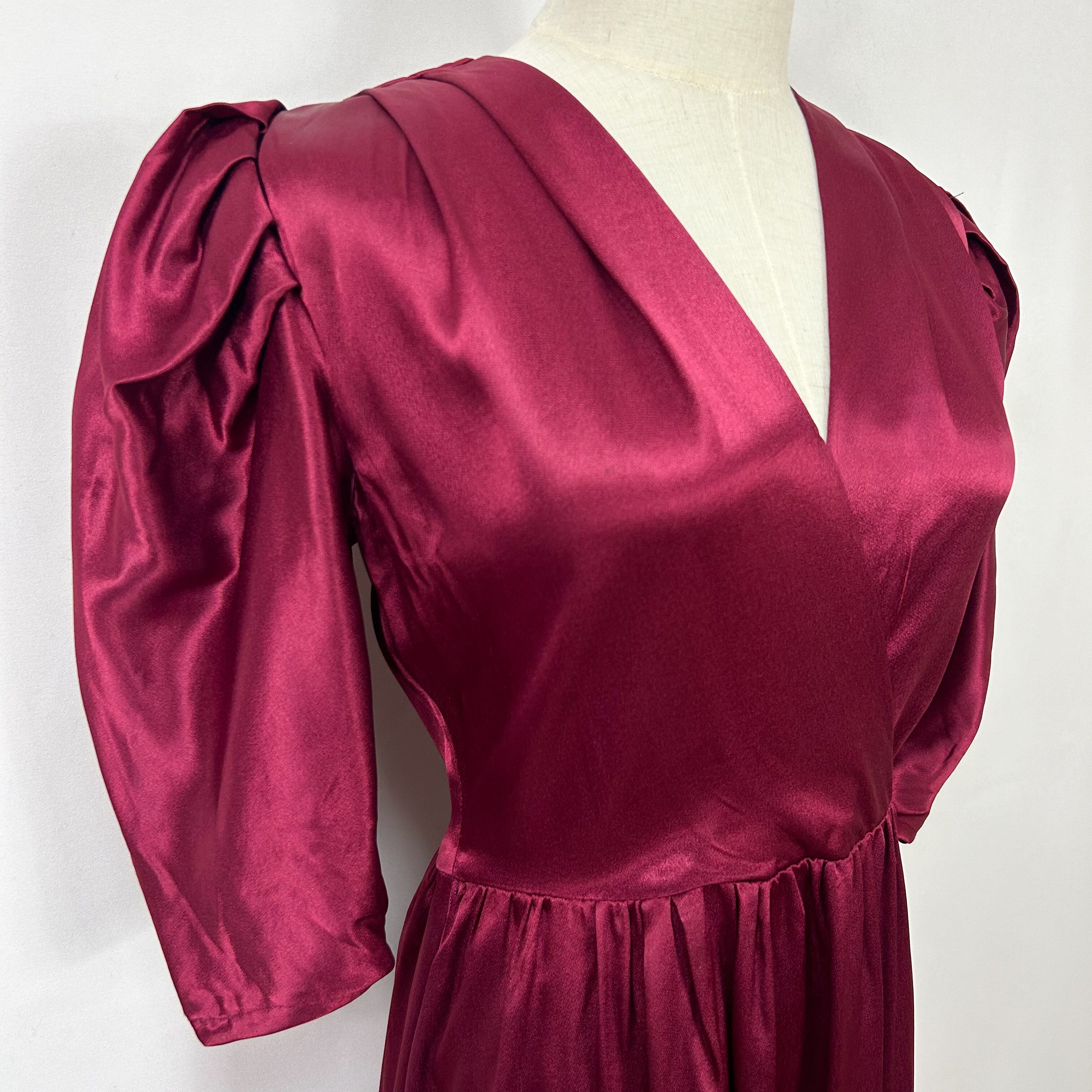 ヴィンテージ 80s USA製 ユニオンメイド バブルスリーブ サテン カシュクール ロング ワンピース ドレス