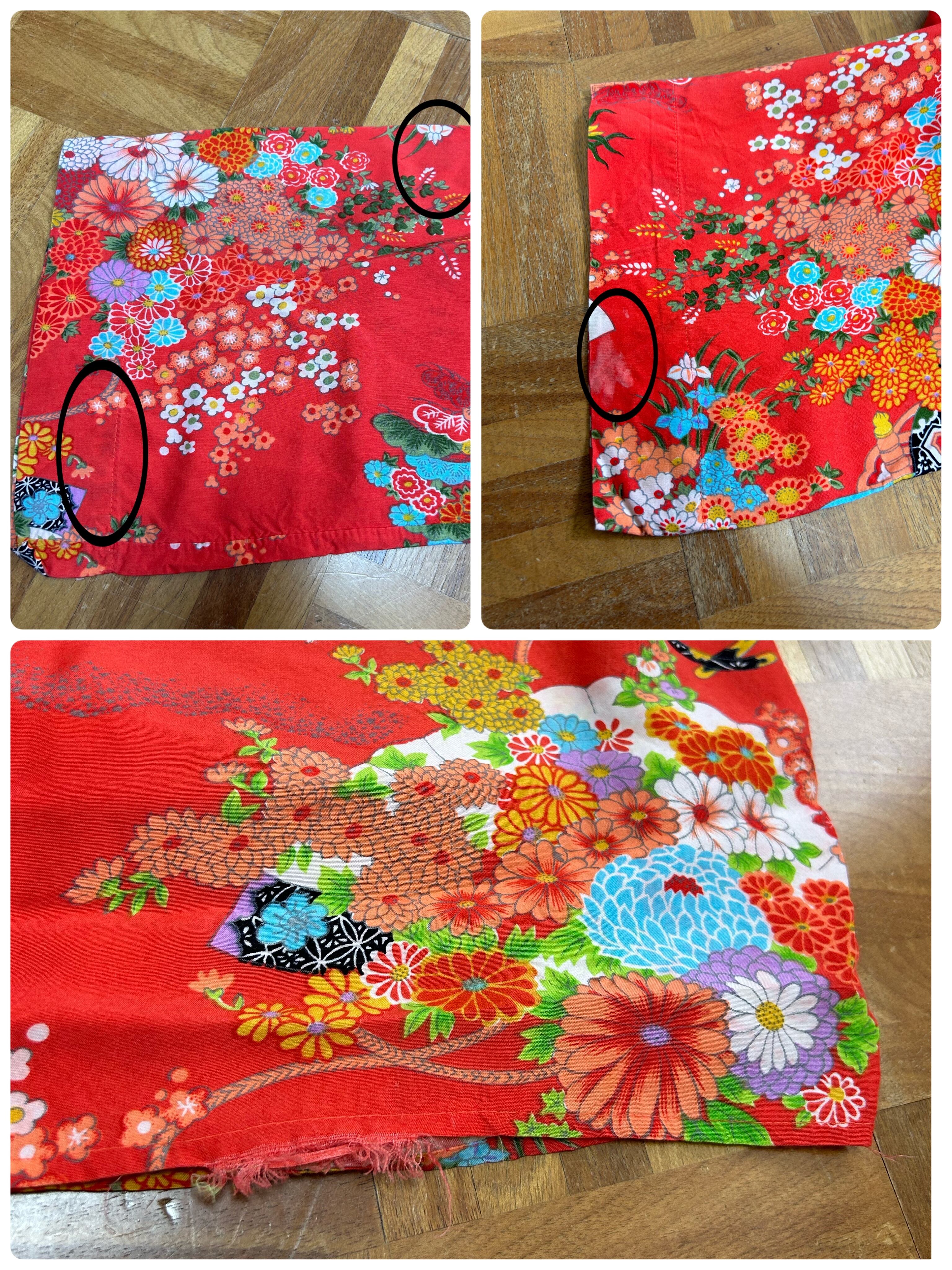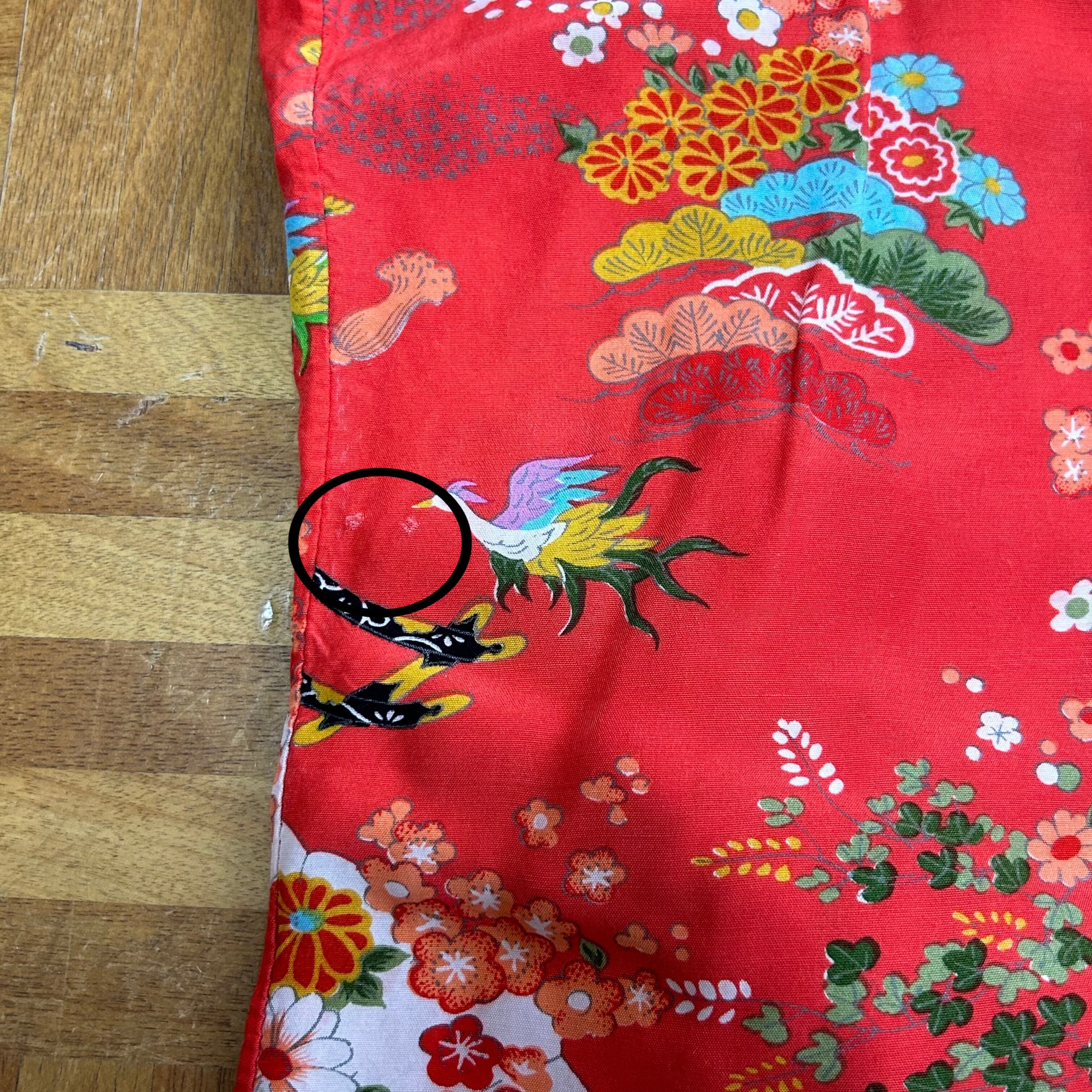 左裾、バック左サイドに3㎜〜5㎝程度のダメージ数カ所あり。左袖、バック裾上に薄汚れ数カ所あり。