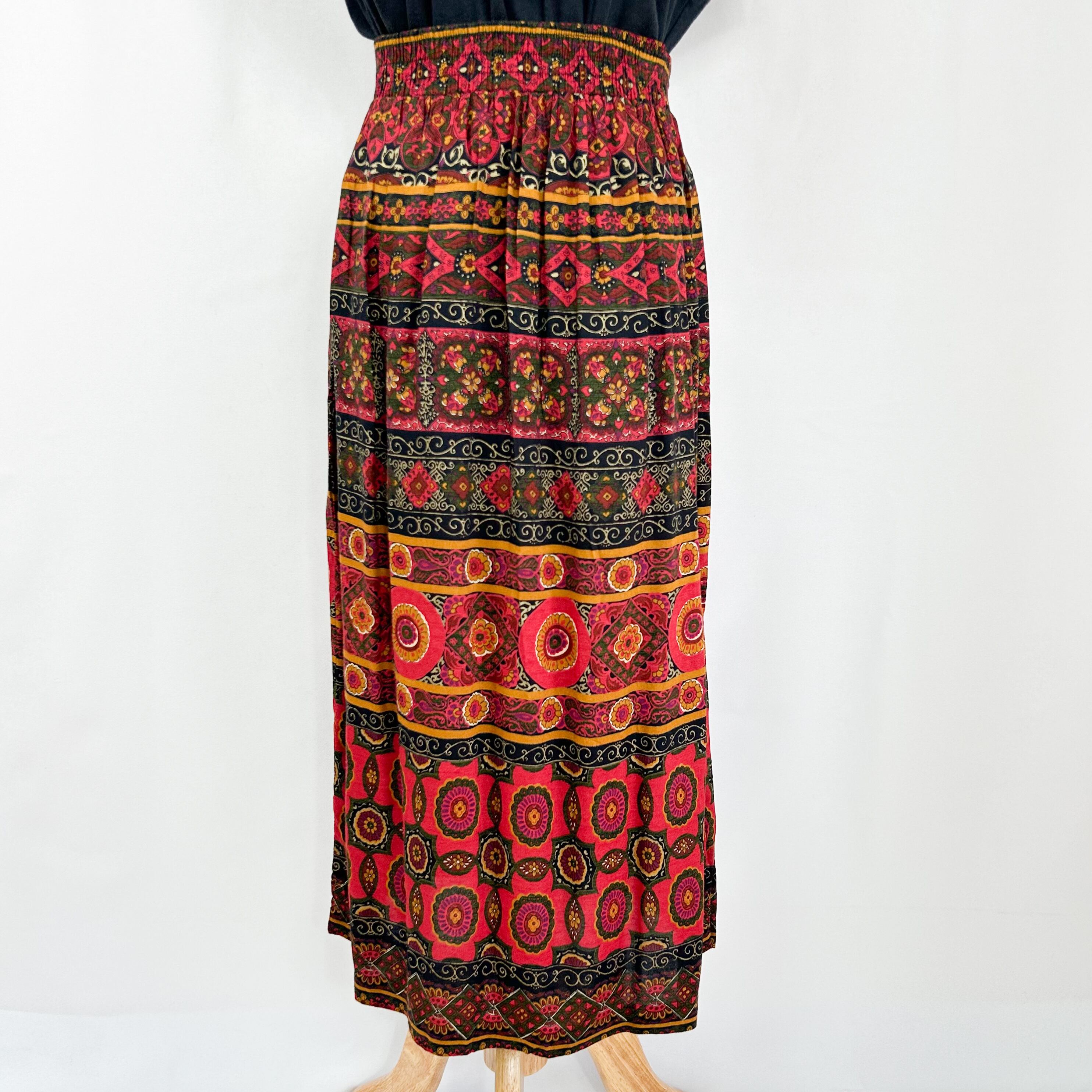 マルチカラー 花柄 総柄 エスニック ロングスカート
