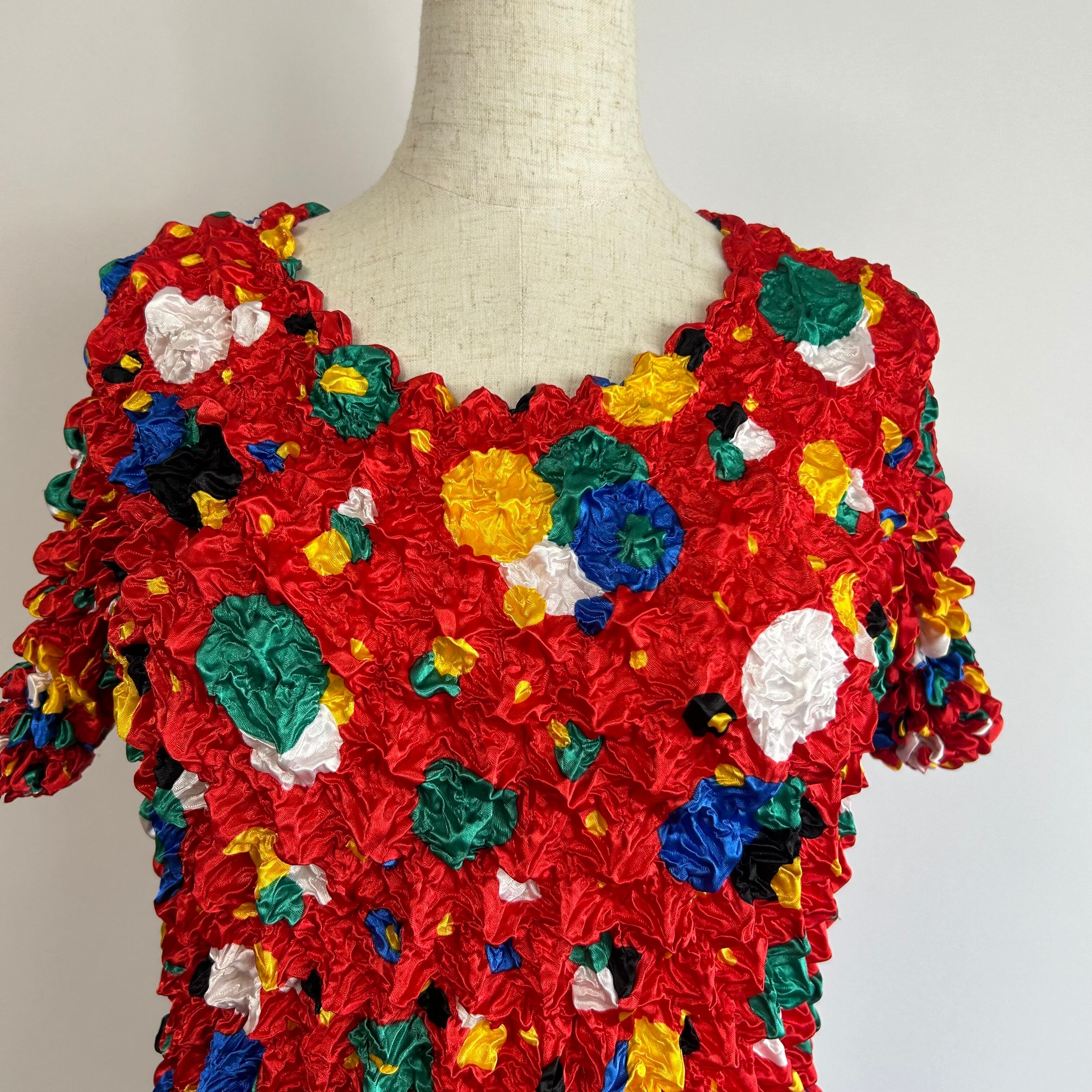 総柄 マルチカラー ポップコーン くしゅくしゅ 半袖 トップス