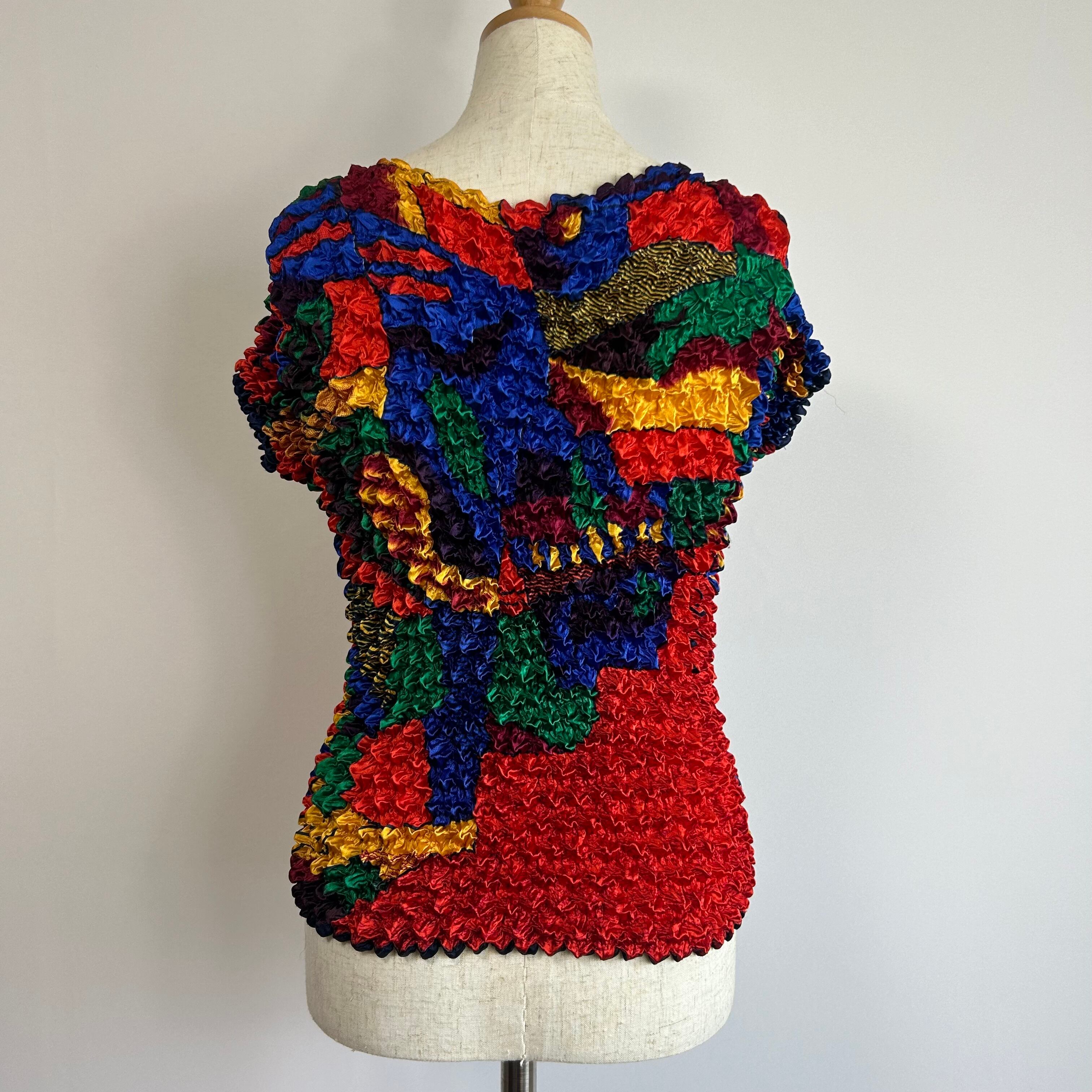 総柄 マルチカラー ポップコーン くしゅくしゅ 半袖 トップス