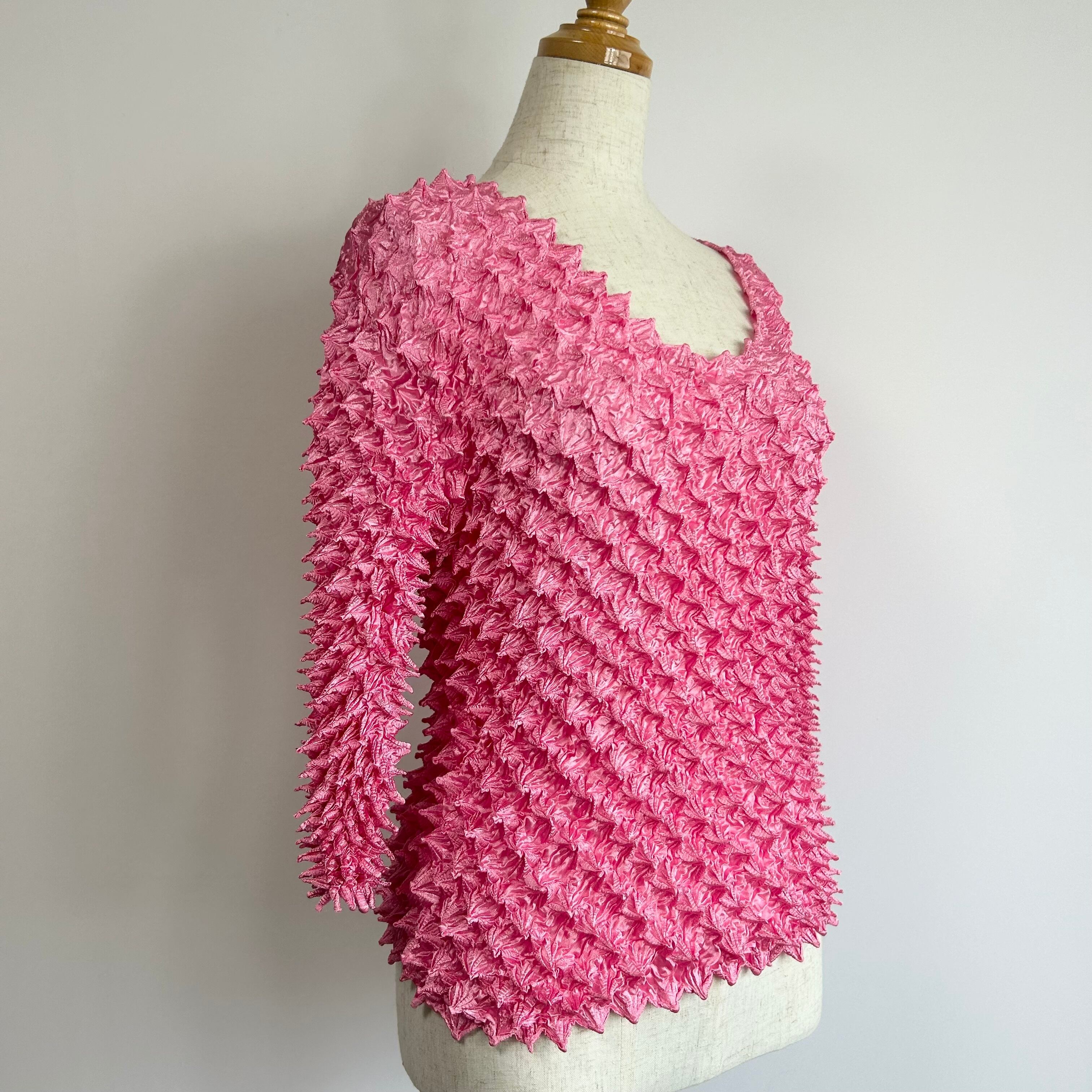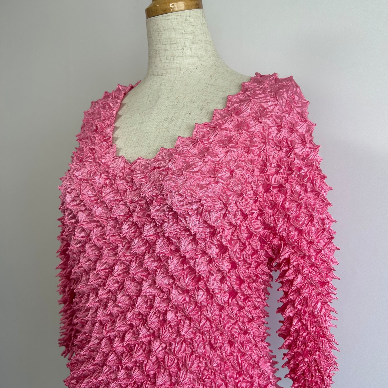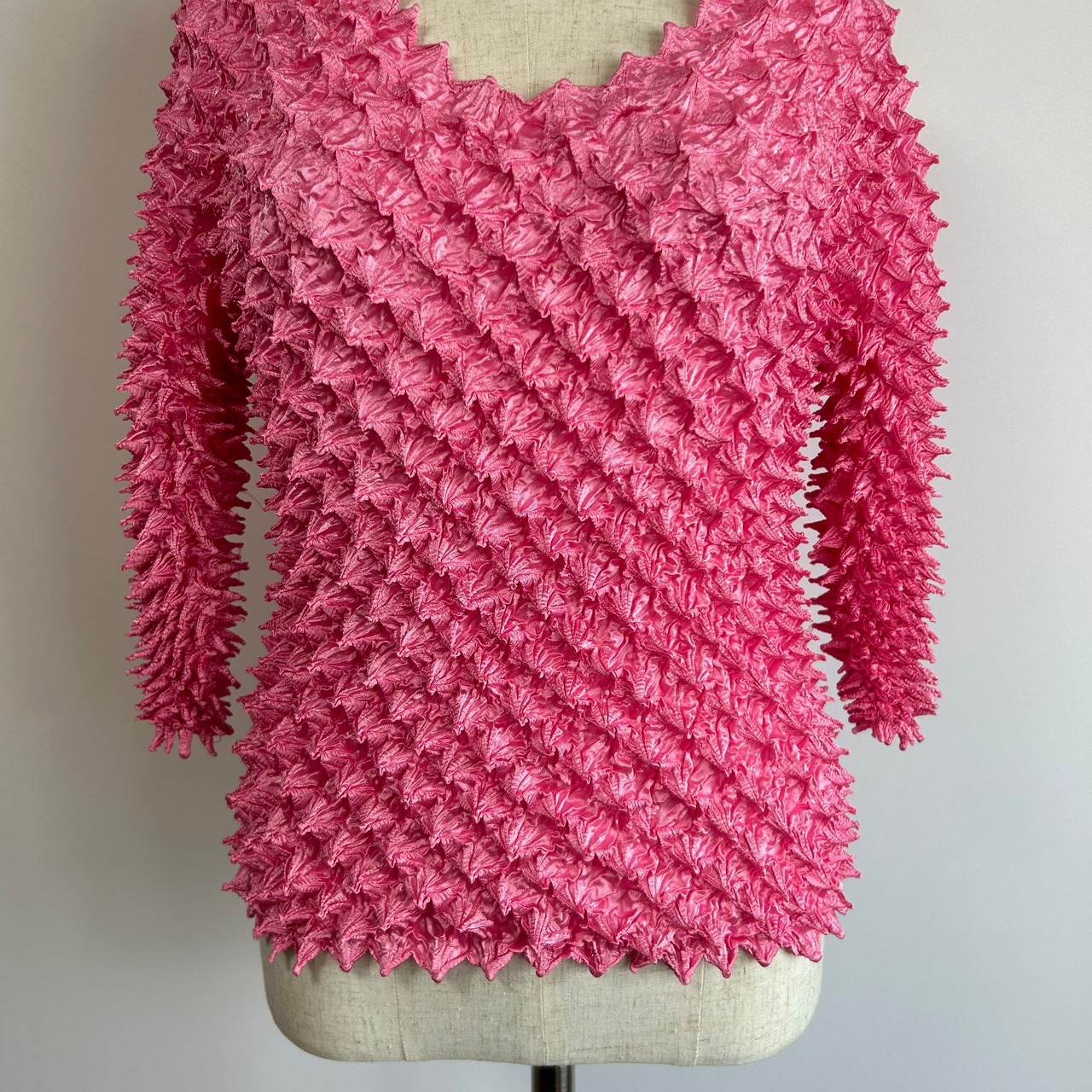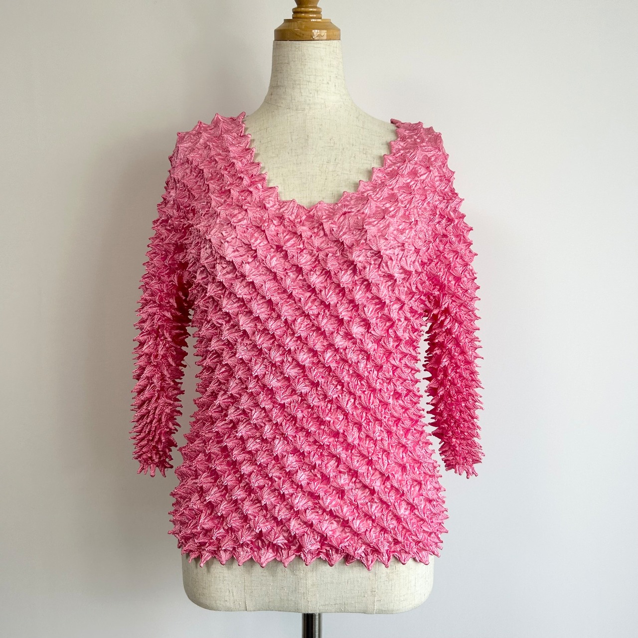 無地 ポップコーン 七分袖 トップス