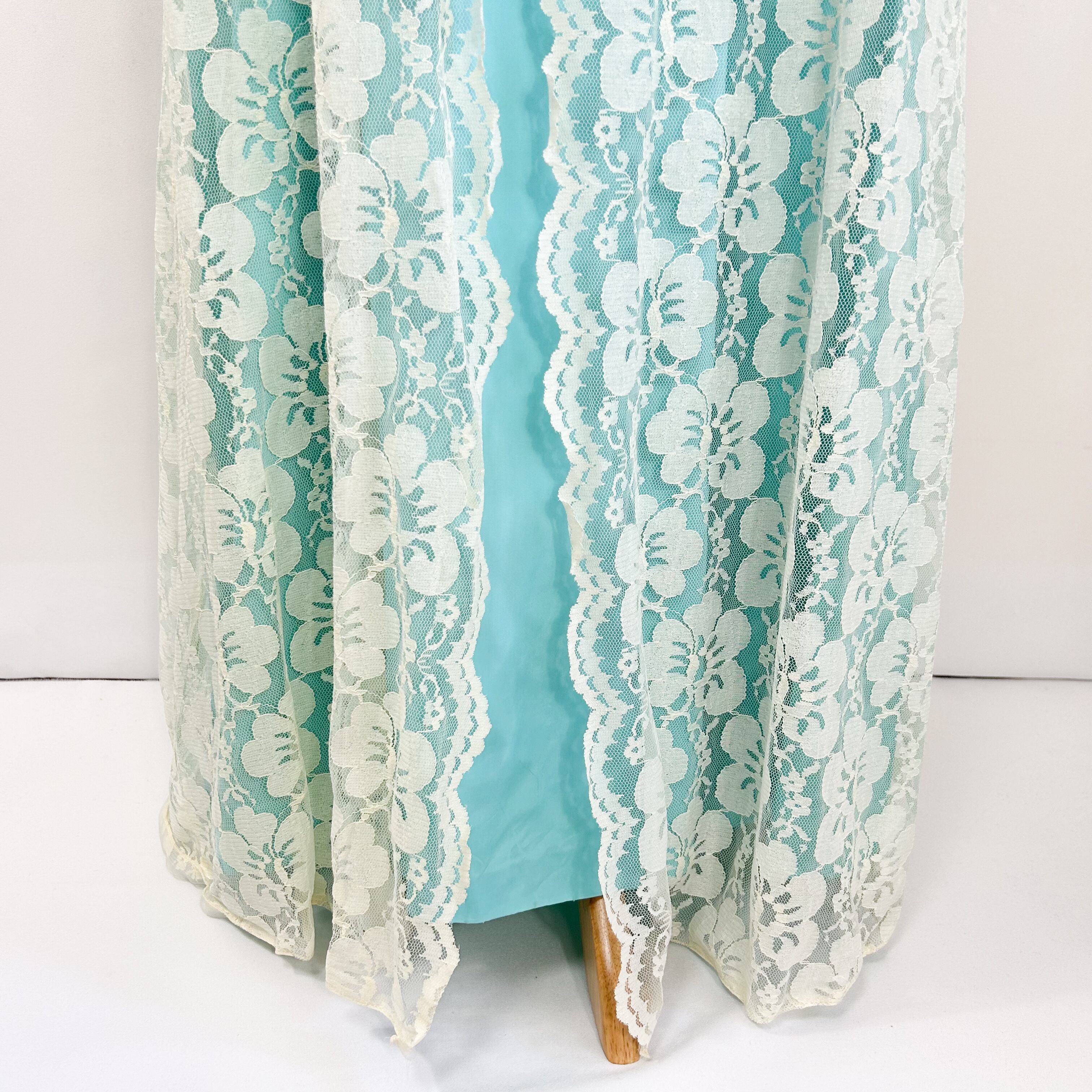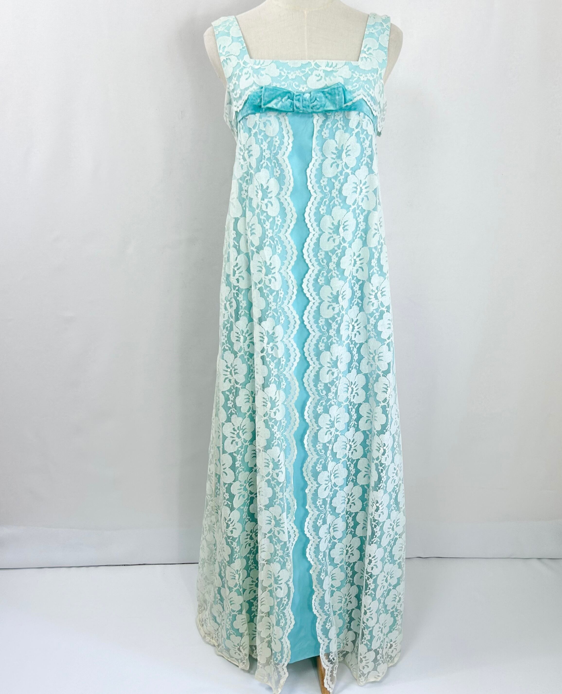 ヴィンテージ 60s 70s USA製 リボン レース ノースリーブ ロング丈 Aライン ワンピース ドレス