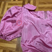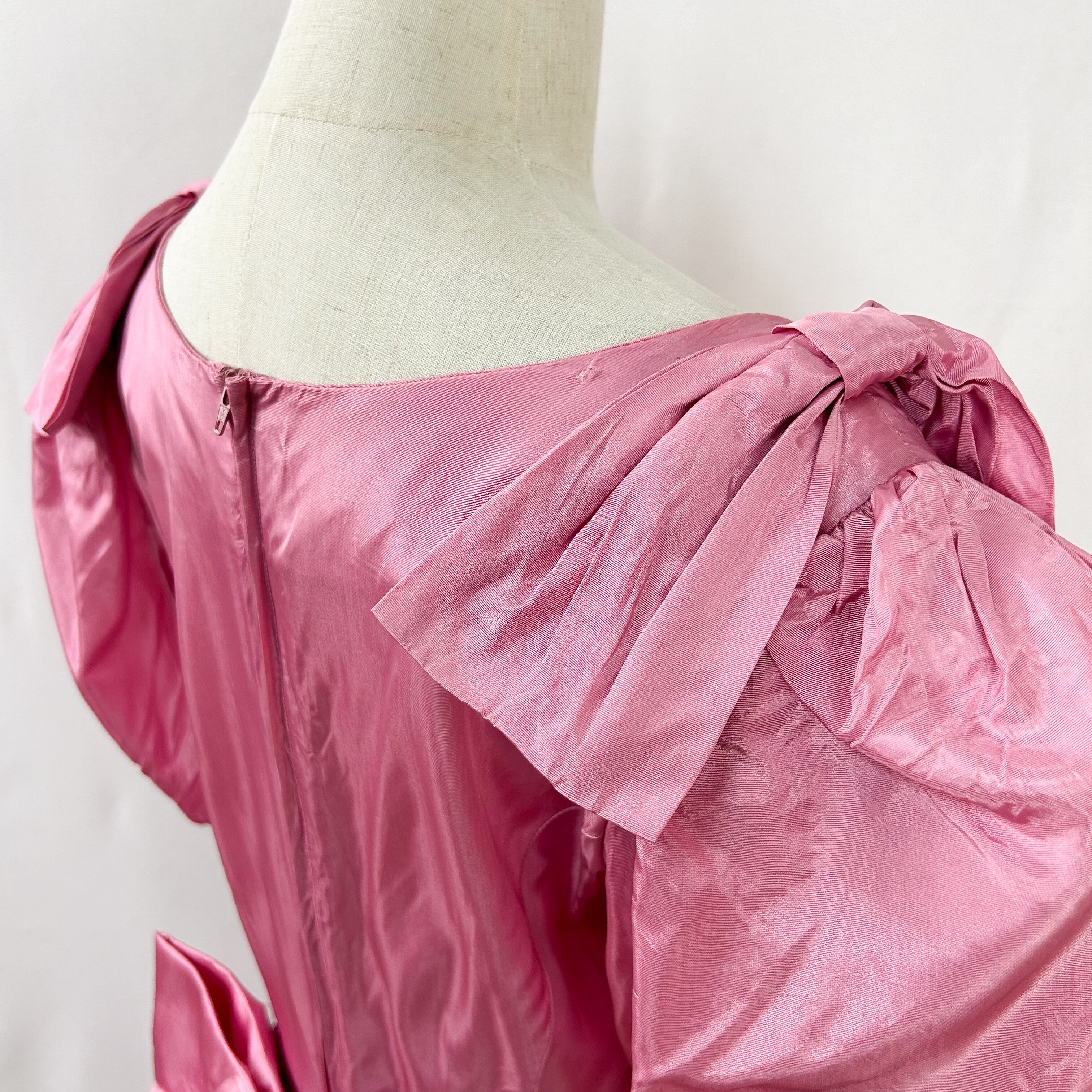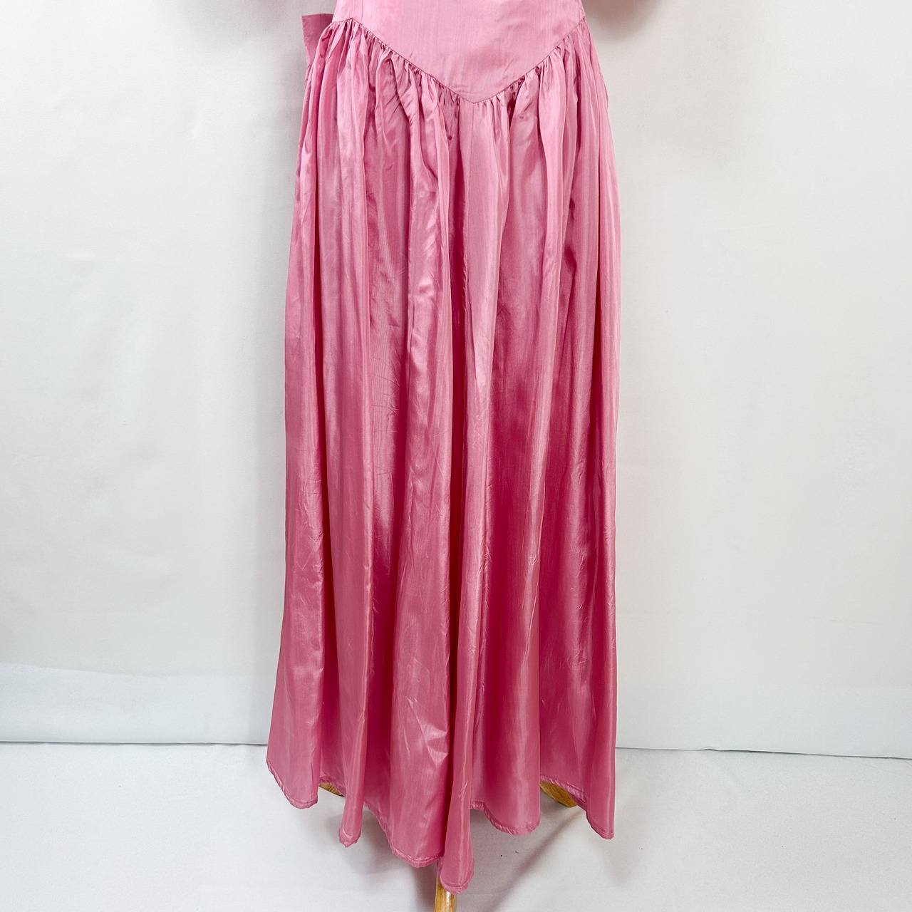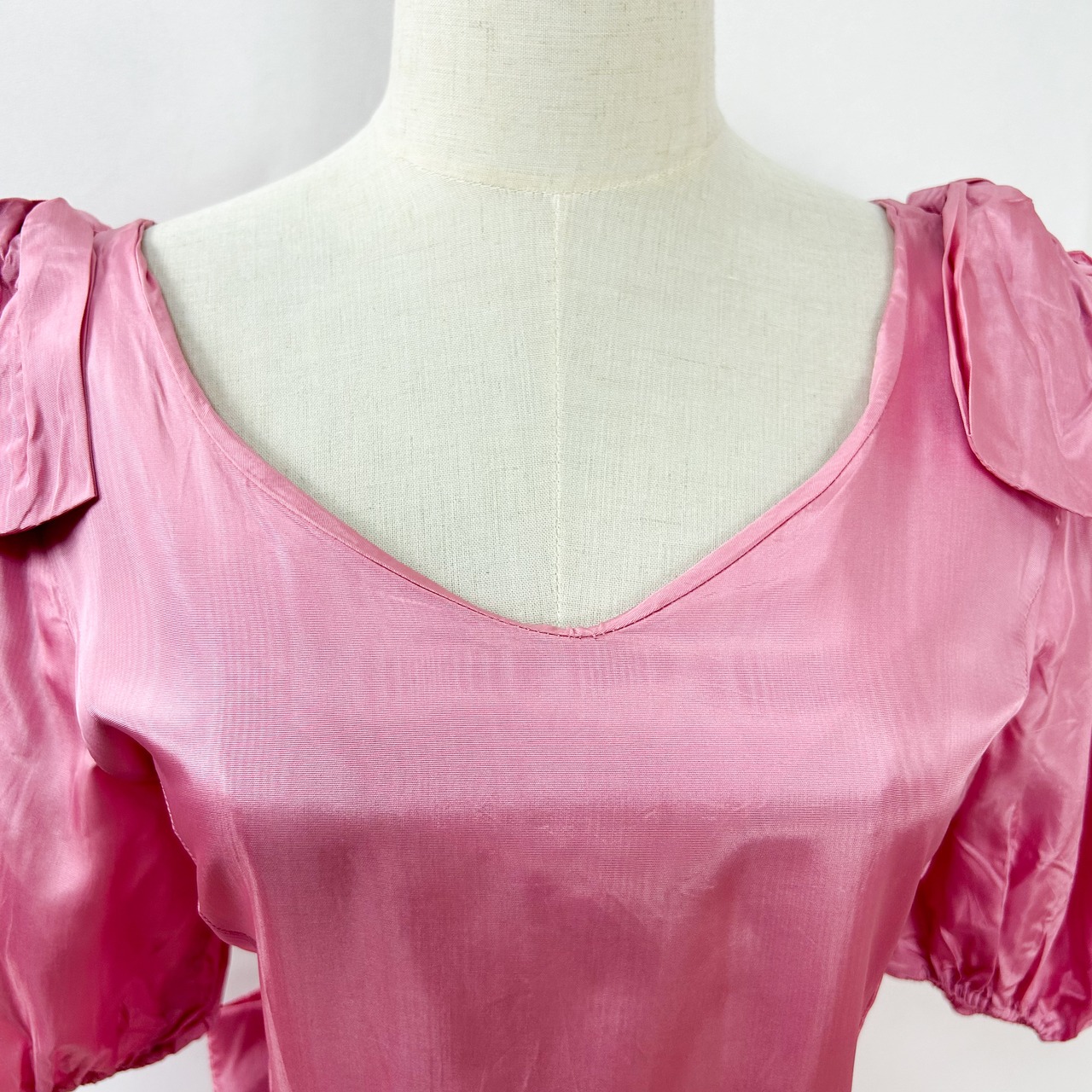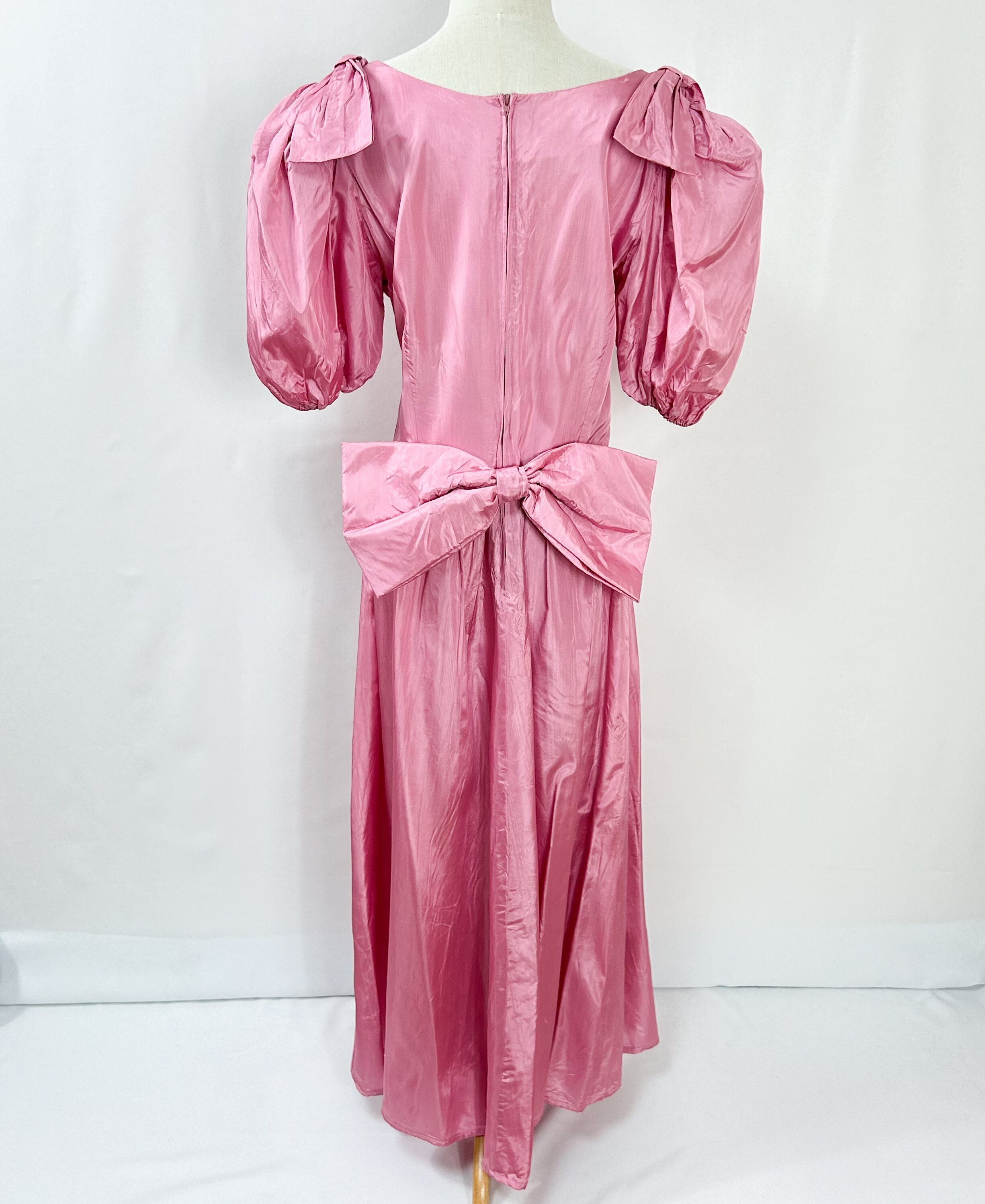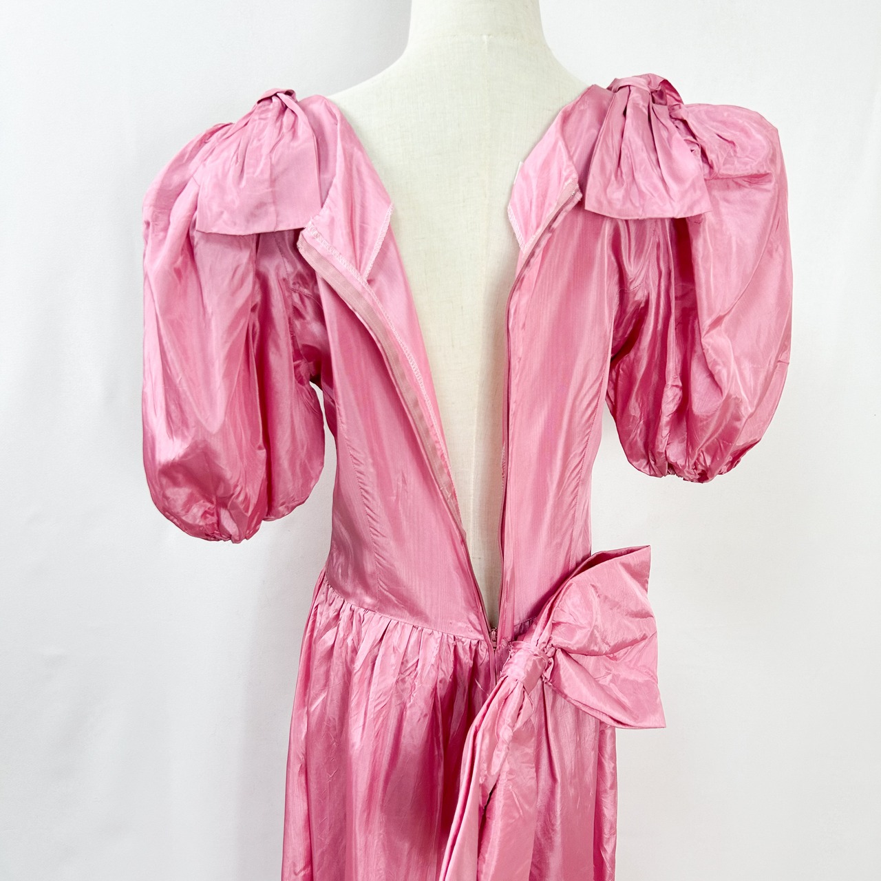 ヴィンテージ 肩リボン ウエストリボン バルーンスリーブ 半袖 ロング丈 サテン ワンピース ドレス