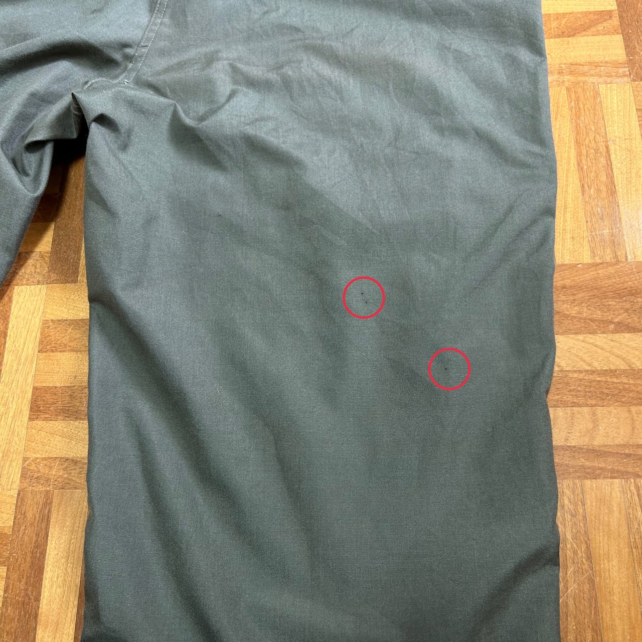 右袖生地引けダメージあり。バック右太ももに薄汚れ数カ所あり。