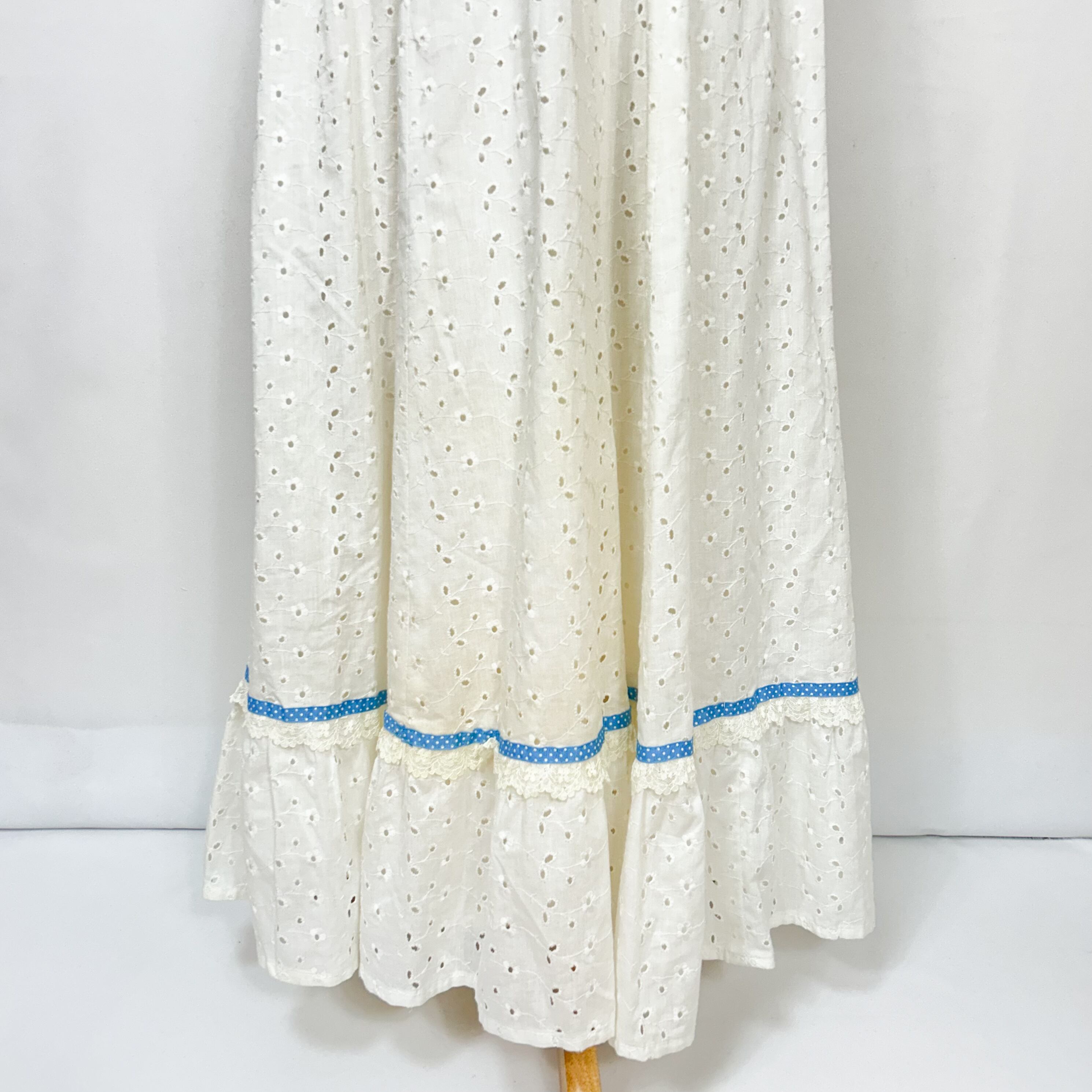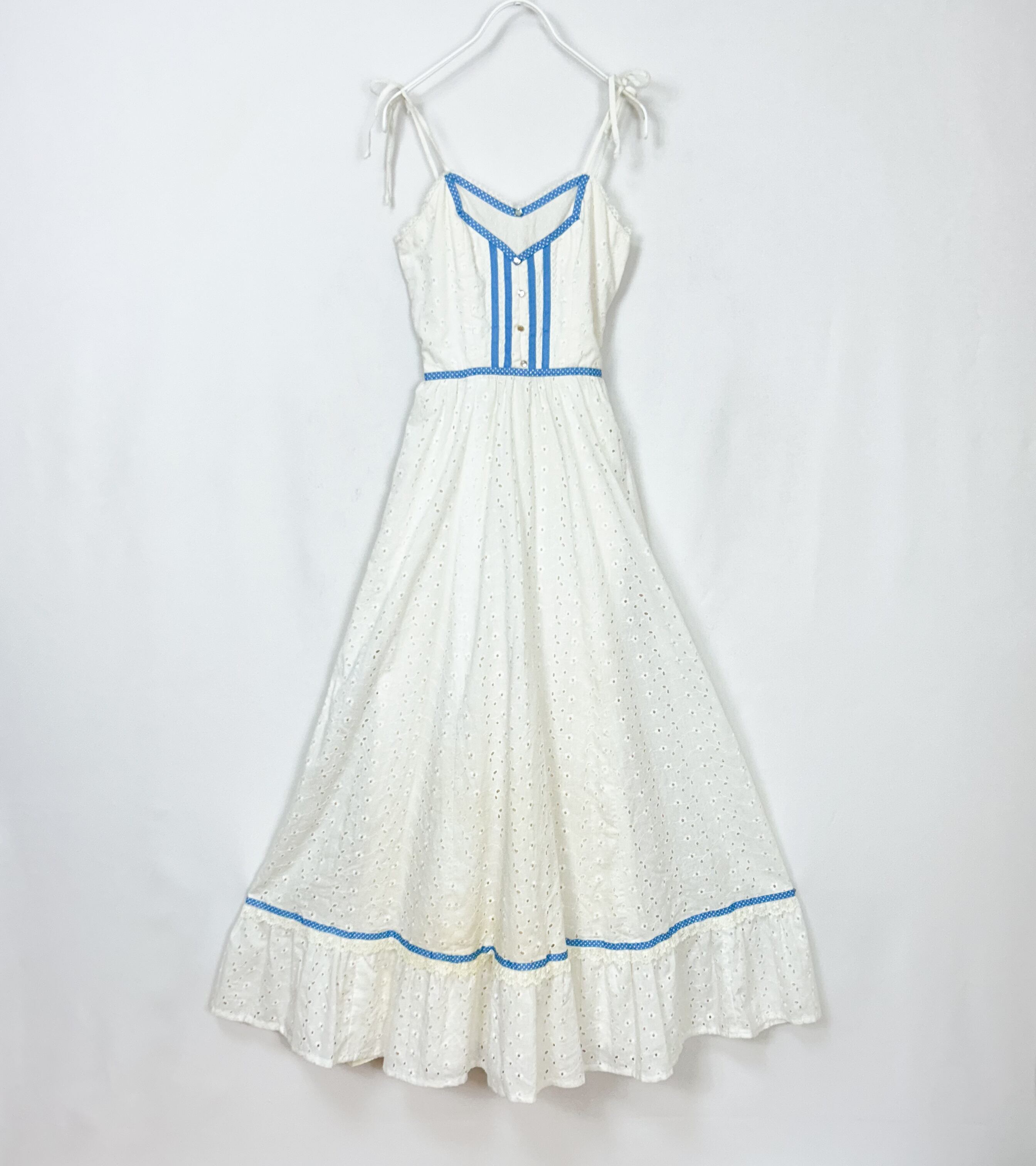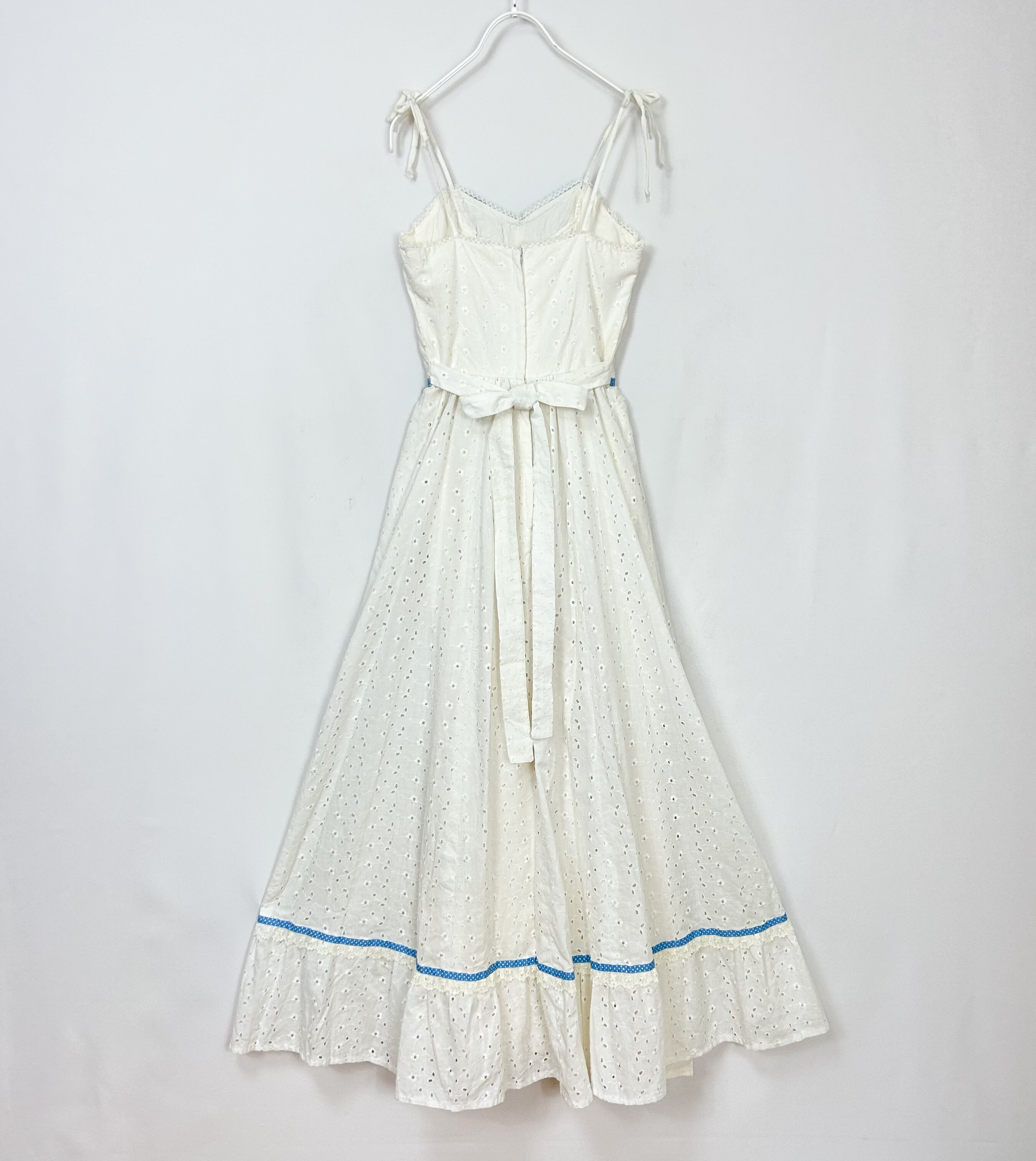 ヴィンテージ 70s USA製 パイピング カットワークレース キャミソール ロング ワンピース ドレス