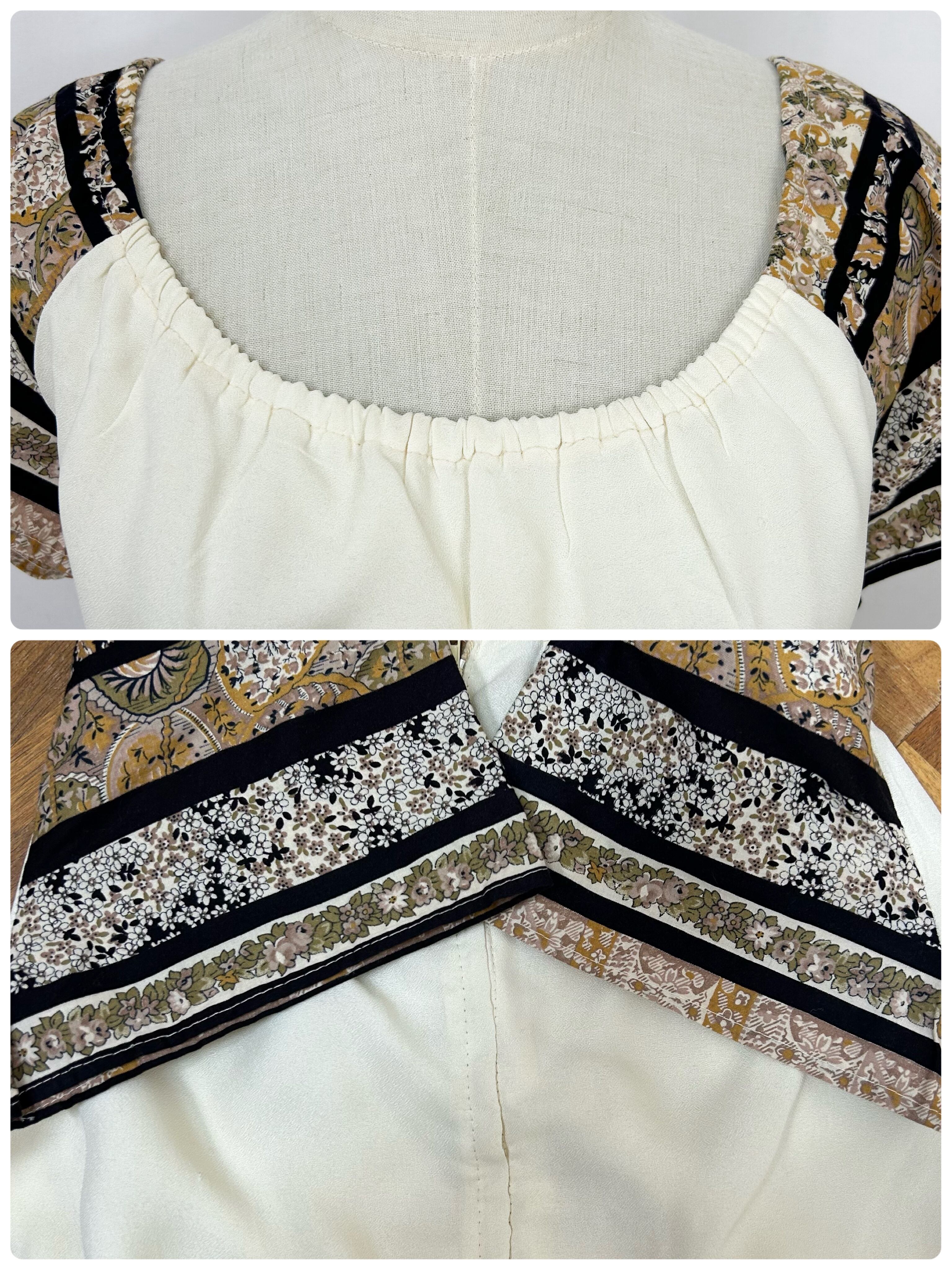 ヴィンテージ イングランド製 半袖 切り替え 総柄 フローラル 膝下丈 ワンピース ドレス