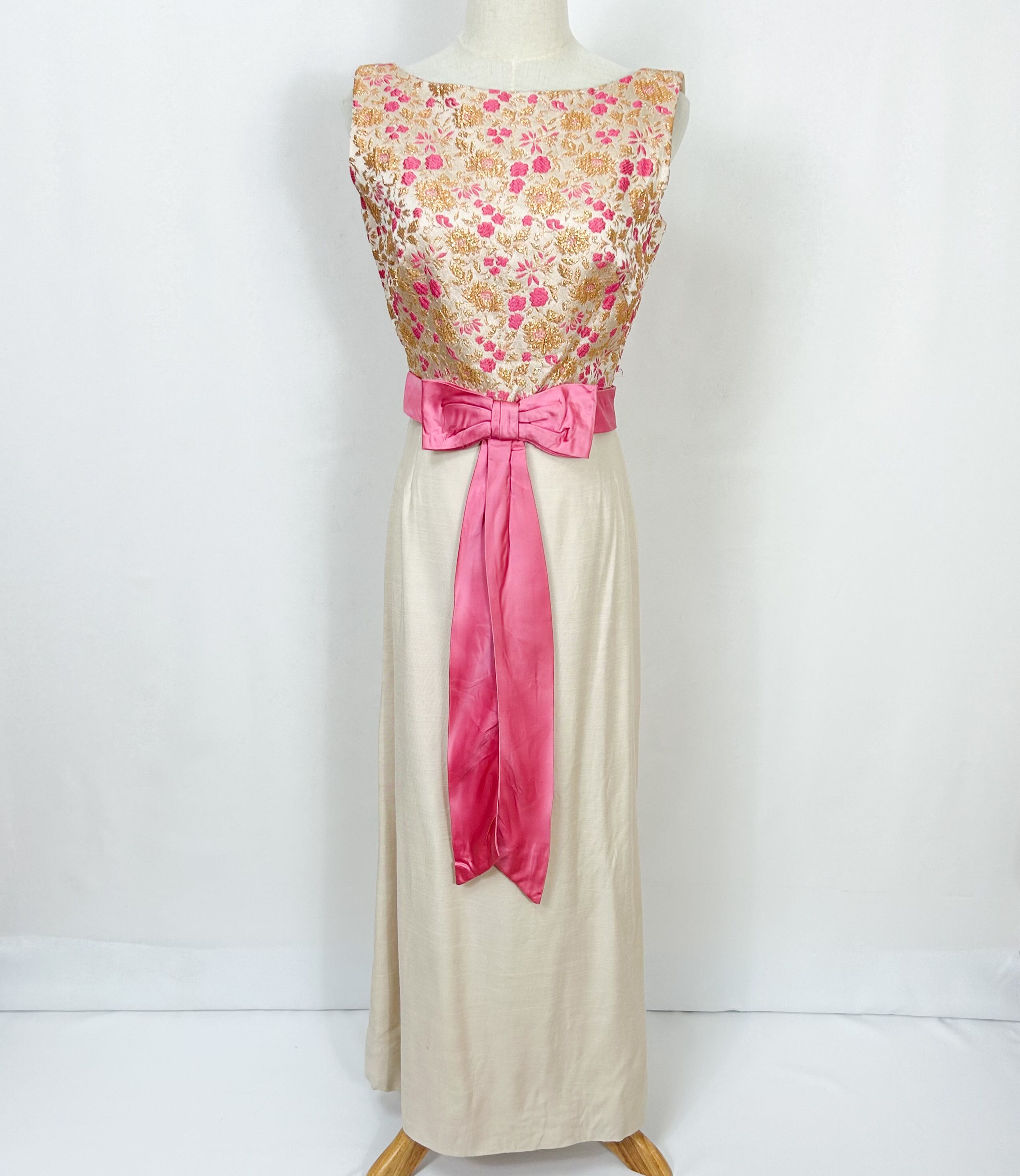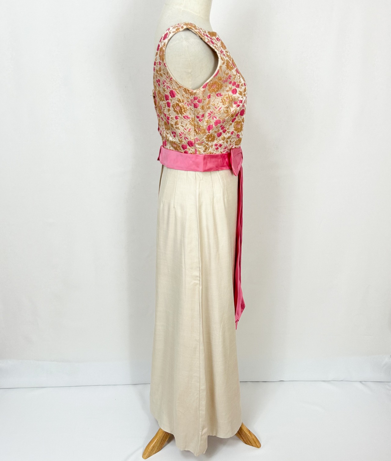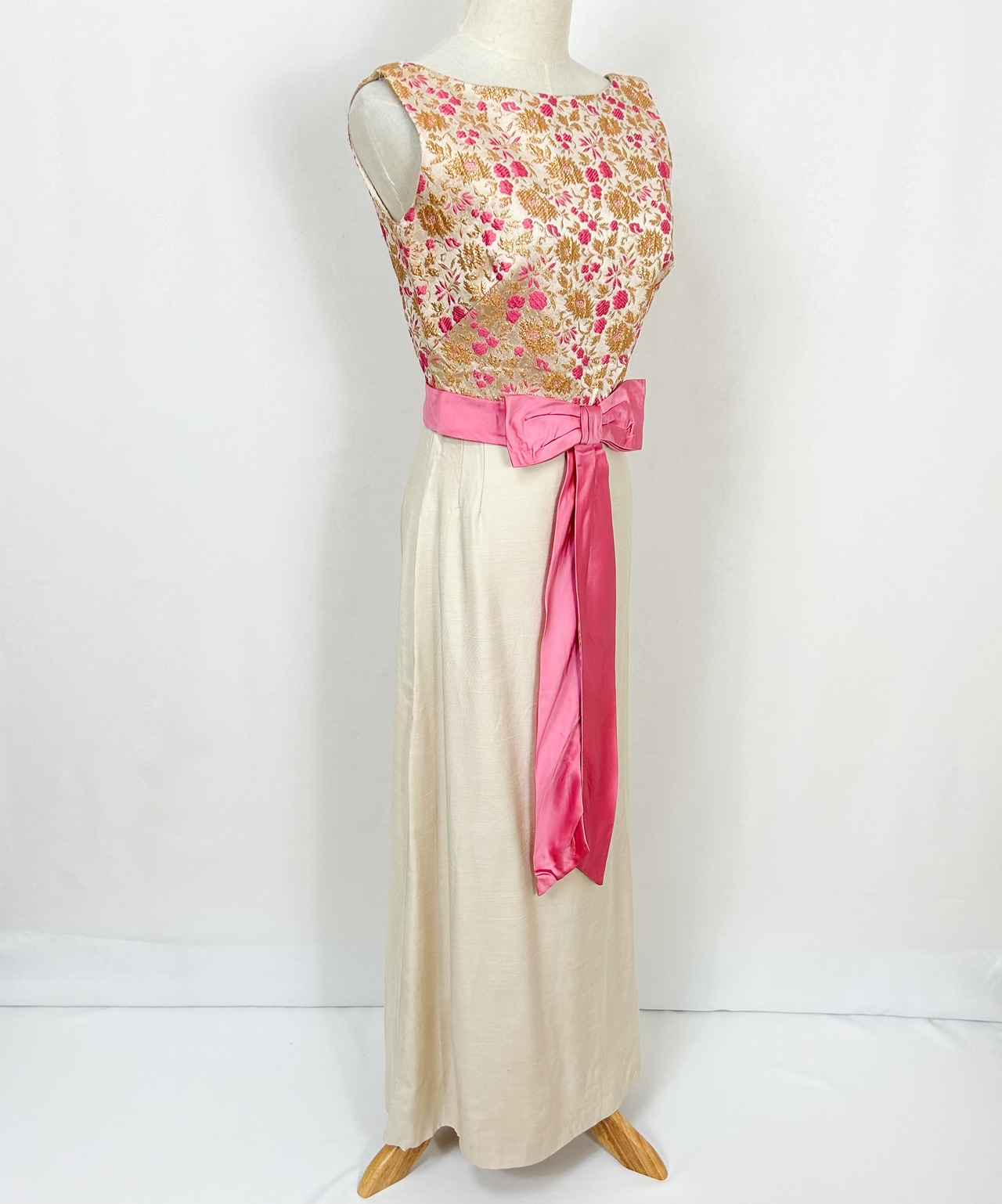 ヴィンテージ 60s 70s ユニオンメイド ウエストリボン 花柄刺繍 ロングワンピース ドレス