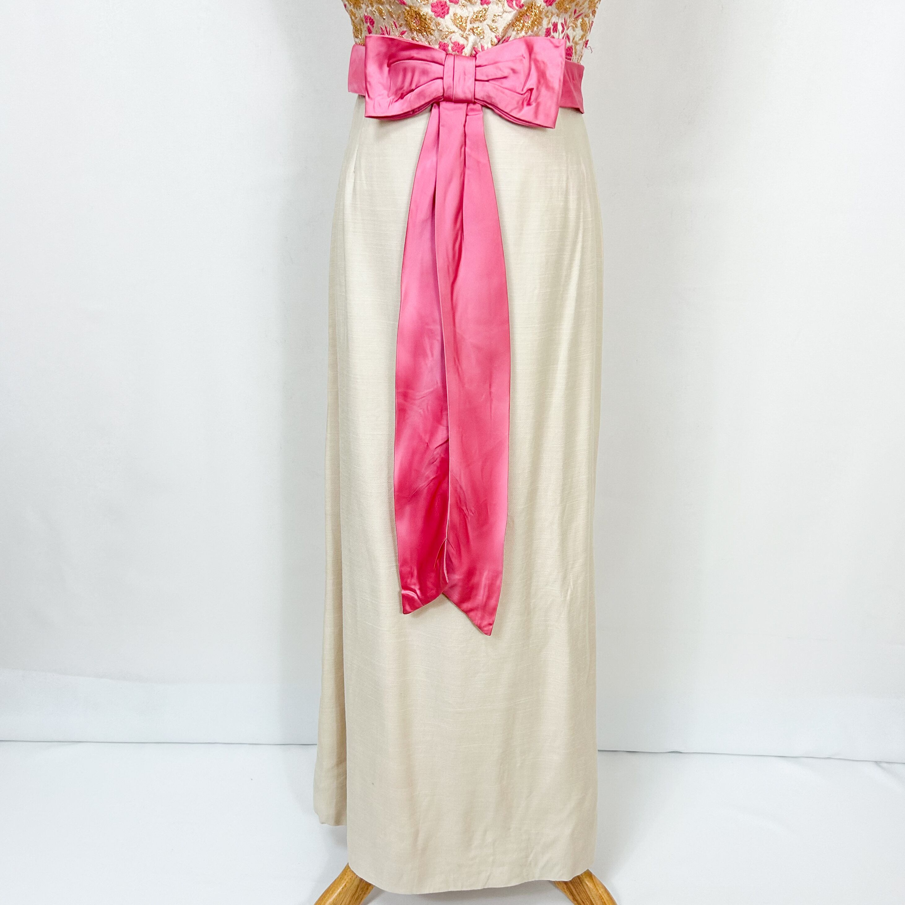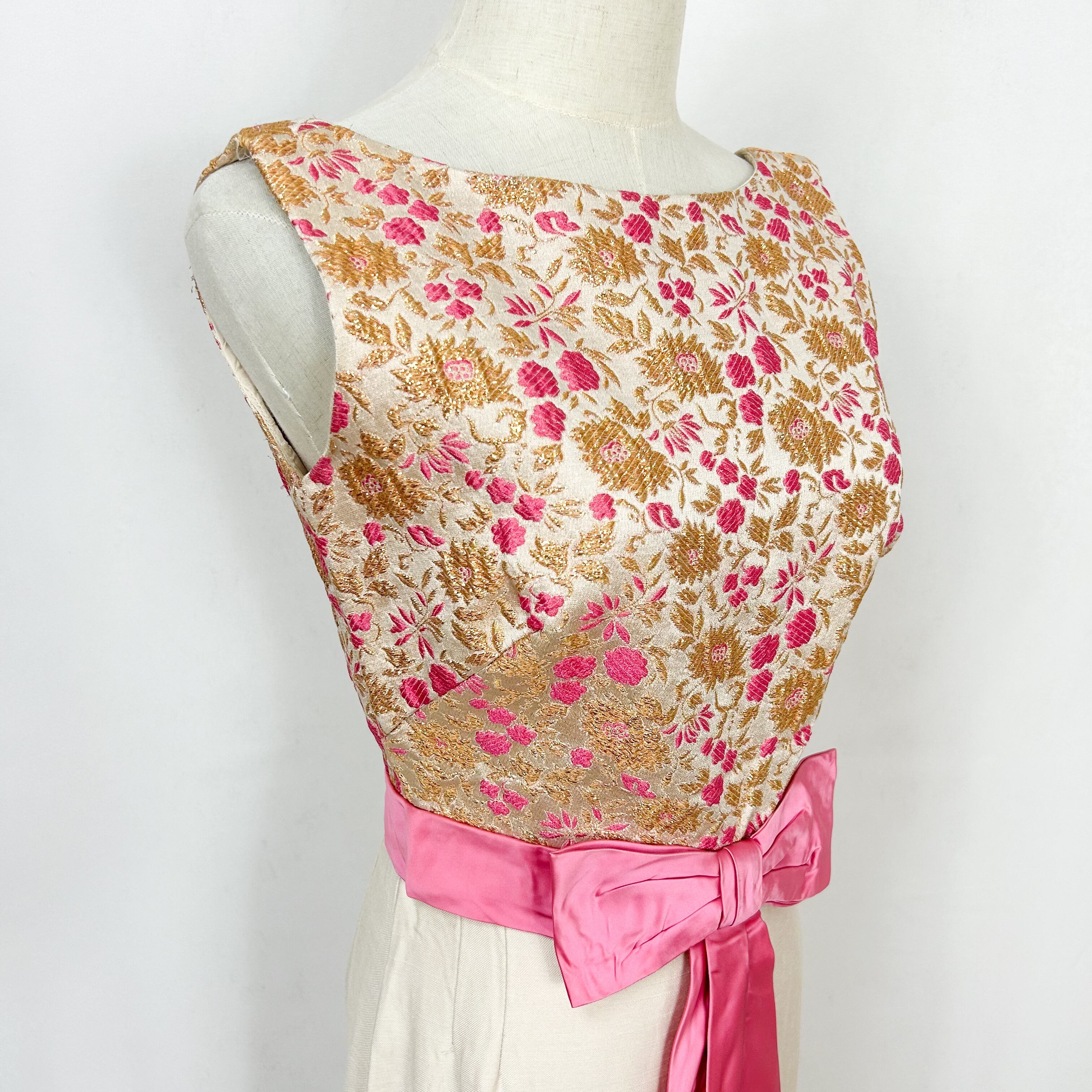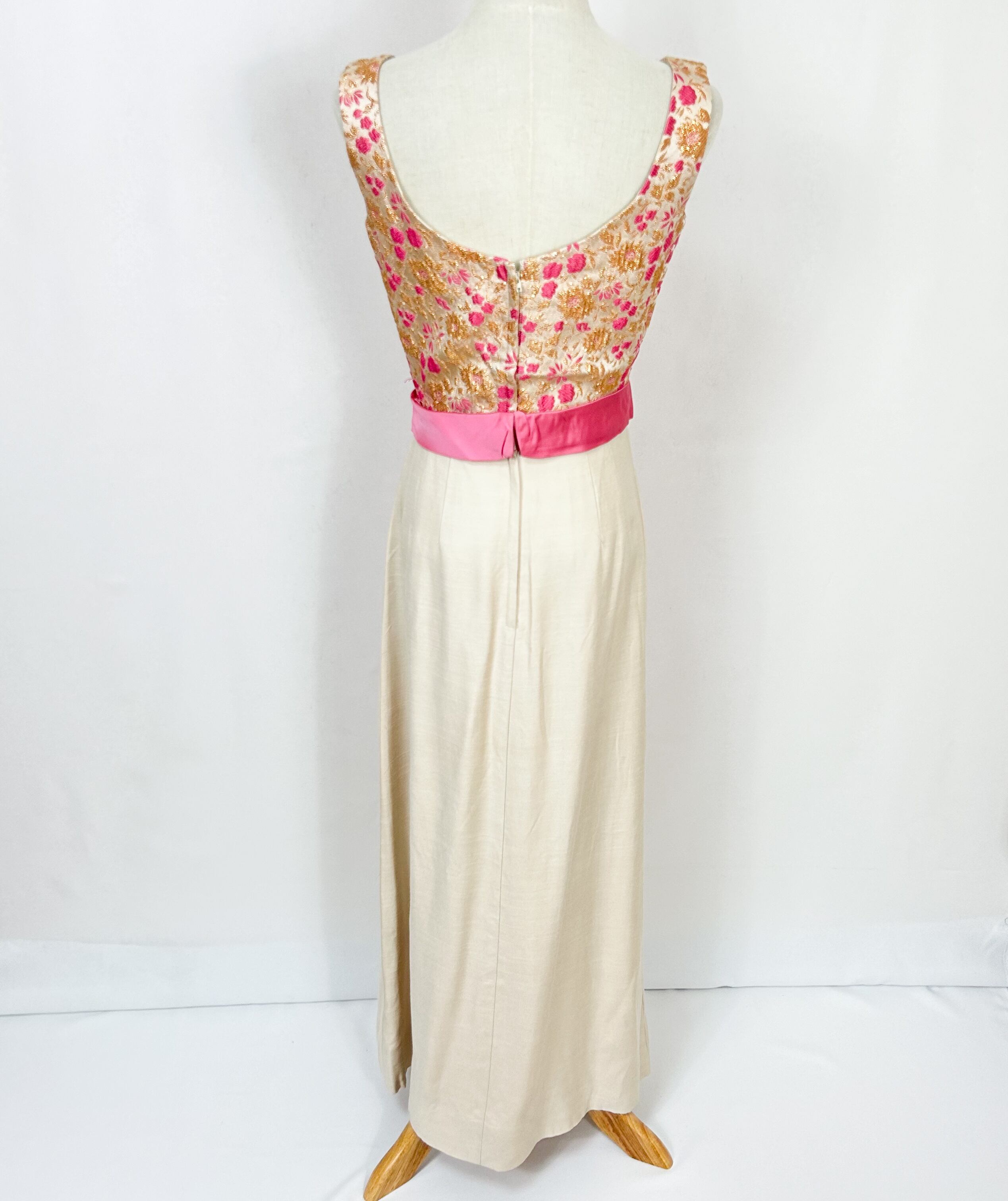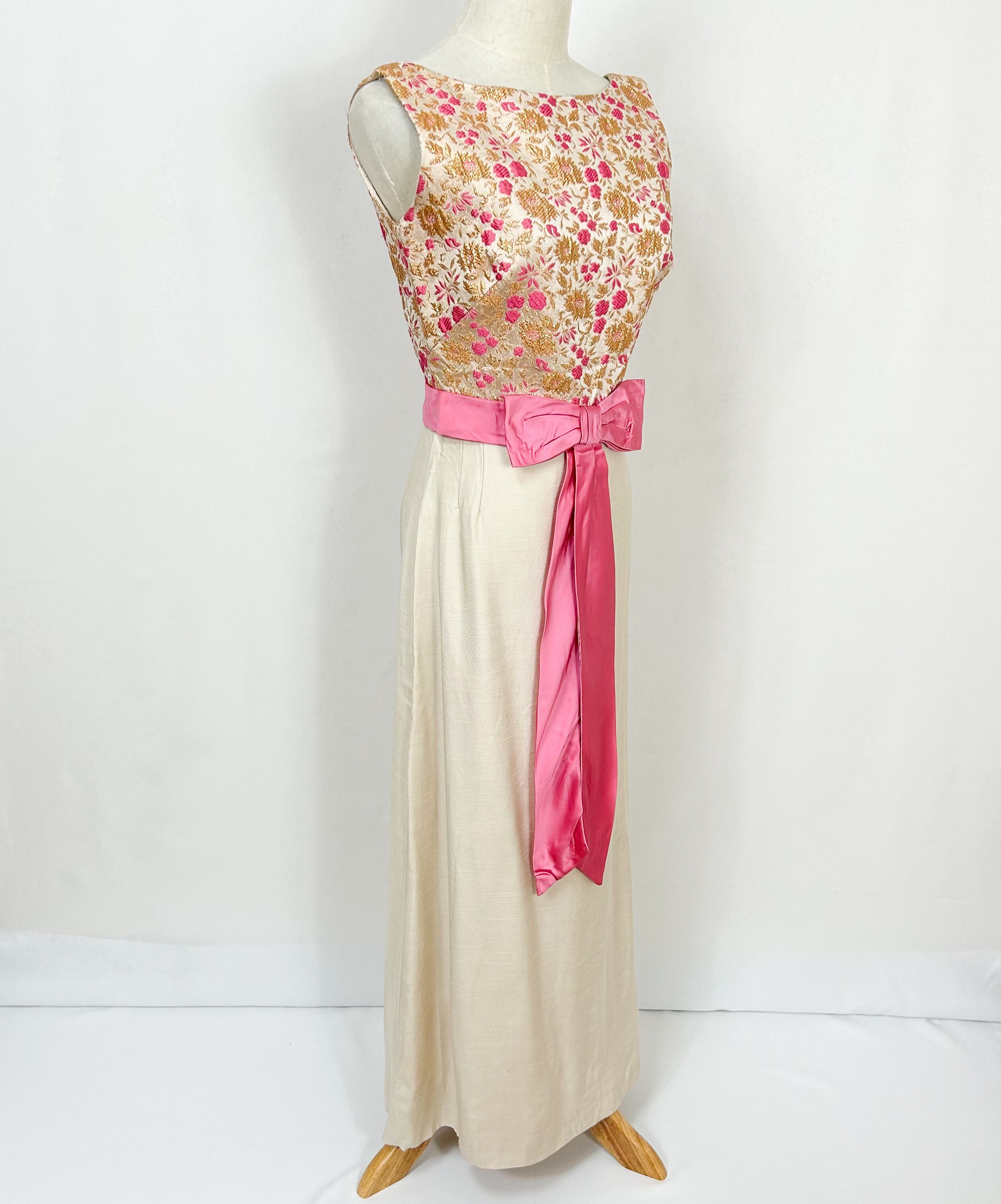 ヴィンテージ 60s 70s ユニオンメイド ウエストリボン 花柄刺繍 ロングワンピース ドレス