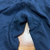 袖、ウエスト辺り、ヒップ左ポケットに薄汚れ数カ所あり。ヒップ、脚、袖に毛玉所々あり。