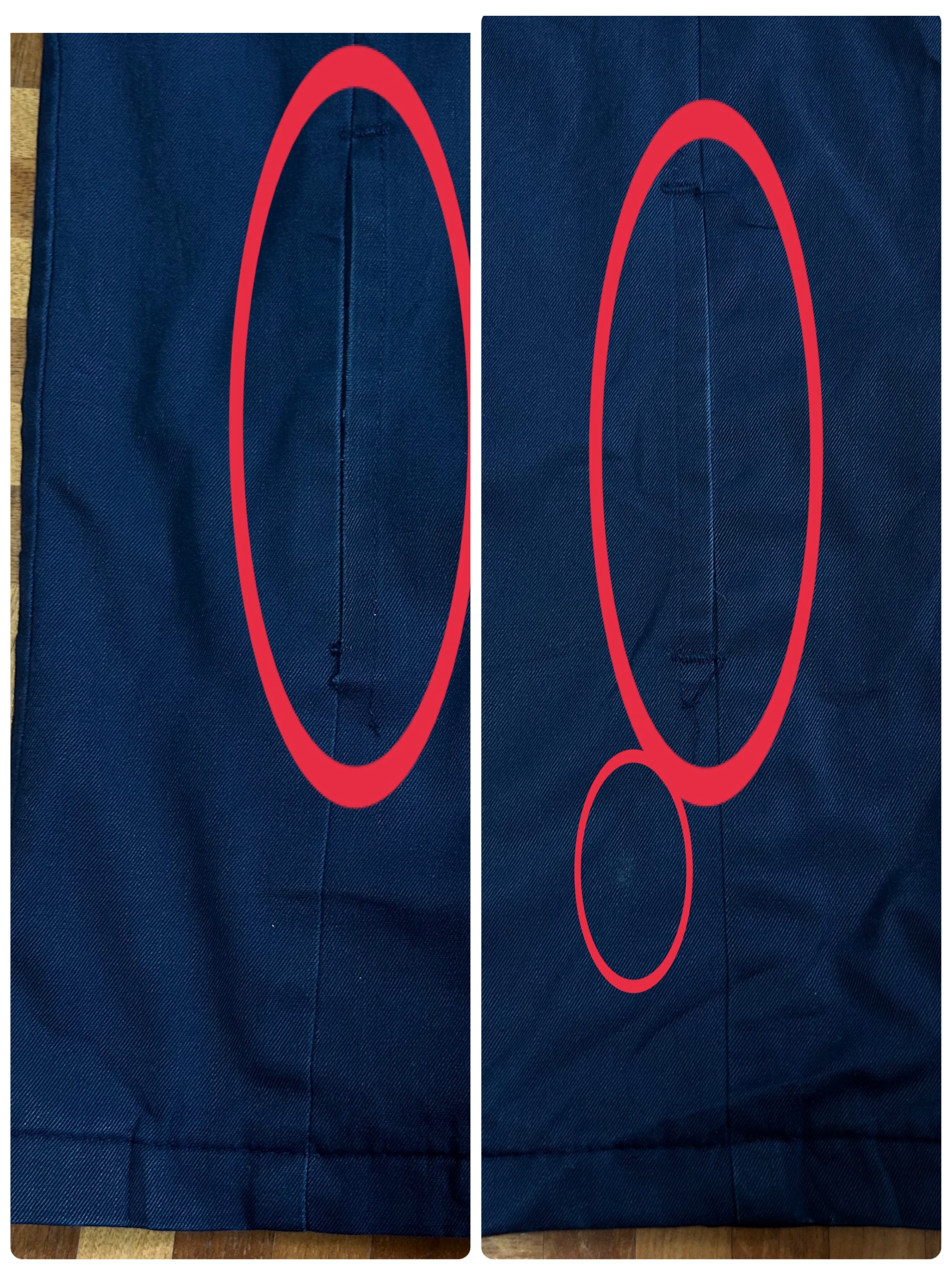 右胸リペア跡あり。左胸ワッペン取れた跡あり。袖、左裾、ポケット口擦れダメージ数カ所あり。背中、バック裾に生地難数カ所あり。裏地フロント裾5㎜程度のダメージ数カ所あり。裏地胸、腰、フロント裾、擦れダメージ数カ所あり。ジップ使えますがジップ先の生地少しダメージあり。