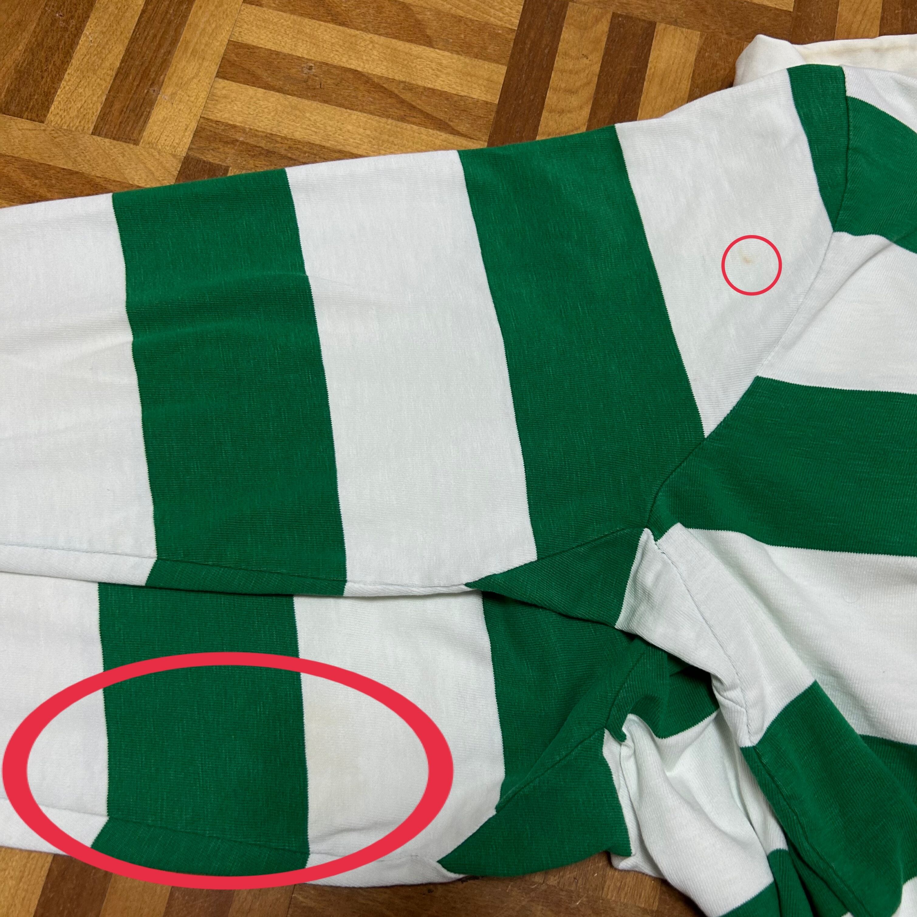 襟周り、首元内側、袖、お腹辺りに薄汚れ数カ所あり。
