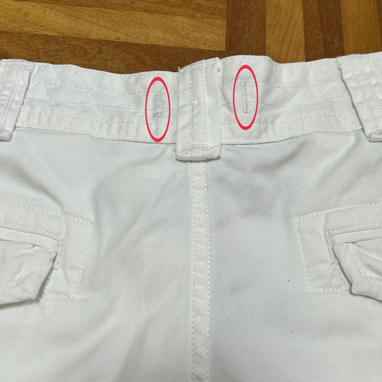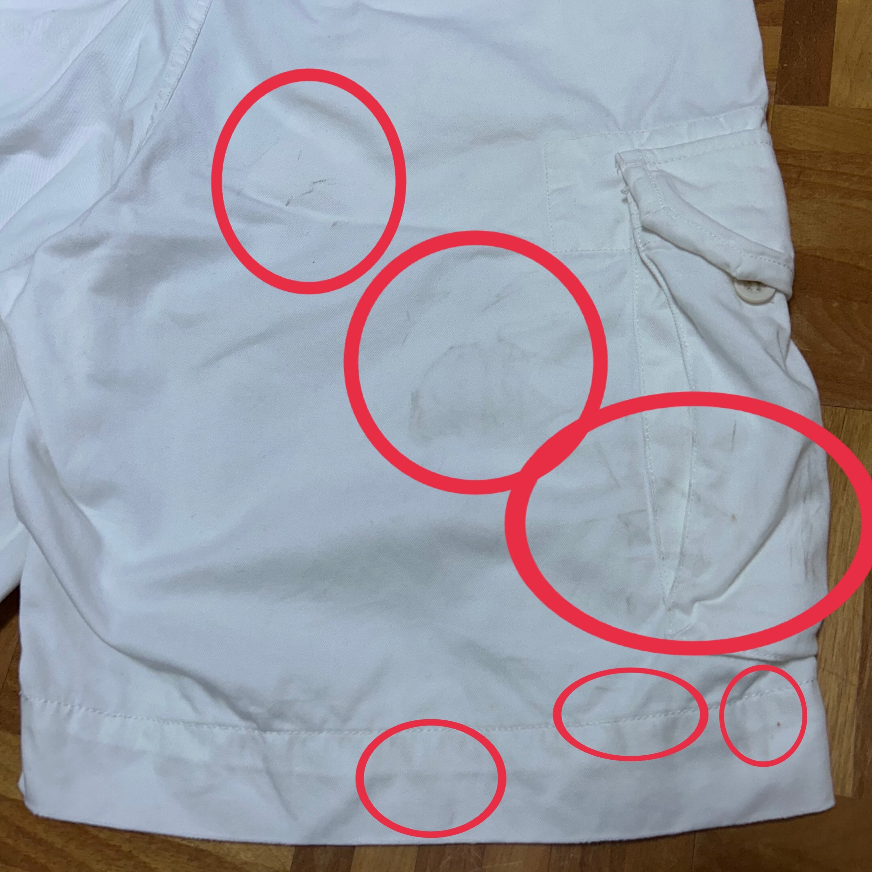 ウエスト左サイド、右下ポケット、バックウエスト、バック右ヒップ、バック右下ポケット辺りに薄汚れ数カ所あり。