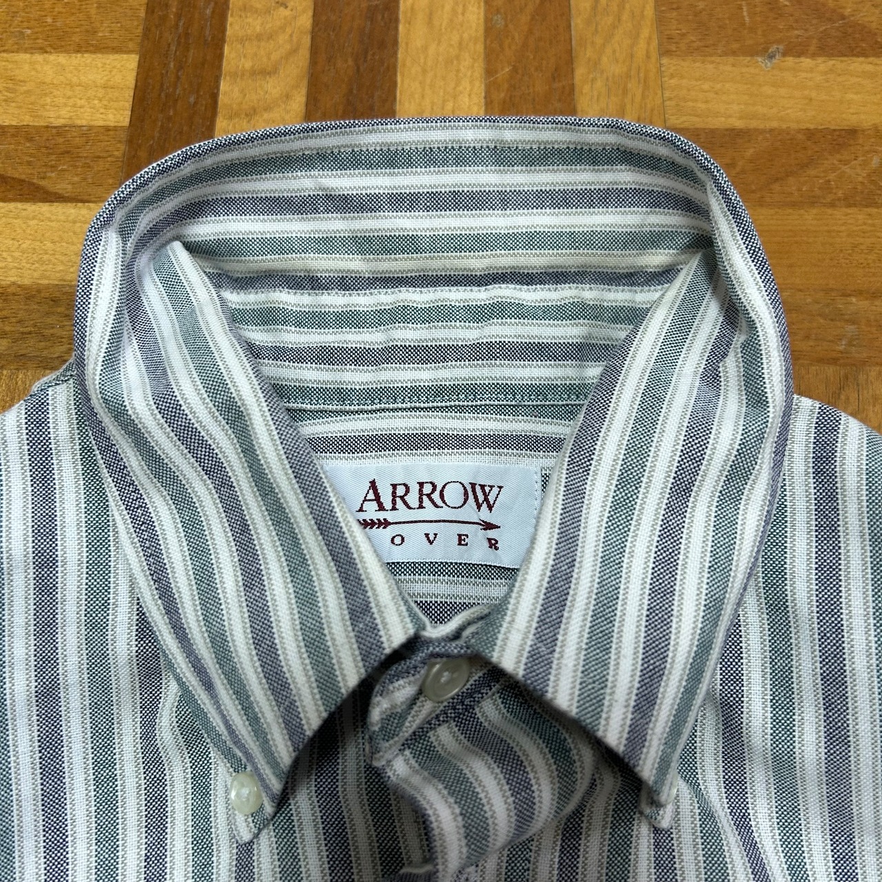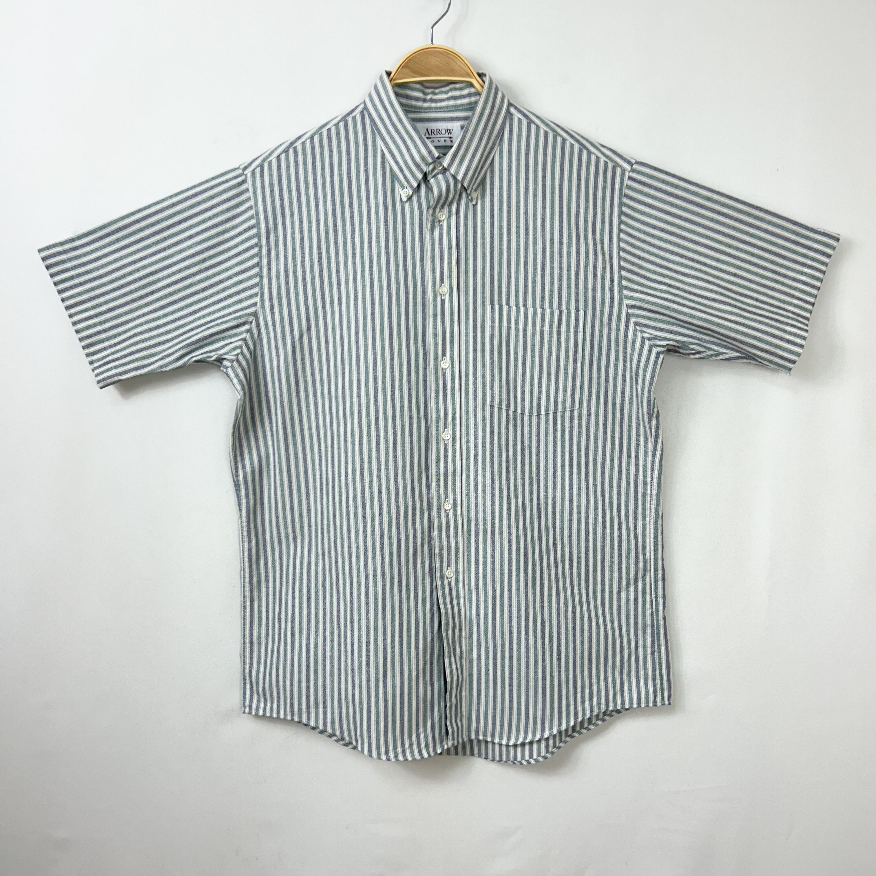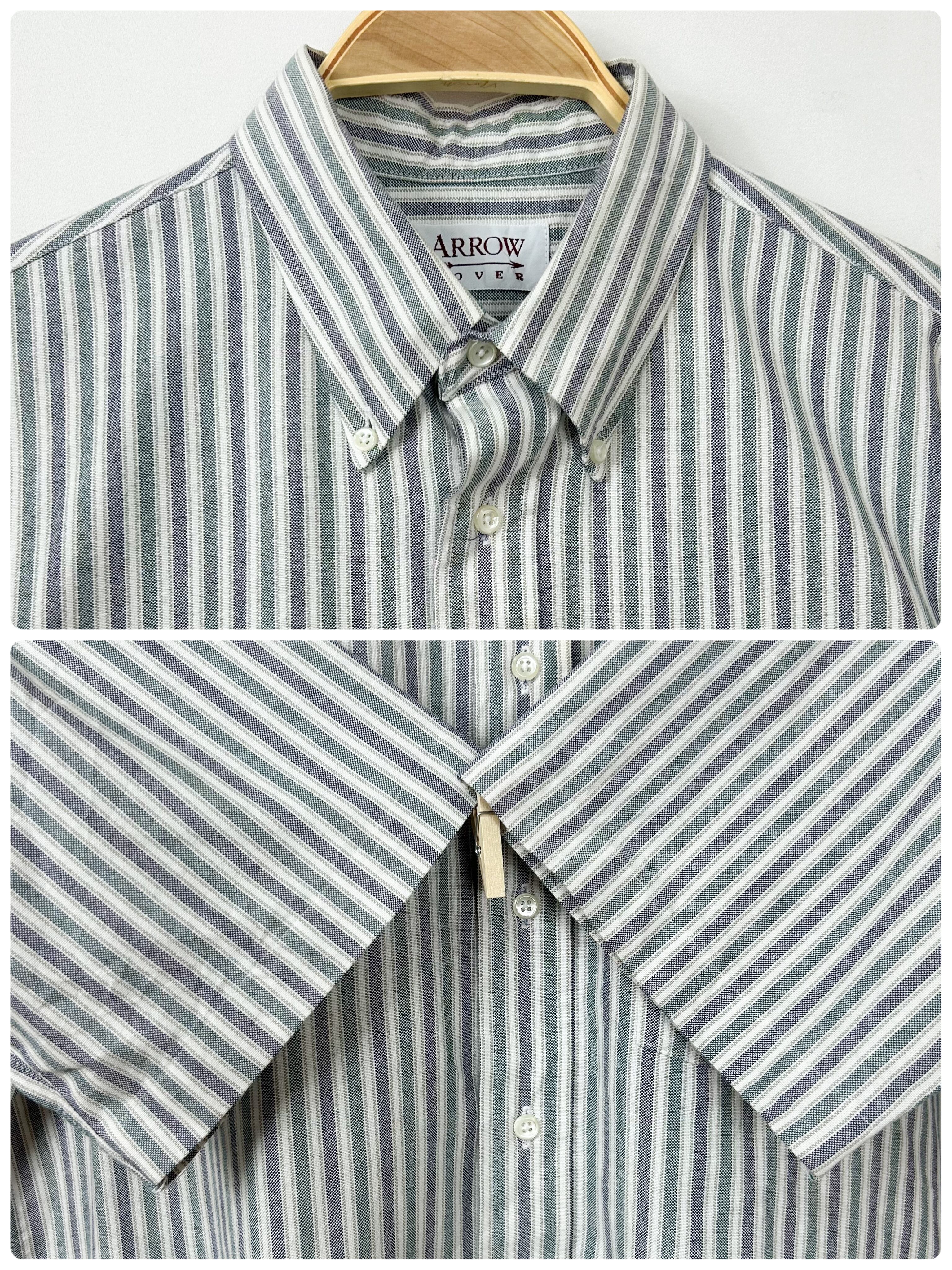 90s USA製 Arrow 半袖 ストライプ BDシャツ