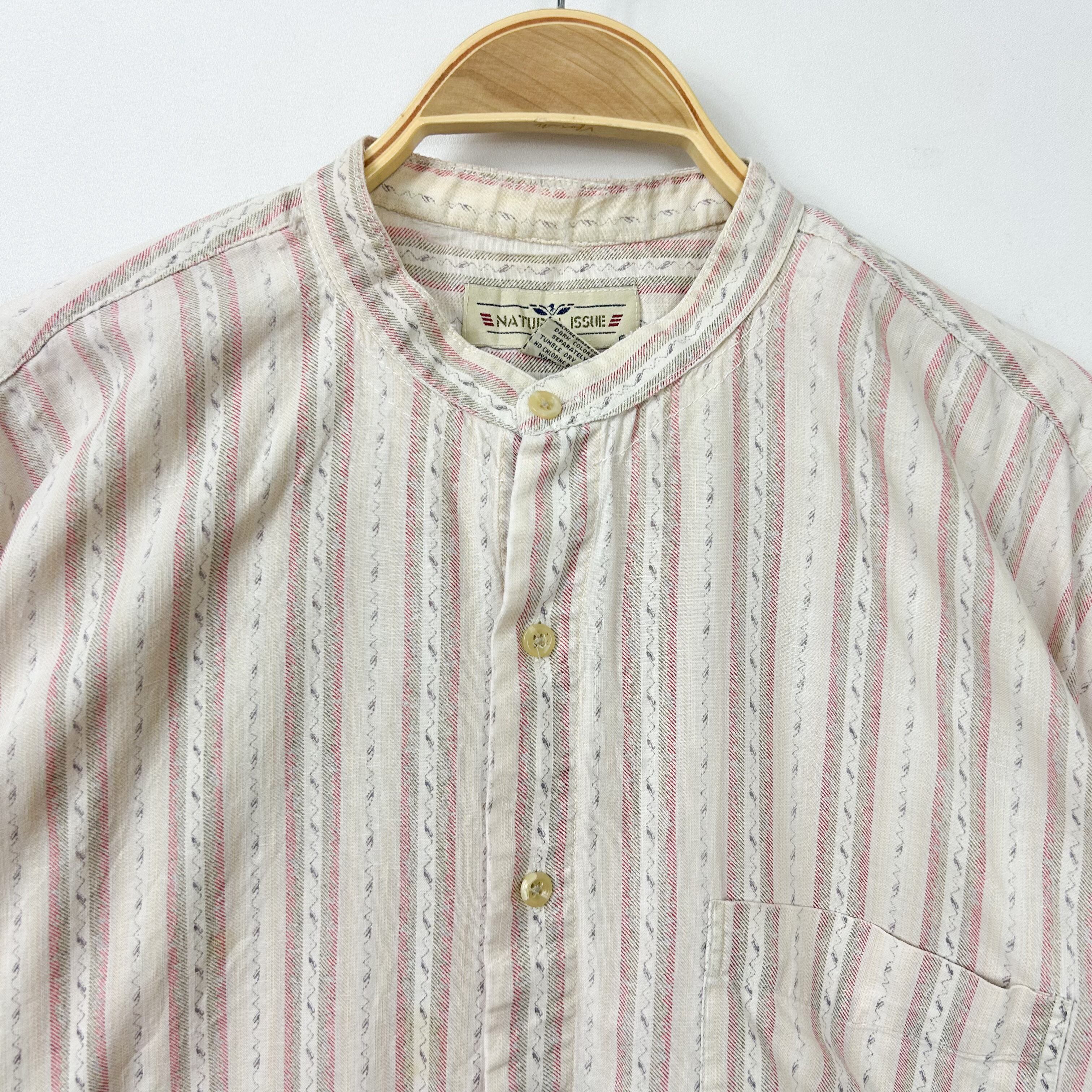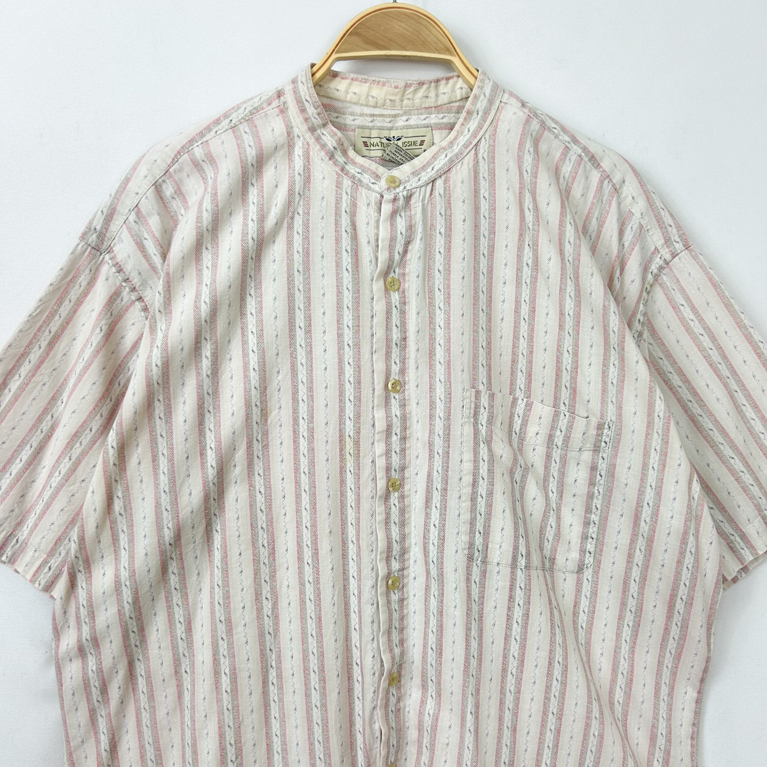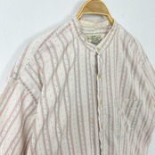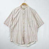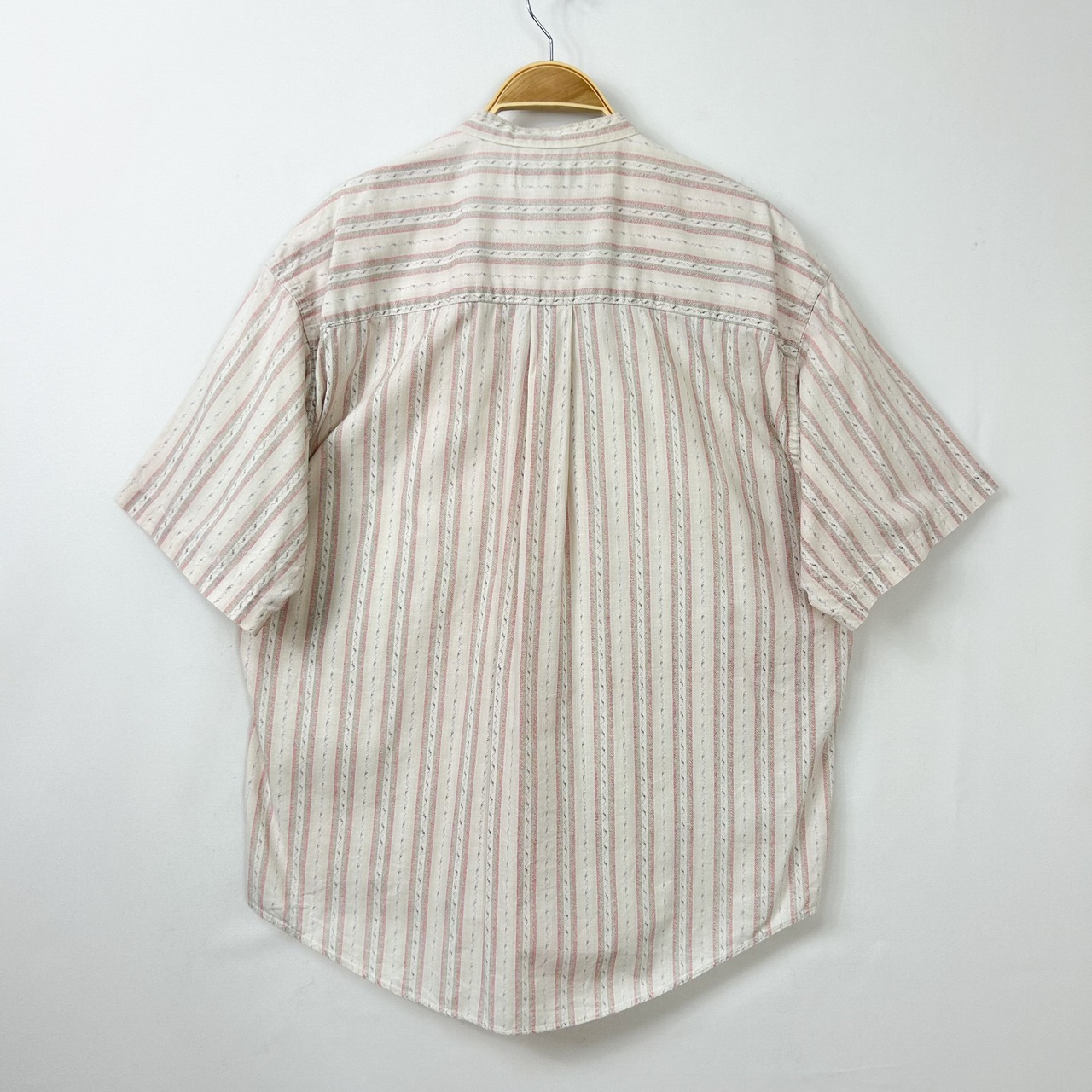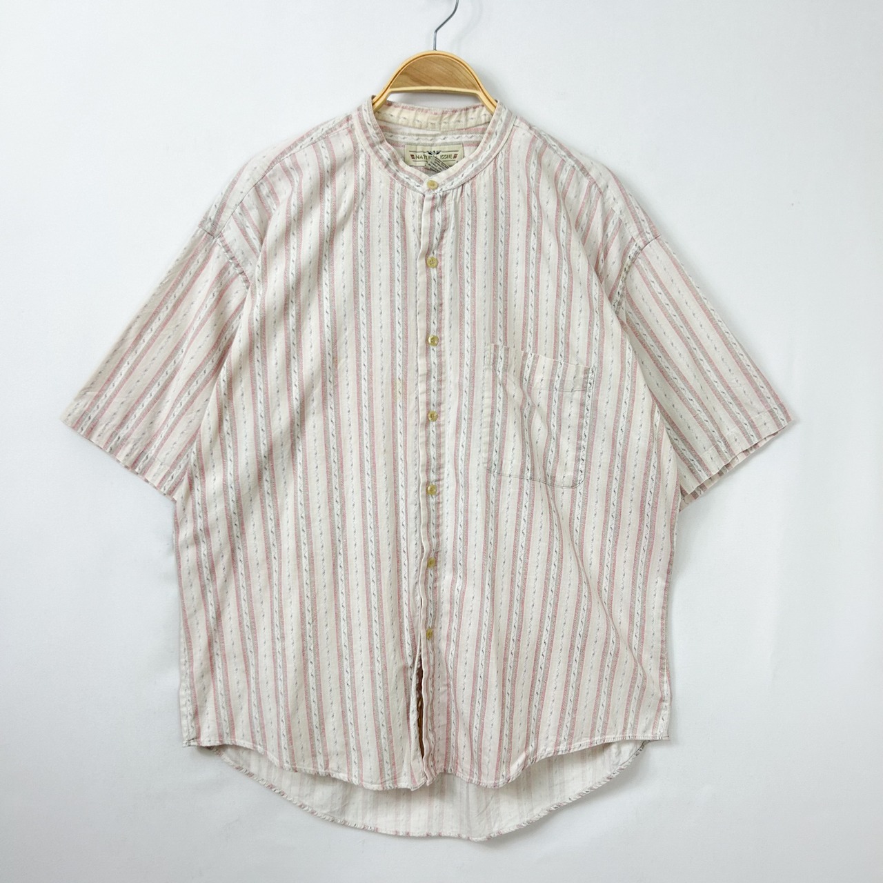 リメイク バンドカラー 総柄 マルチストライプ 半袖 シャツ ブラウス