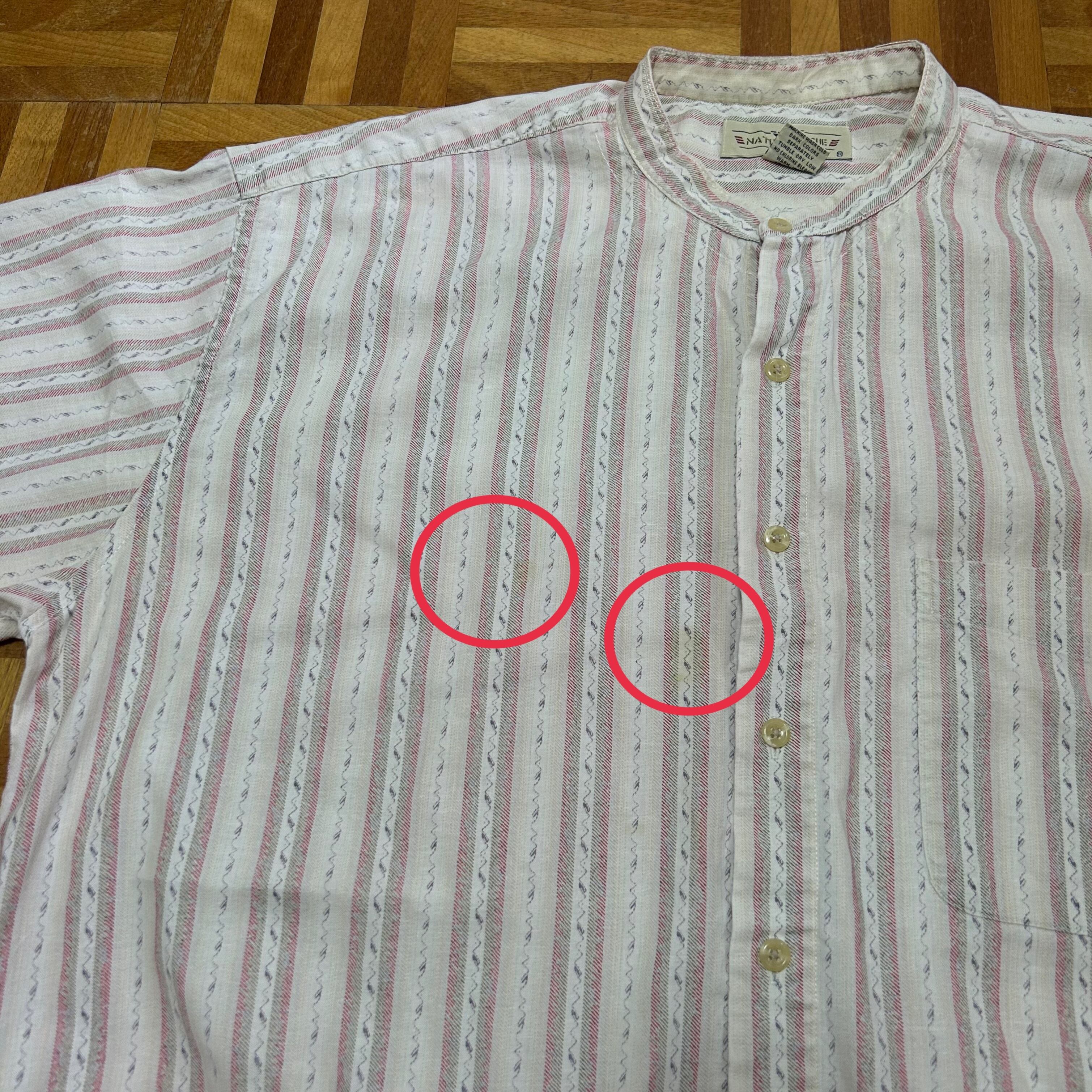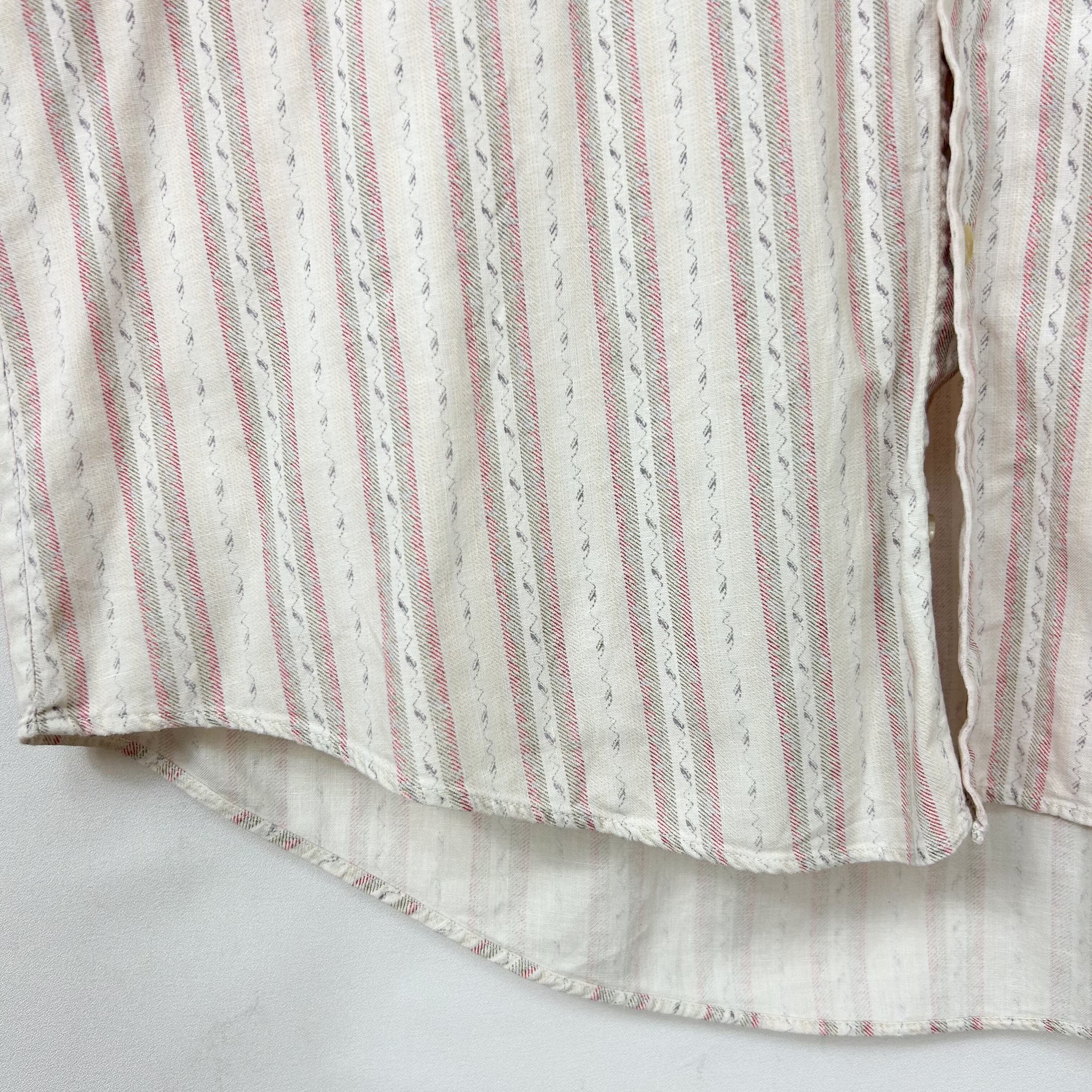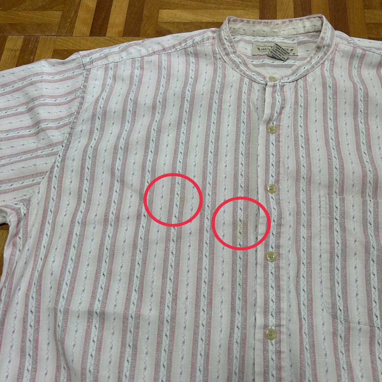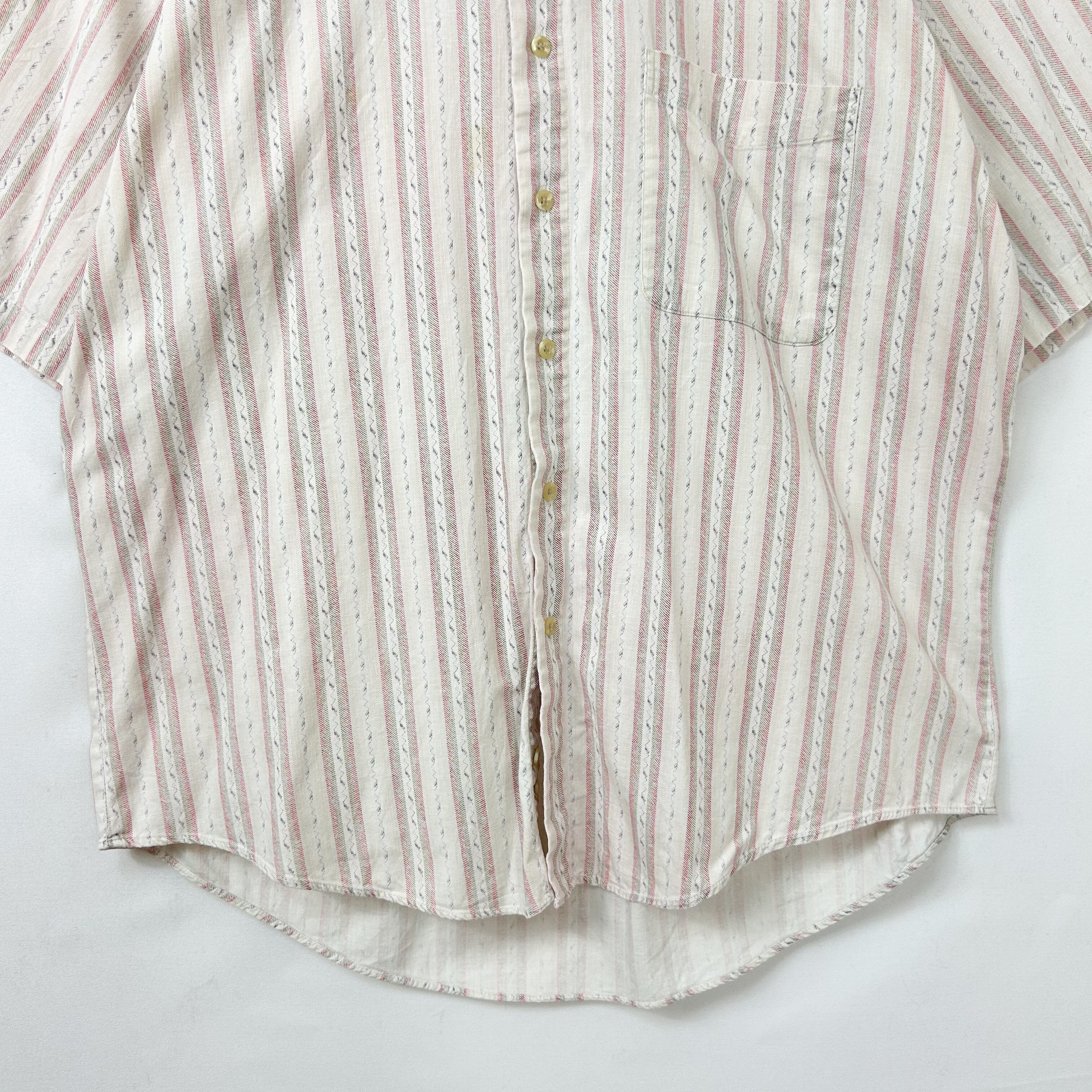 リメイク バンドカラー 総柄 マルチストライプ 半袖 シャツ ブラウス