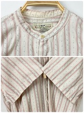 バンドカラー マルチストライプ 半袖 リメイクシャツ