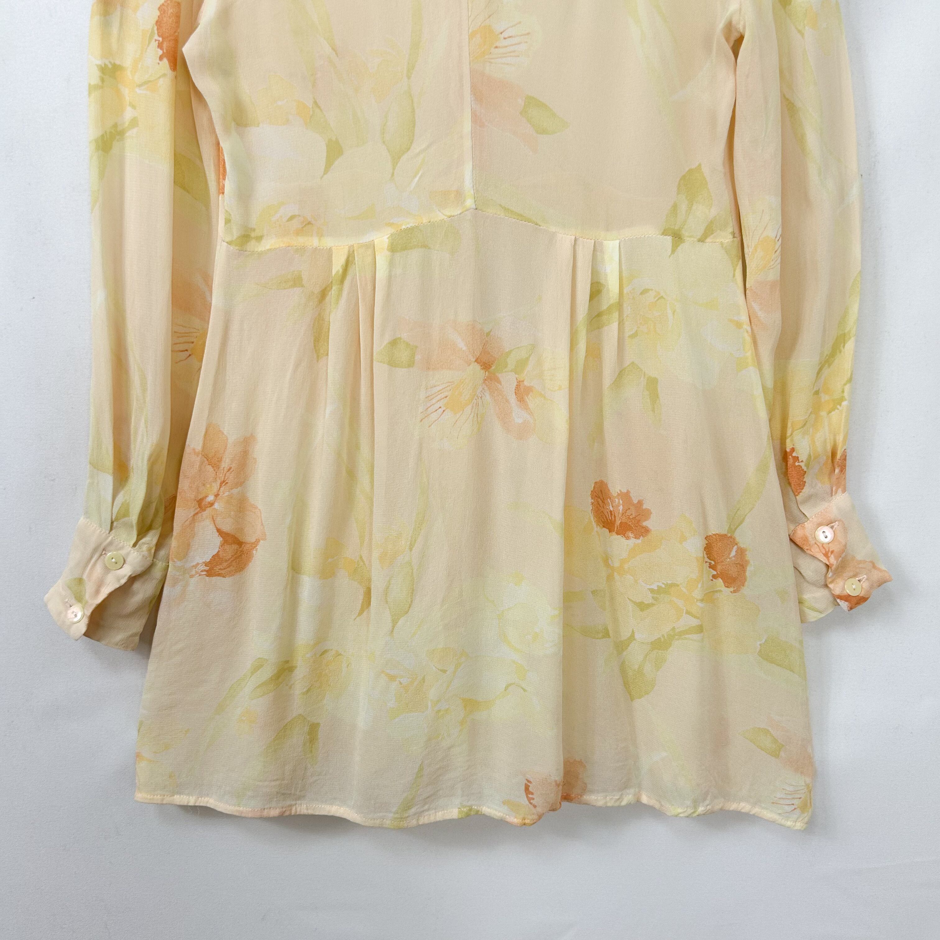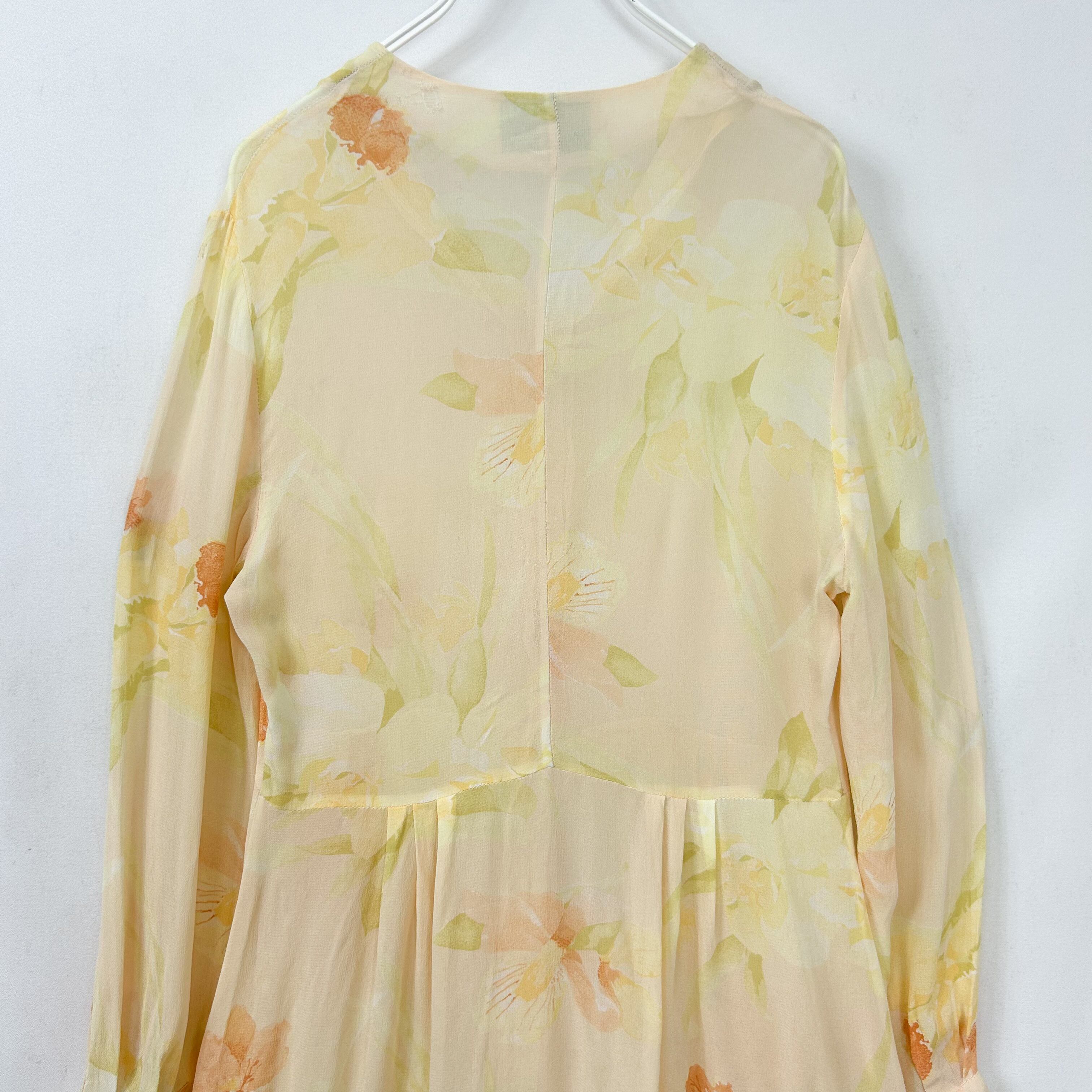 フランス製 花柄 水彩画 シースルー 長袖 ロング丈 ブラウス トップス シャツ