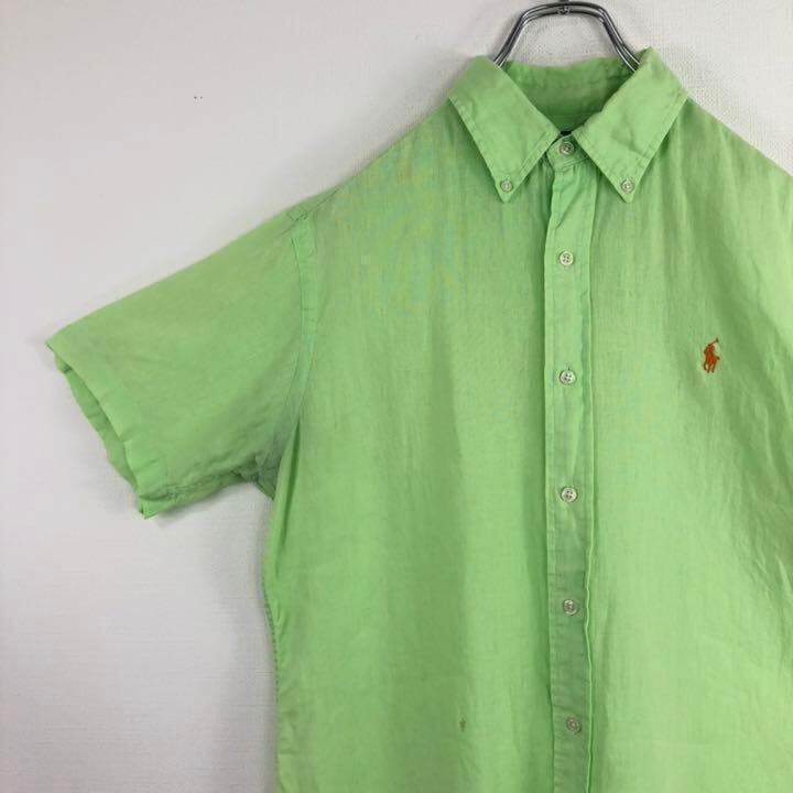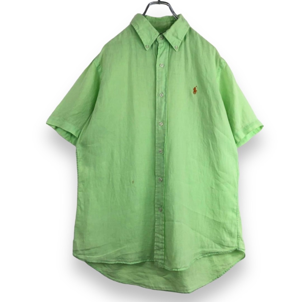 リネン100 ポニー刺繍ロゴ 半袖 シャツ
