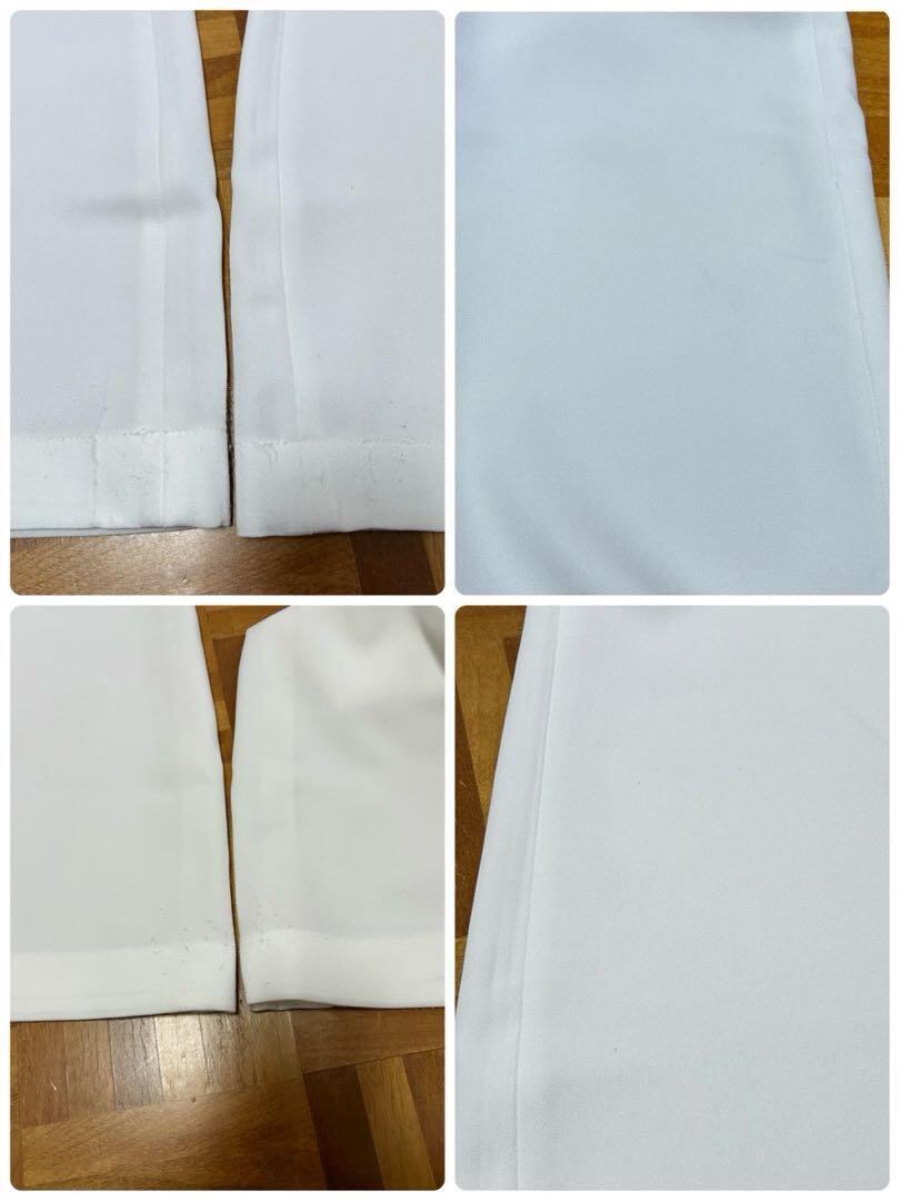 左膝上辺り、左裾上に薄汚れ数カ所あり。前後裾毛羽立ちあり。