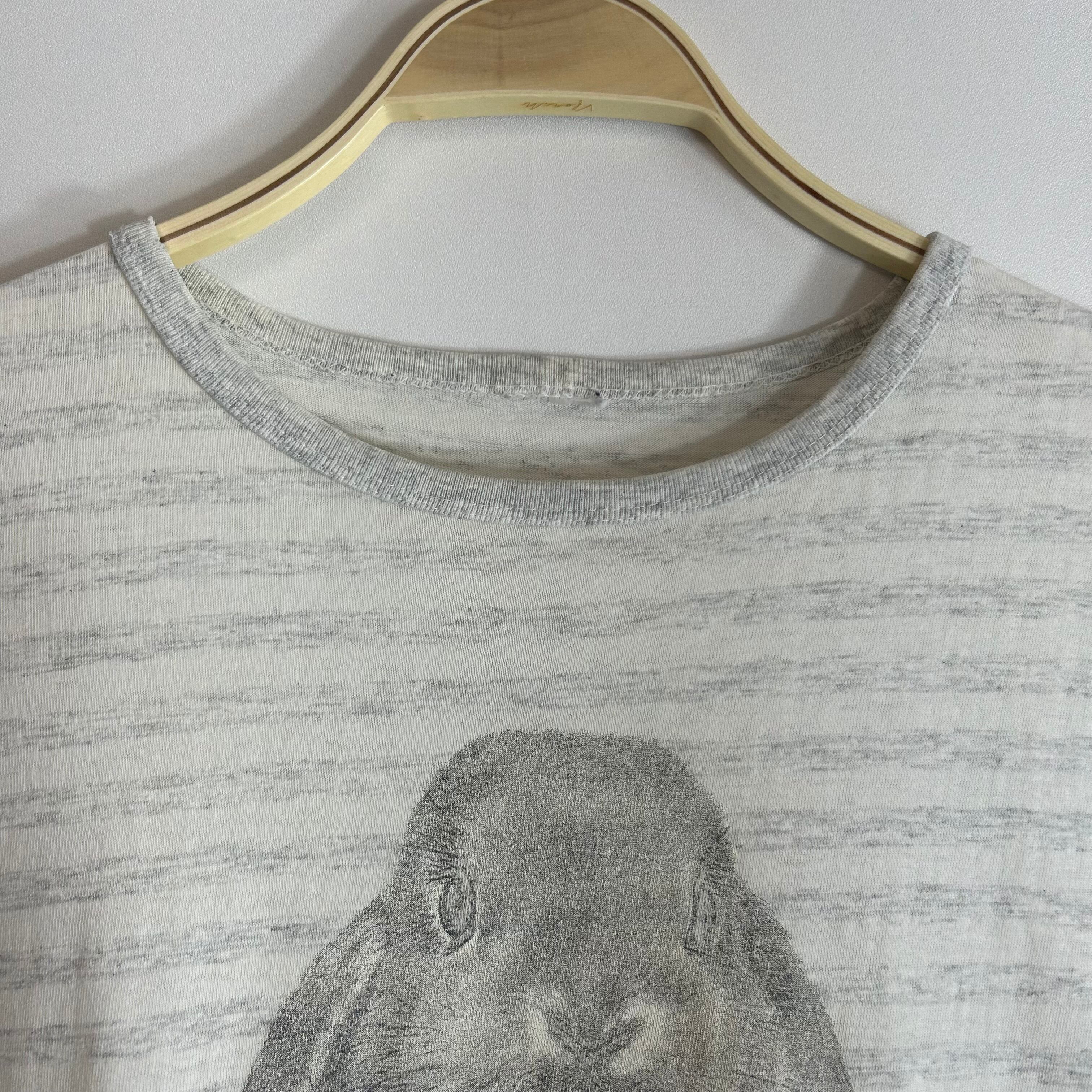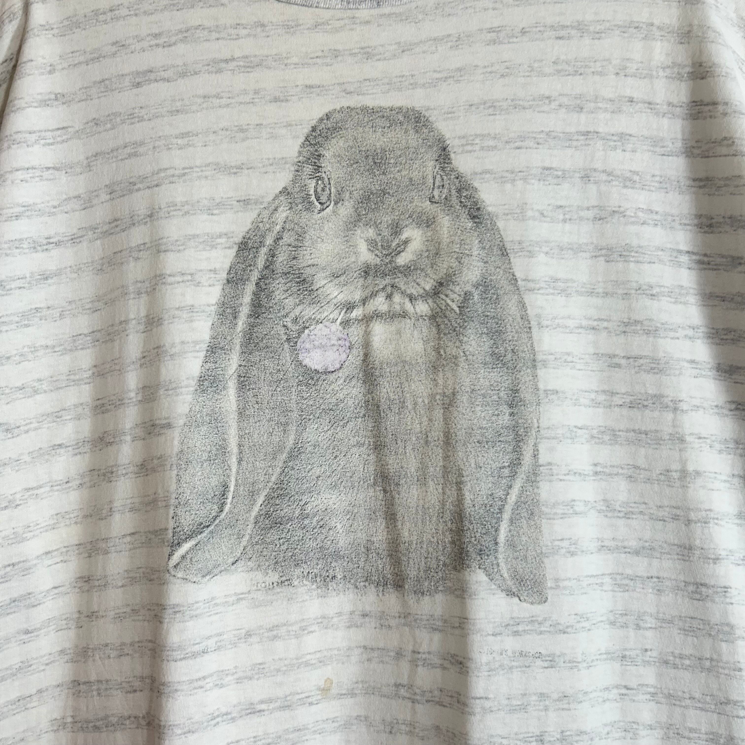 垂れ耳が可愛いロップイヤーラビットがプリントされたボーダーTシャツ。