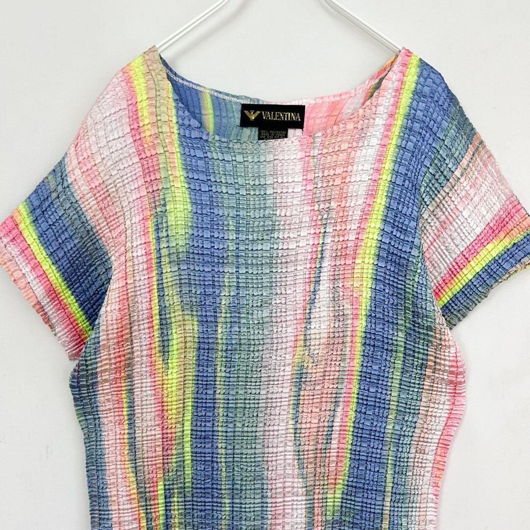 レインボーカラー ストライプ くしゅくしゅトップス