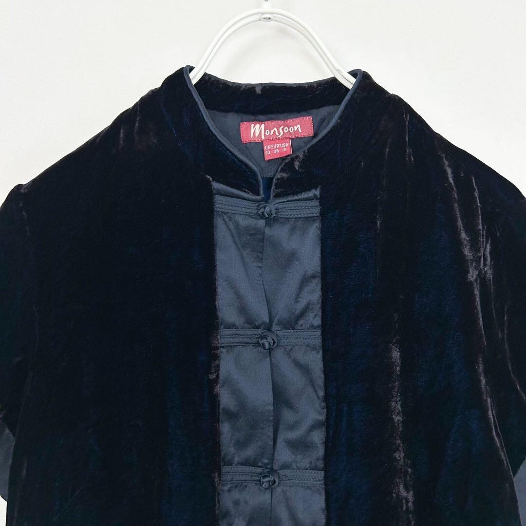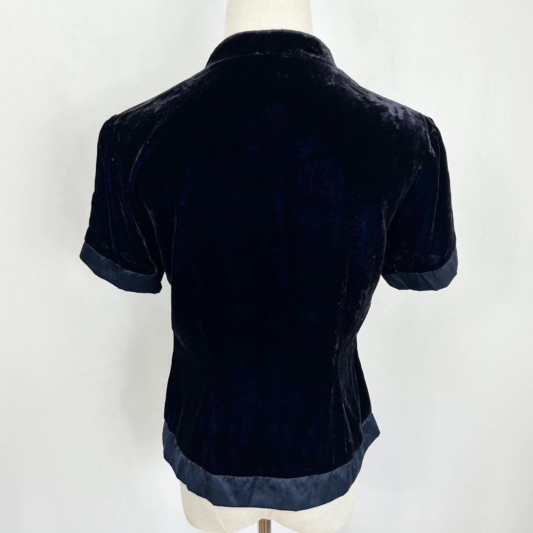 スタンドカラー ベルベット チャイナブラウス