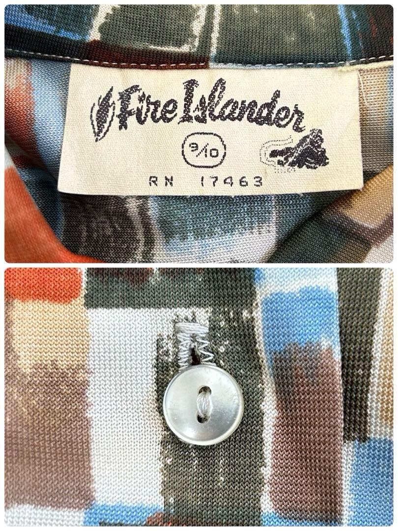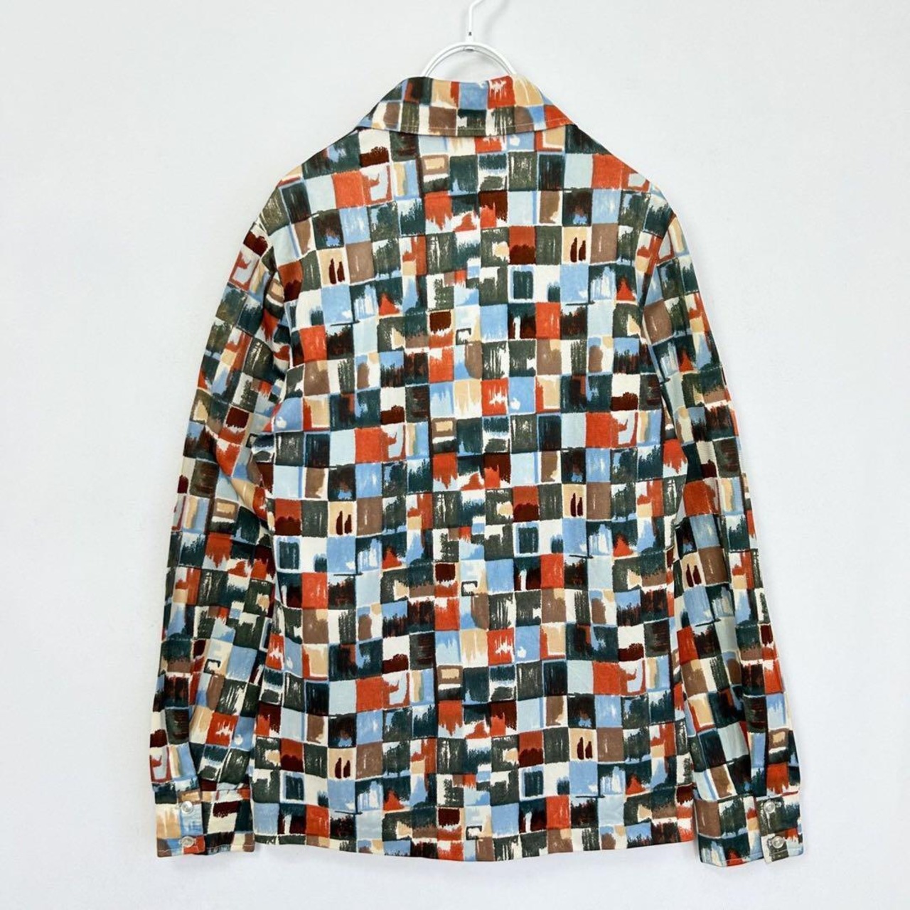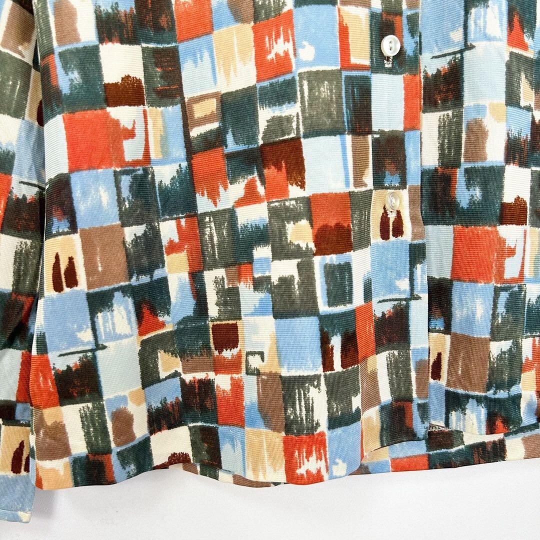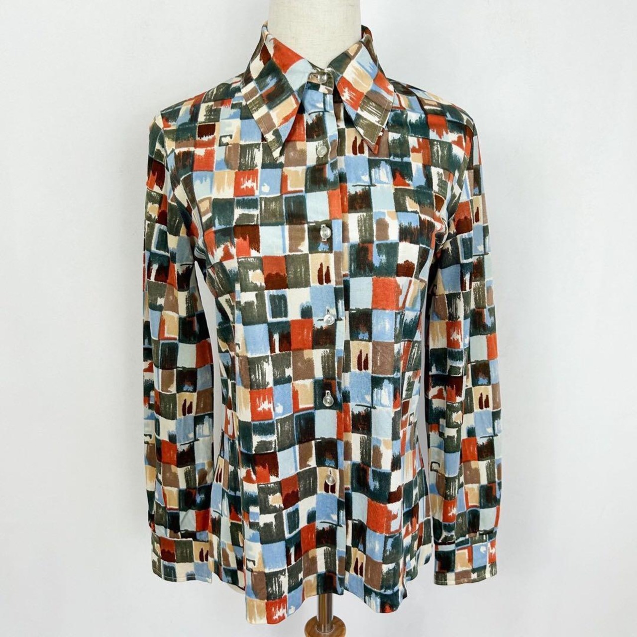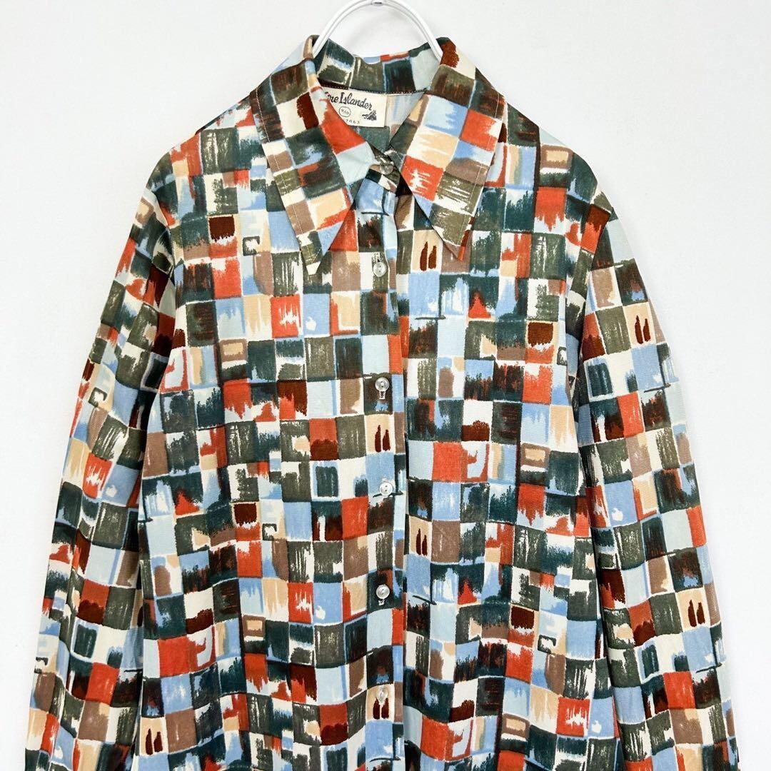 ヴィンテージ 70s マルチカラー ブロックデザイン 総柄 長袖 ブラウス