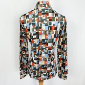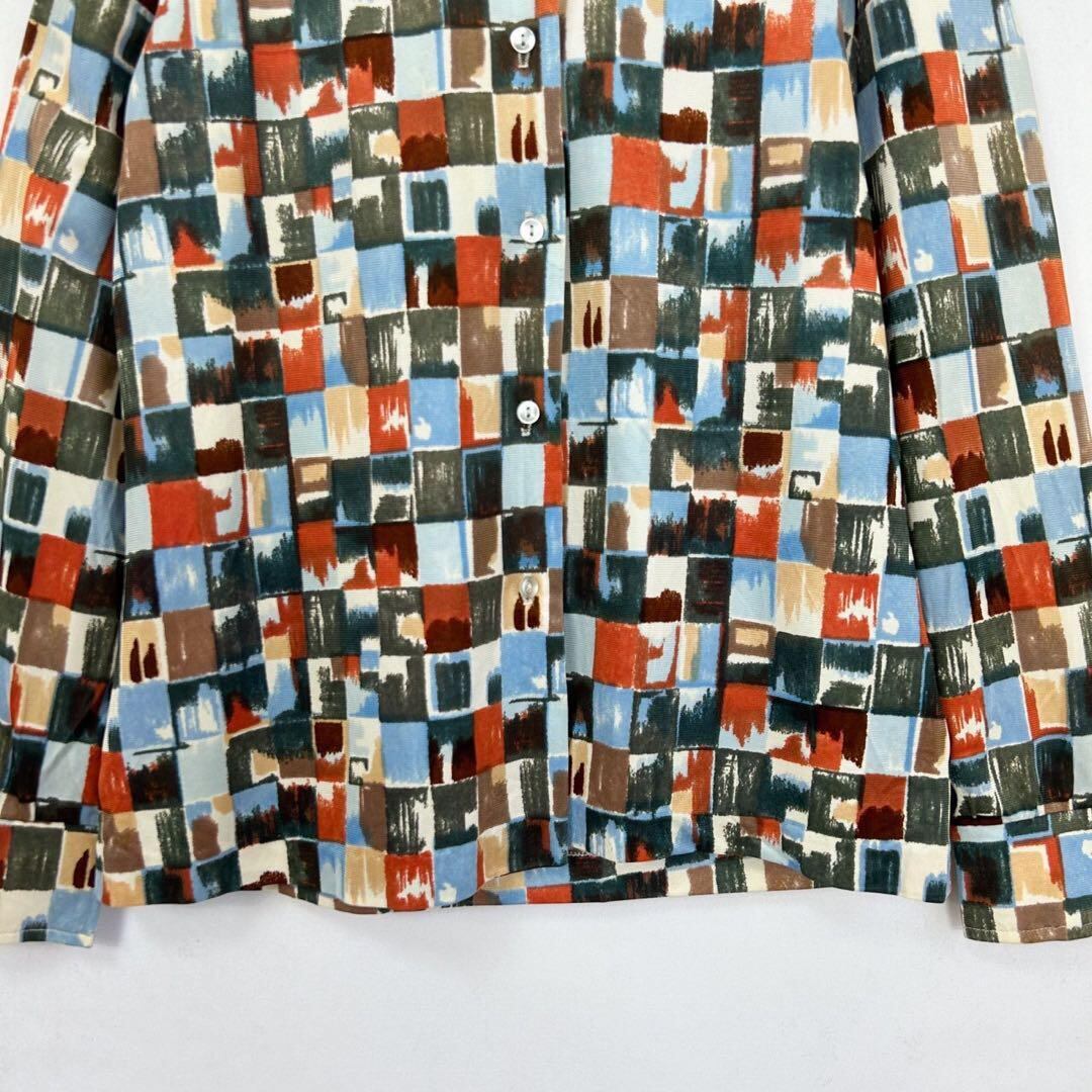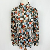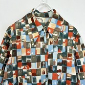 70s ブロックデザイン 総柄 長袖 ブラウス