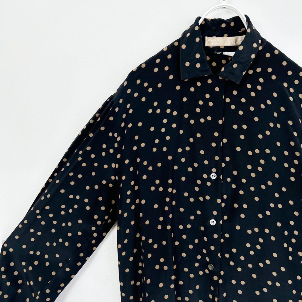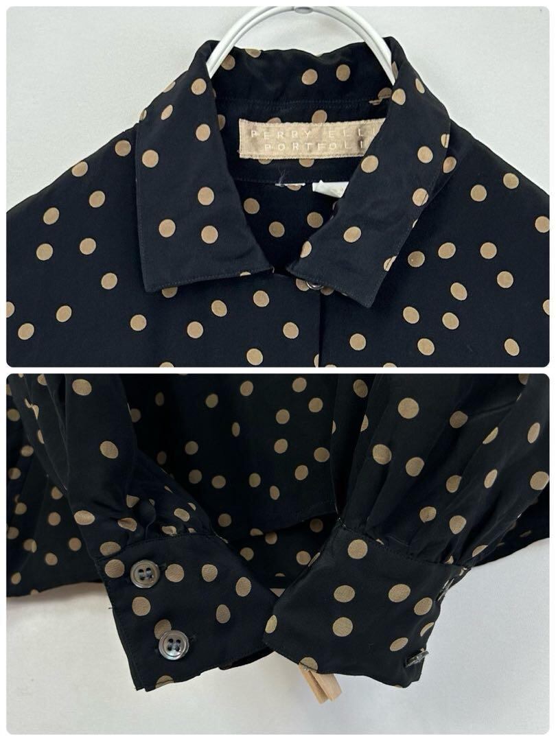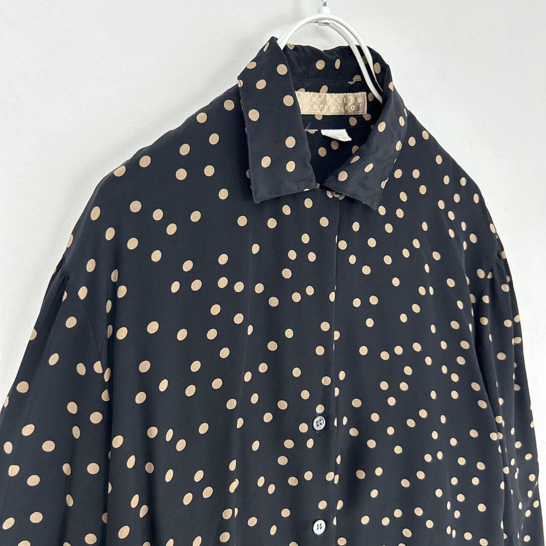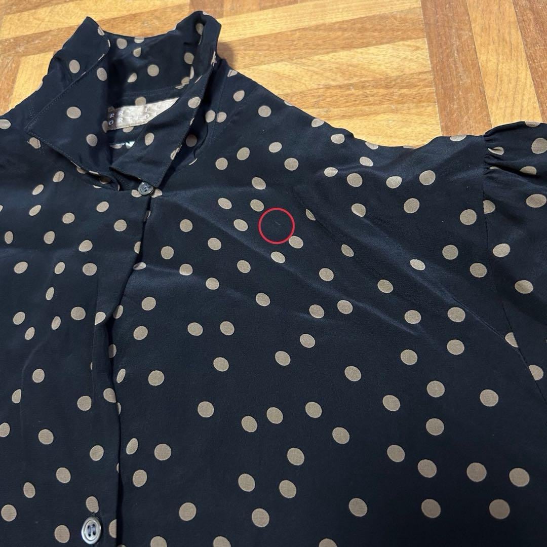 ドット柄 シルク 長袖 シルクブラウス