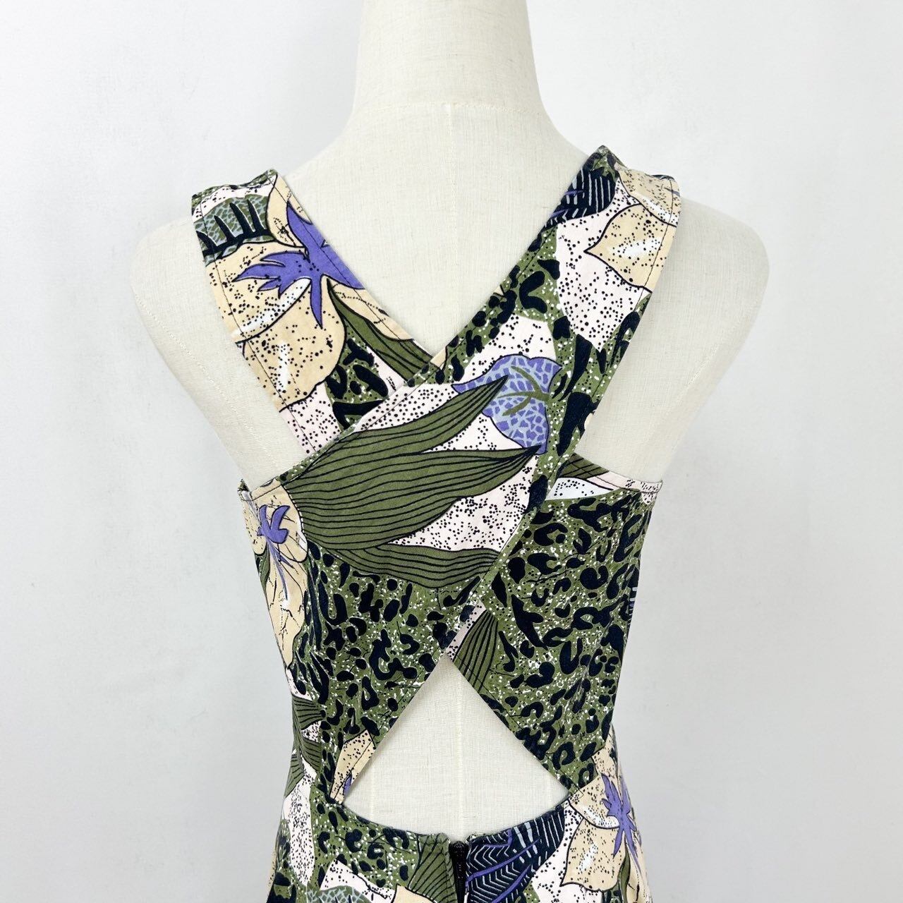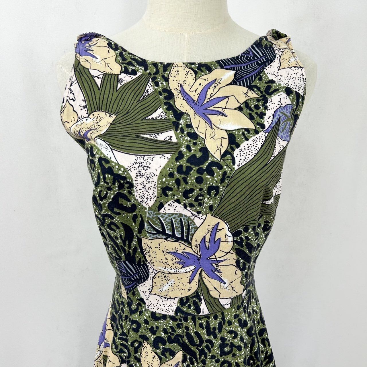 花柄 ハイビスカス 総柄 バッククロス ノースリーブ ロング ハワイアンドレス ワンピース