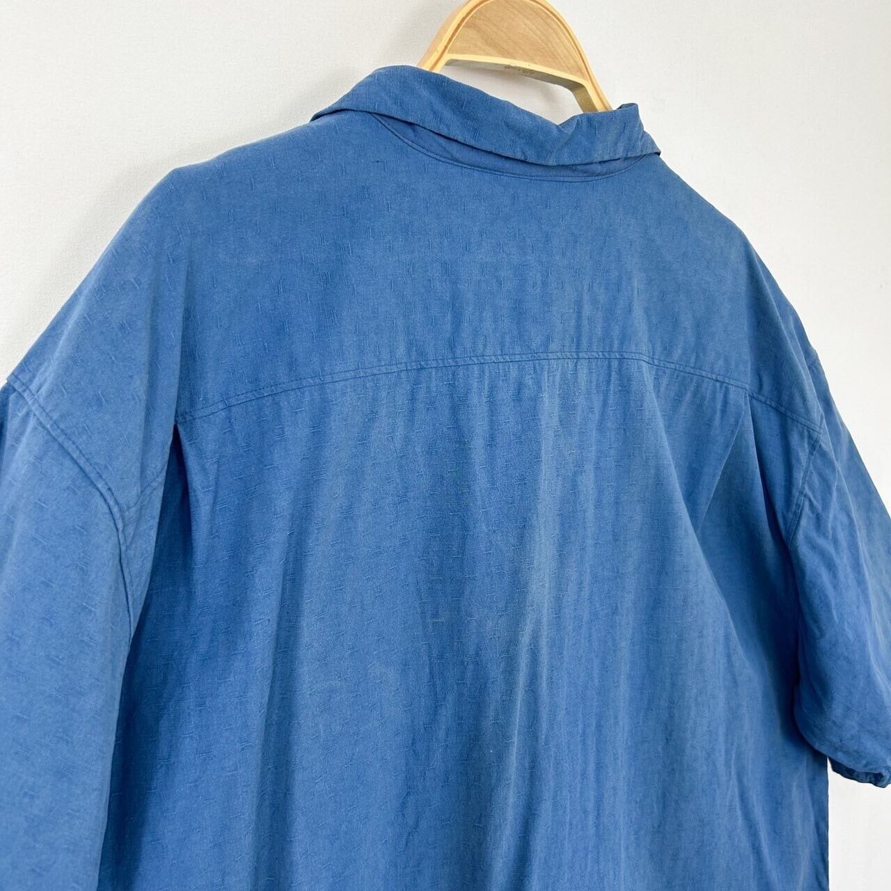 2番目ボタン横1㎝程度のダメージあり。襟周り、左右脇、裾に薄汚れ数カ所あり。バック右袖から肩にかけて、背中に色褪せ数カ所あり。