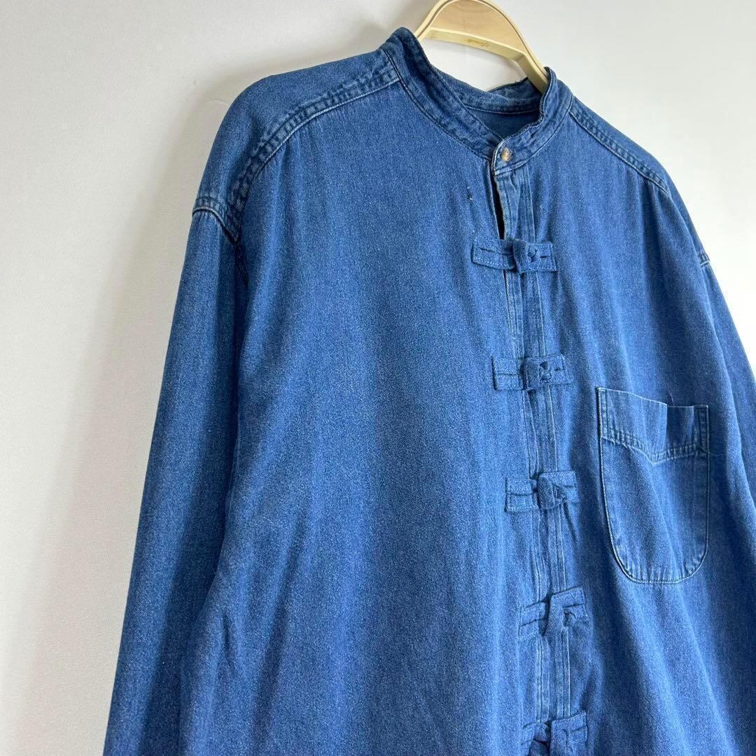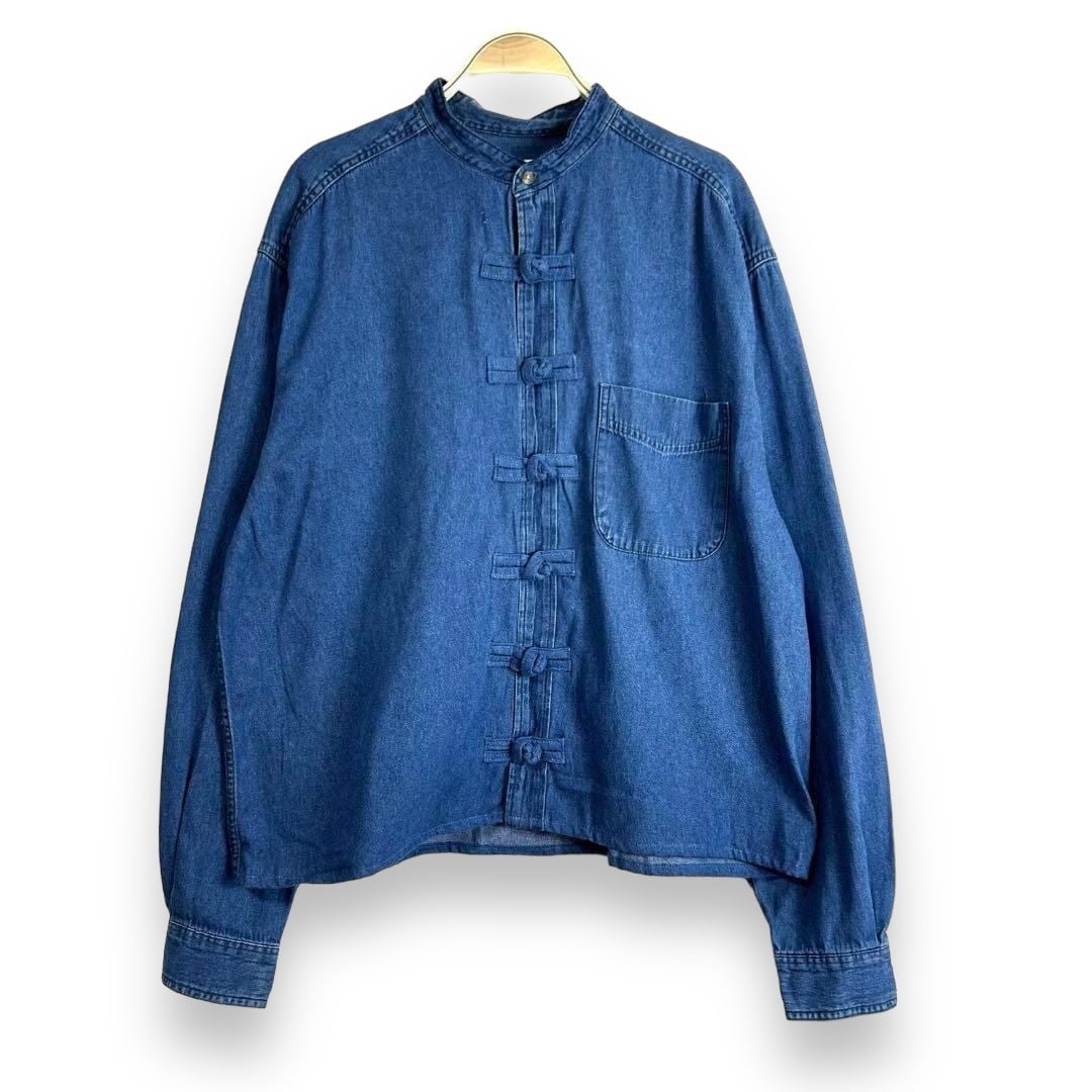 エディーバウアー バンドカラー リメイク デニム チャイナボタンシャツ