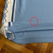 左右肩、胸に生地引けダメージ数カ所あり。バック裾内側薄汚れあり。