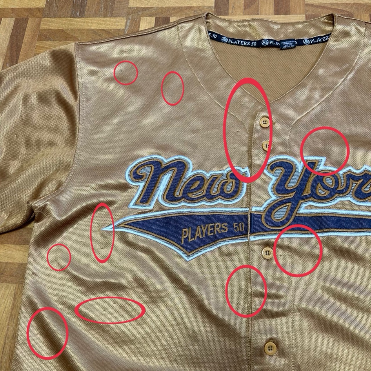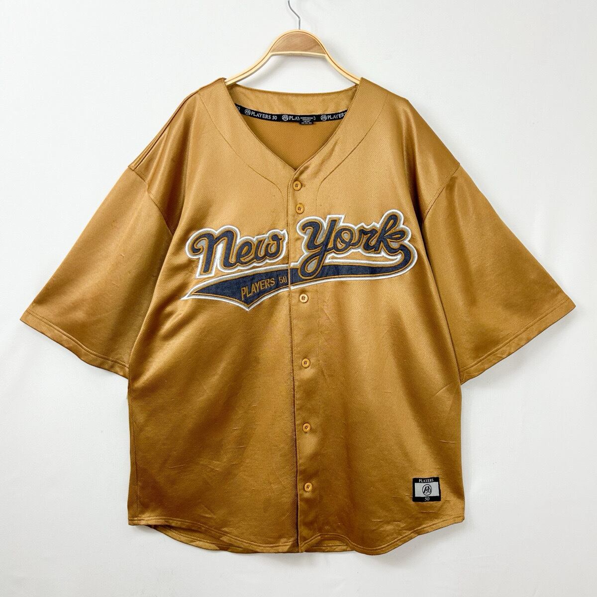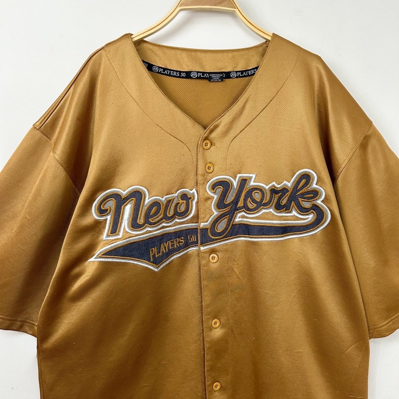 PLAYERS50 刺繍ロゴ New York ゴールドカラー 半袖 ベースボールシャツ