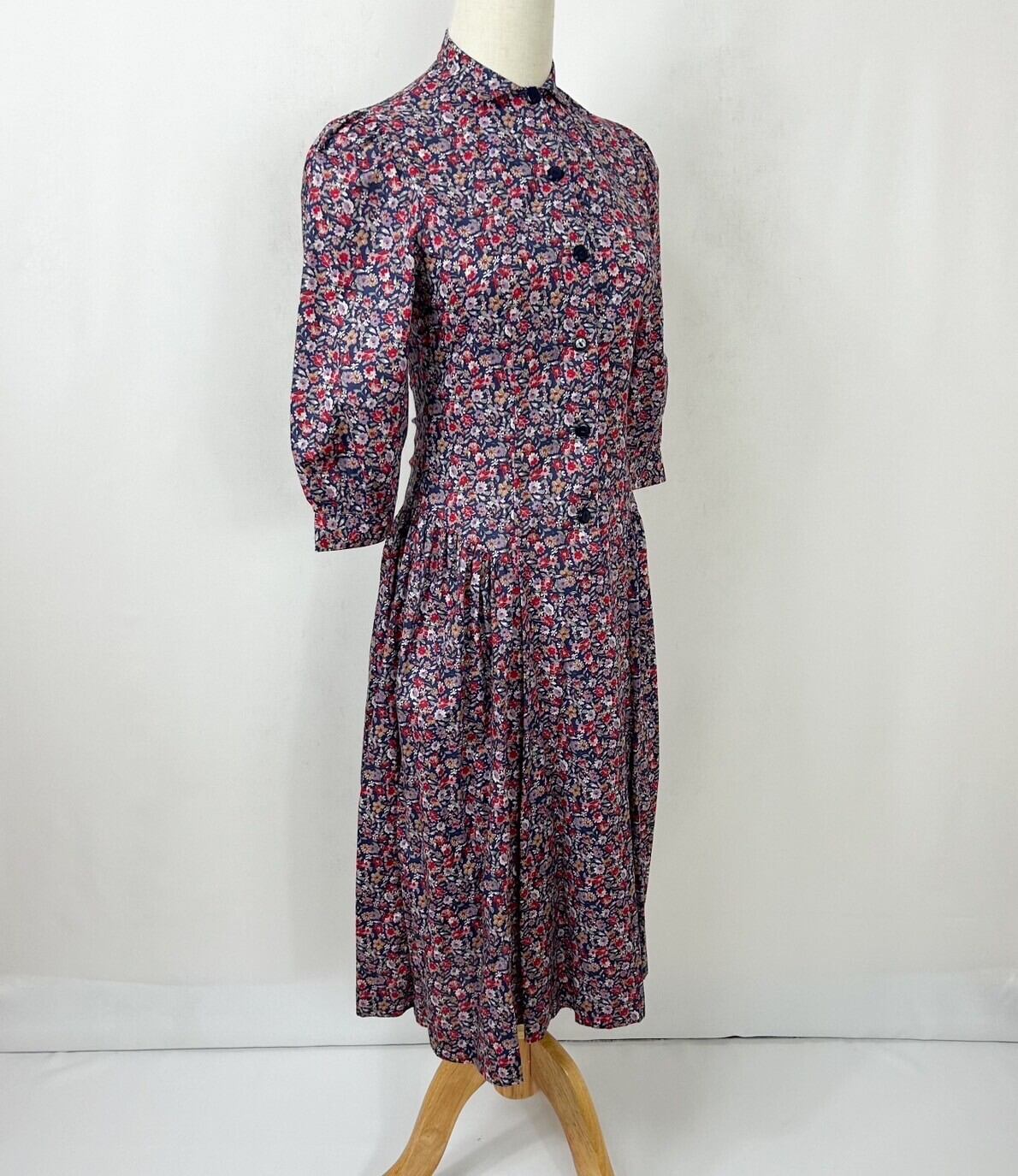 80s イギリス製 Laura ashley ローラアシュレイ 花柄 フラワープリント 七分袖 ロング ワンピース ドレス