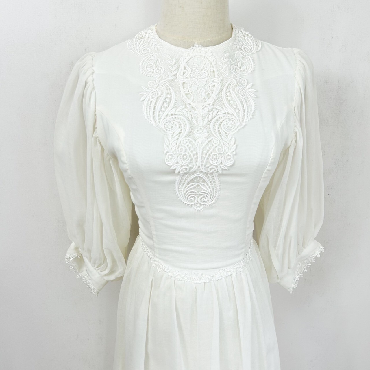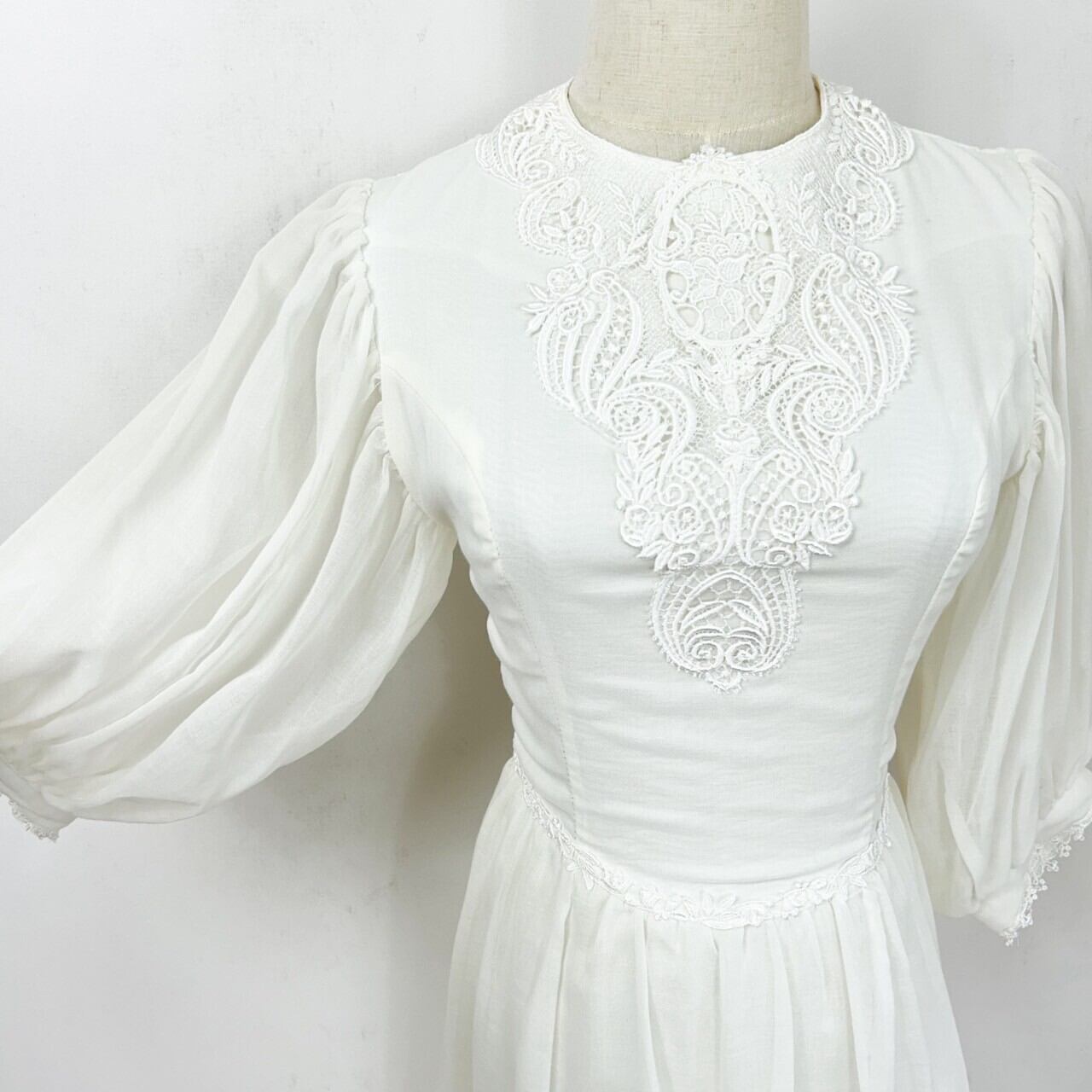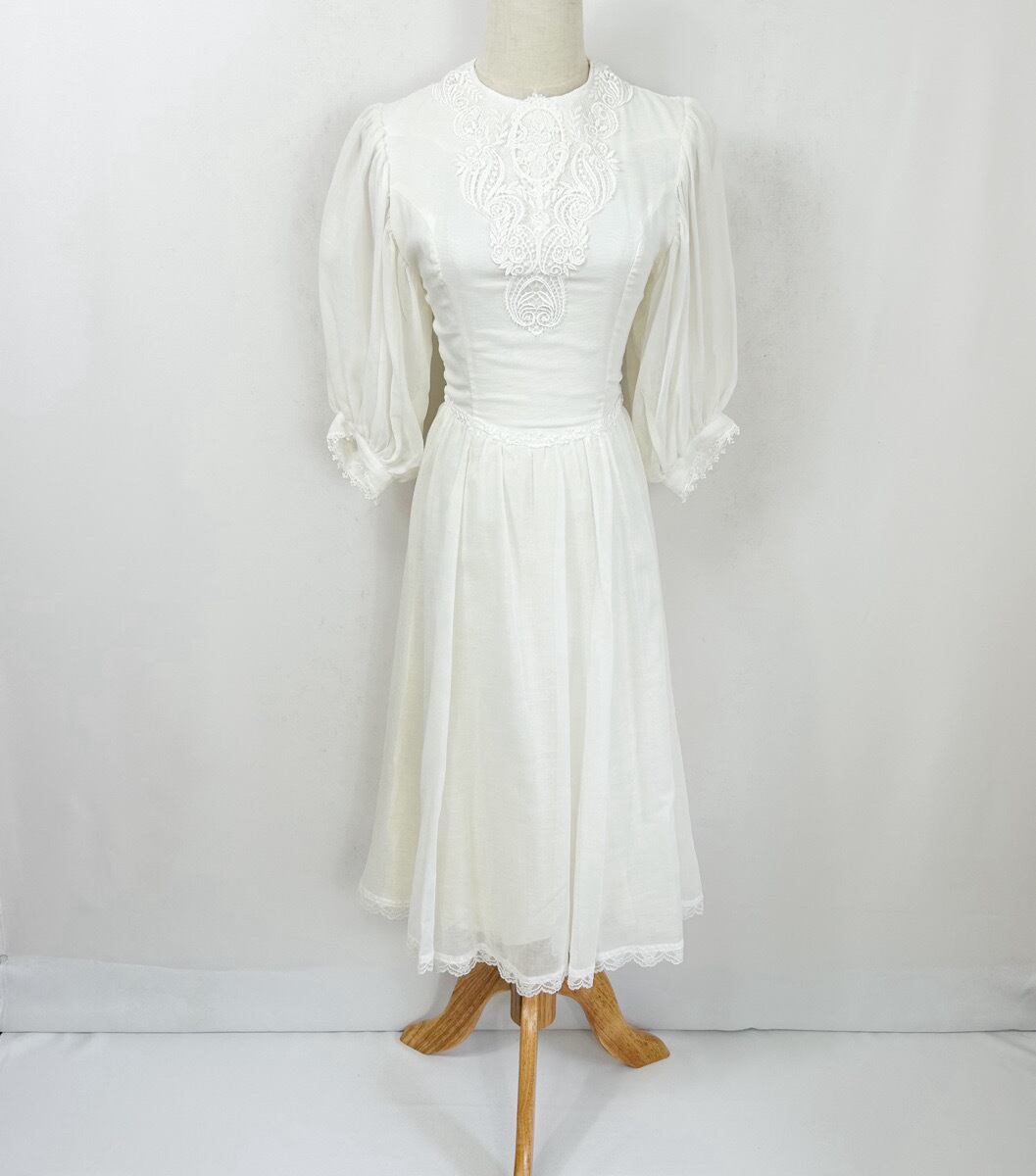 ヴィンテージ 70s GUNNE SAX ガニーサックス レース ホワイト ドレス ワンピース