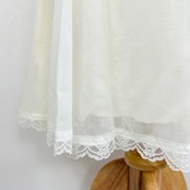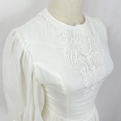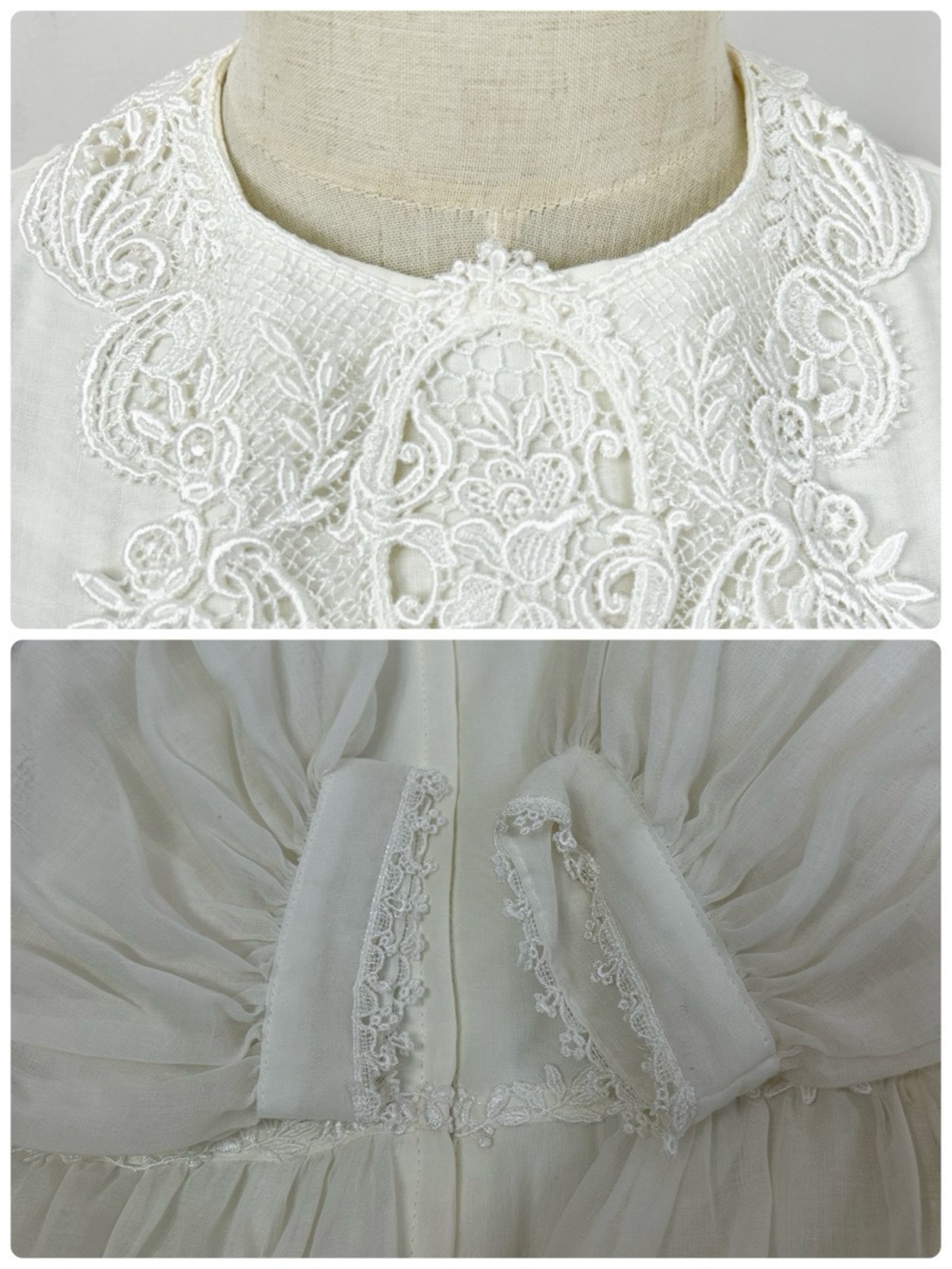 柔らかなガーゼの様な生地に様々なレースがあしらわれたホワイトドレスです。