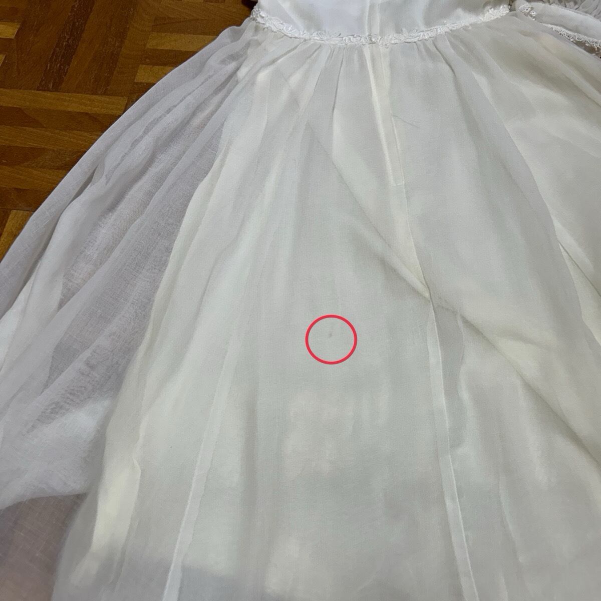 透け感あるので、ペチコート着用下さい。バックスカート真ん中下辺り薄汚れあり。